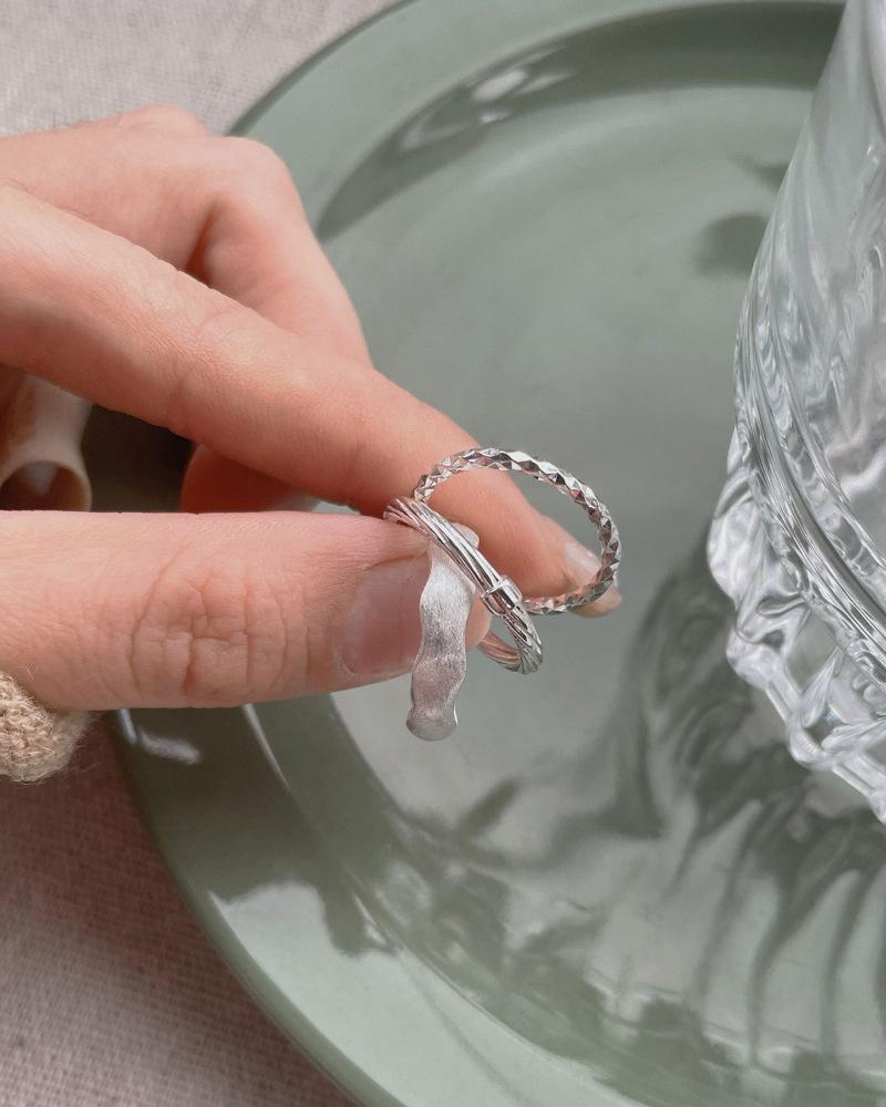 Anillo Apilado Irregular de Plata Esterlina S925 para Mujer Diseño Simple de Nicho Ins de Corea del Sur Anillo de Alto Grado de Little Red Book