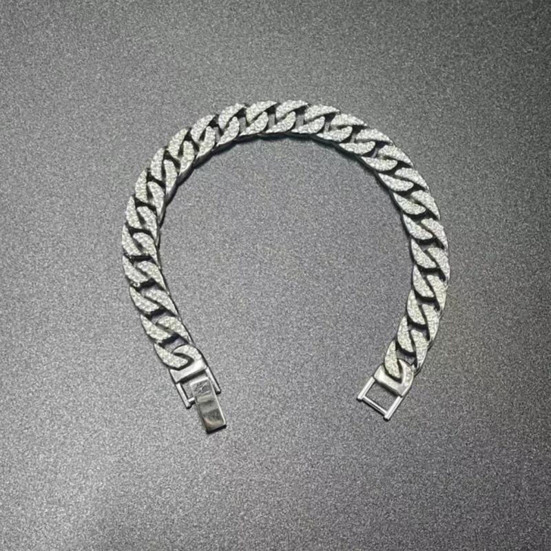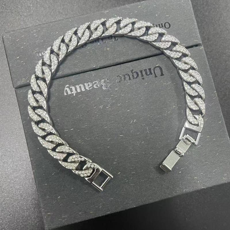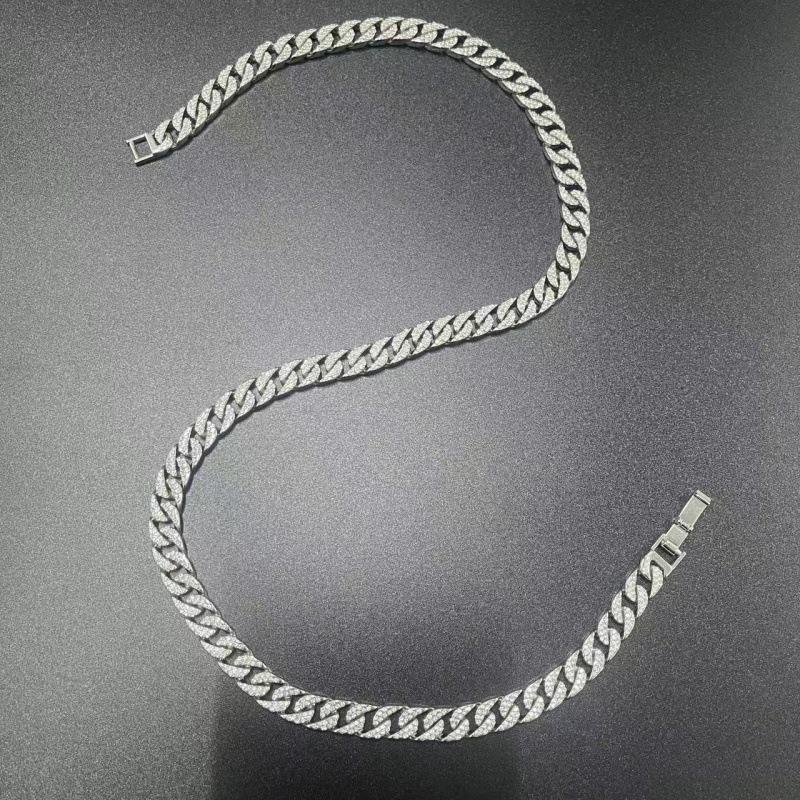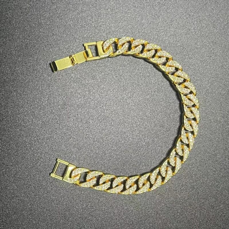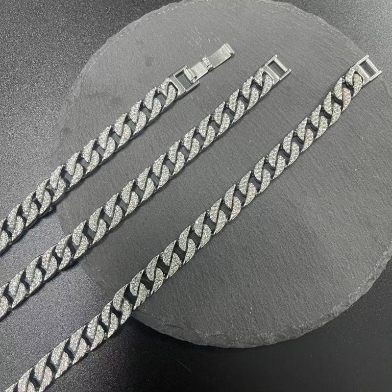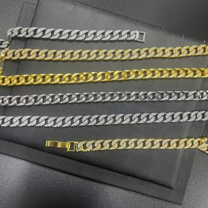 Pulsera de Cadena Cubana de Moda Incrustada de Diamantes Cadena Gruesa de 10 mm para Hombres y Mujeres Collar Hip-Hop Chapado en Oro Diseño Transfronterizo Incrustado de Diamantes