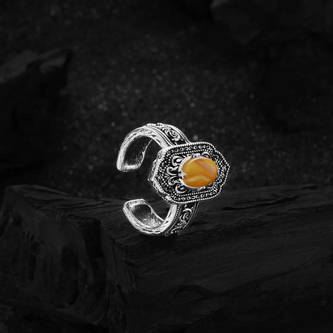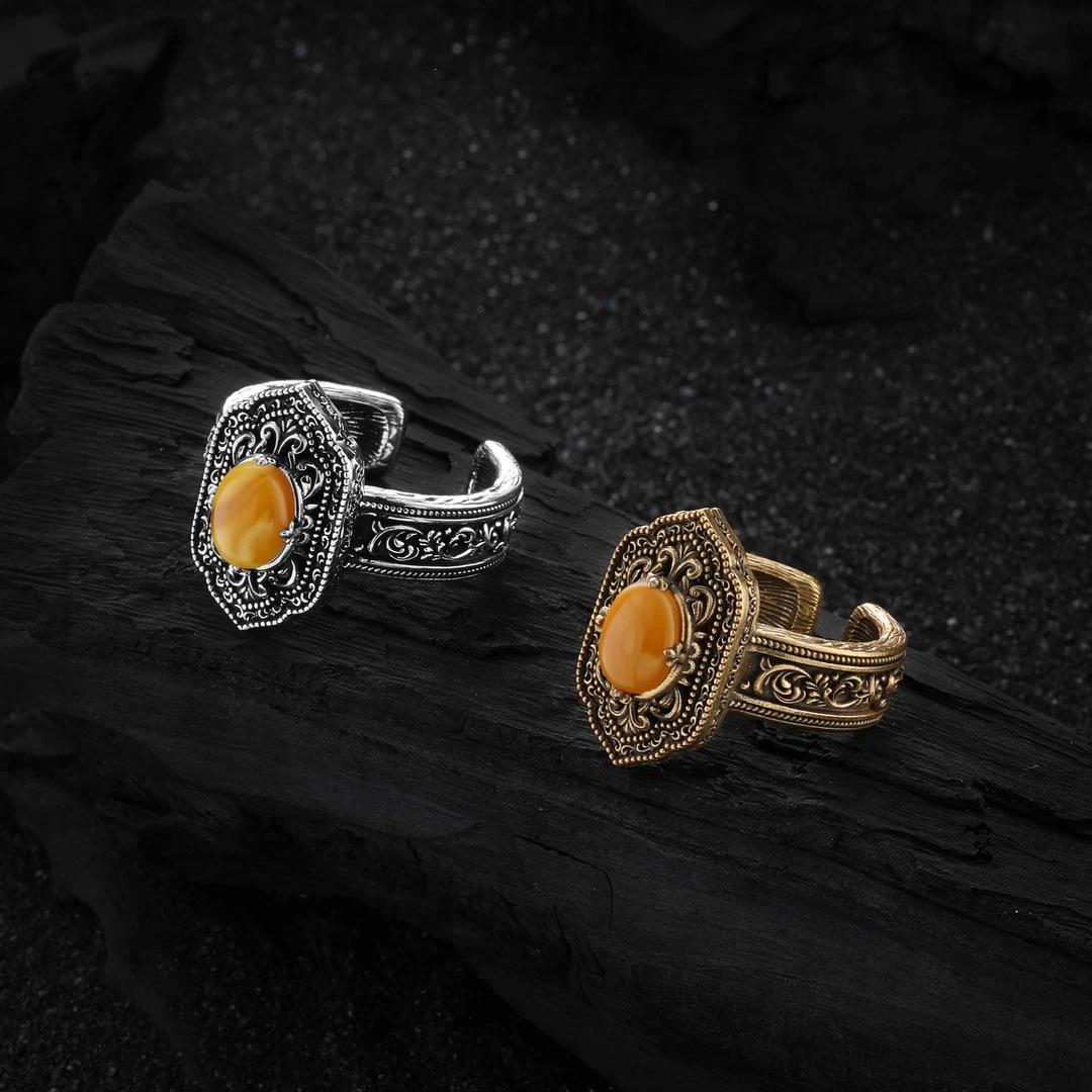 Anillo Vintage Antiguo de Textura Pesada para Mujer de Apertura Ajustable Nicho de Alta Gama Lujo Ligero Combinable Nueva Artesanía