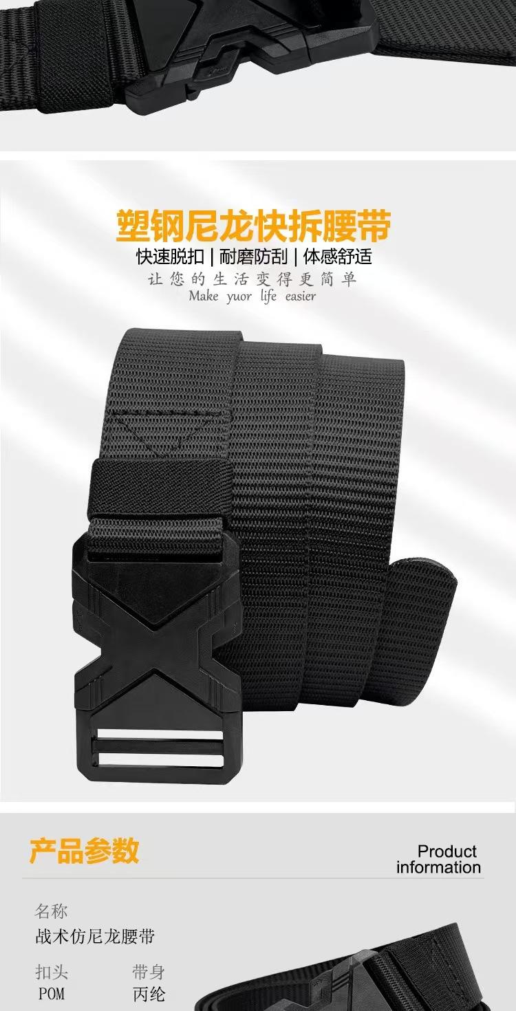 Cinturón Táctico para Hombre para Exteriores Nuevo Hebilla de Aleación de Imitación de Acero Plástico Cinturón de PP de Liberación Rápida Entrenamiento Cinturón Elástico