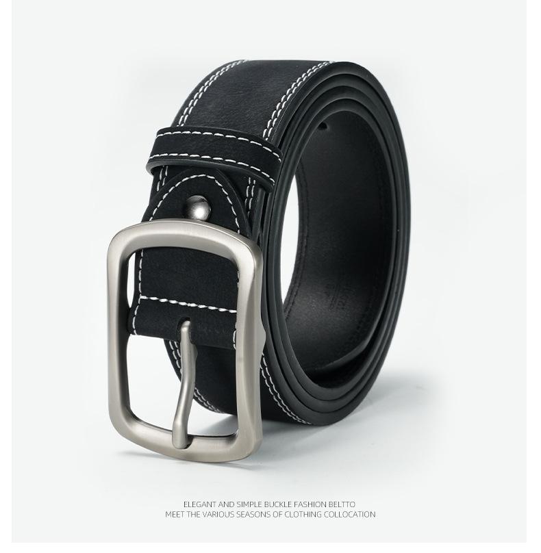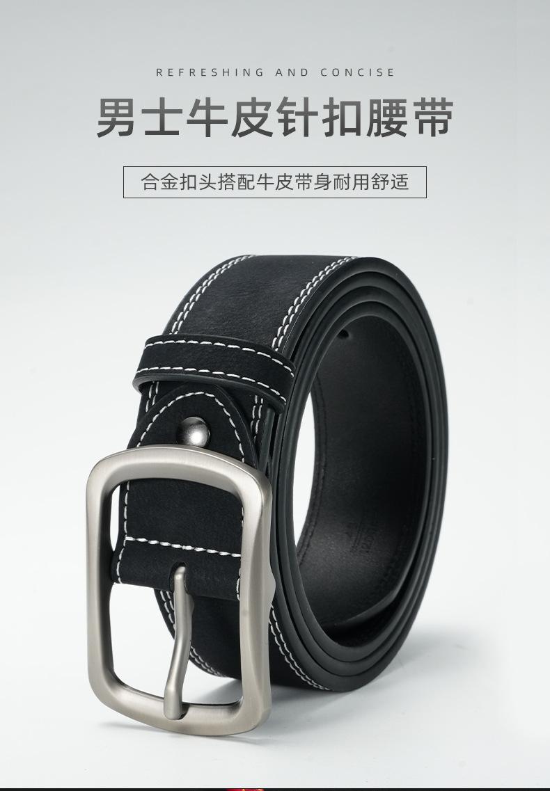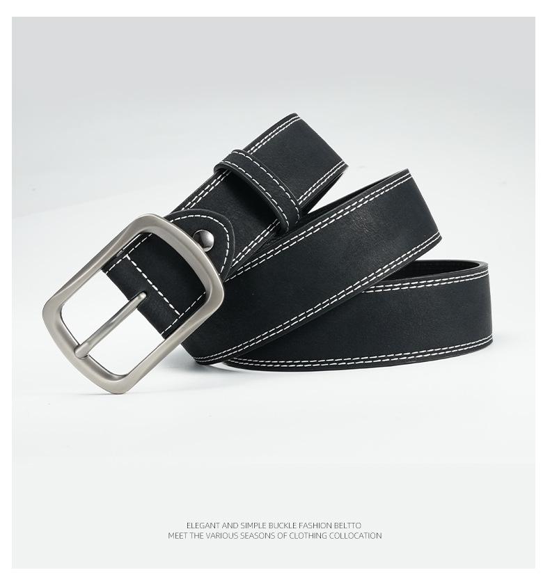 Cinturón de piel de vaca de doble línea perforado para hombre y mujer, cinturón de traje retro, suministro directo de fábrica transfronteriza, venta al por mayor