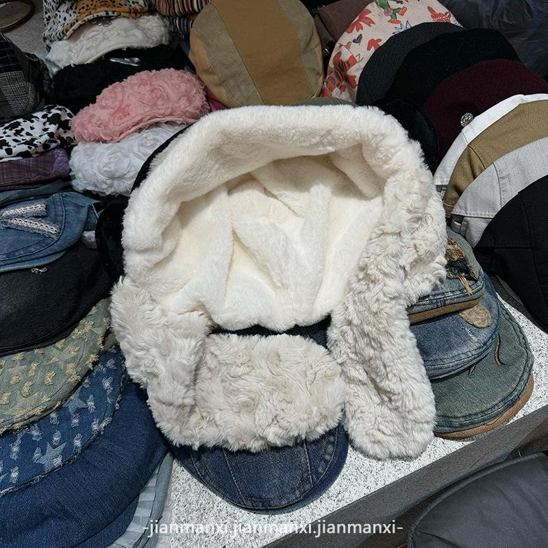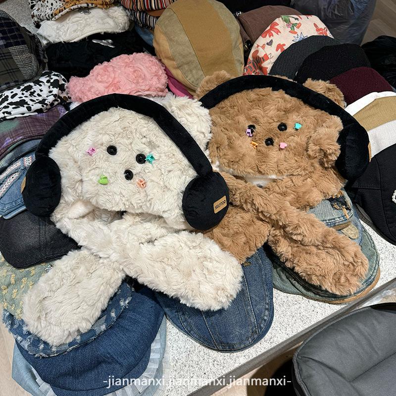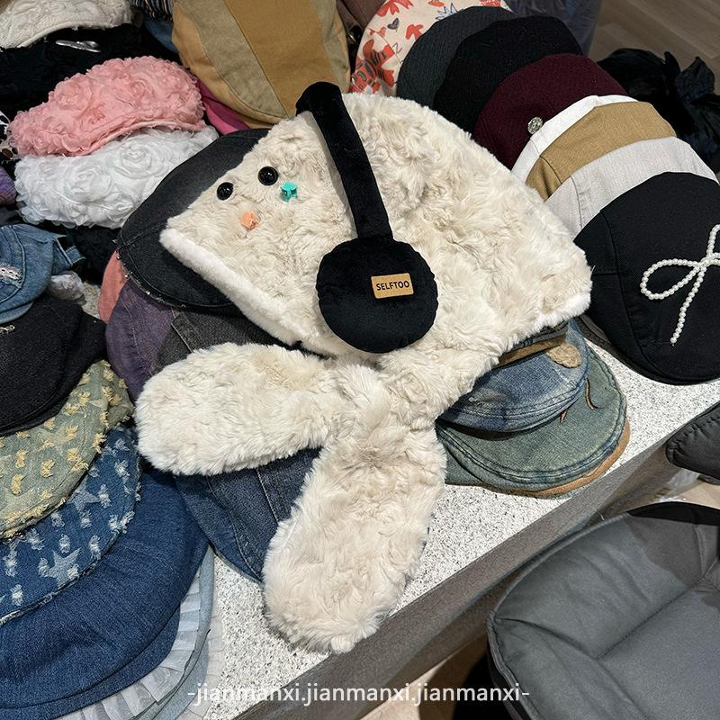 Lindos Audífonos de Felpa Sombrero de Oso Bufanda para Mujer Otoño e Invierno Grueso Cálido Jersey Protección para las Orejas Gorro Lei Feng Moderno