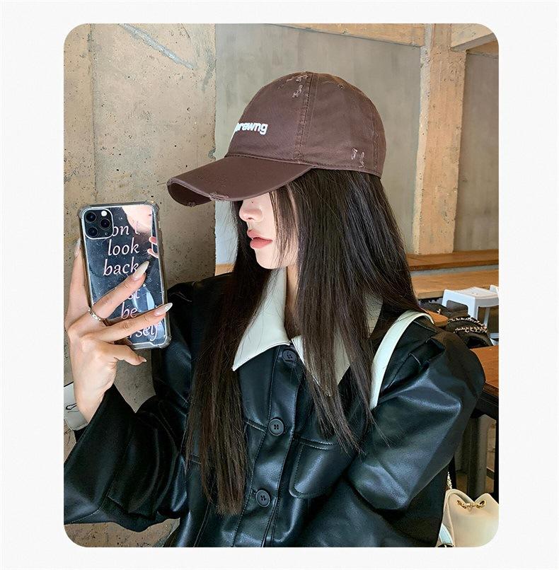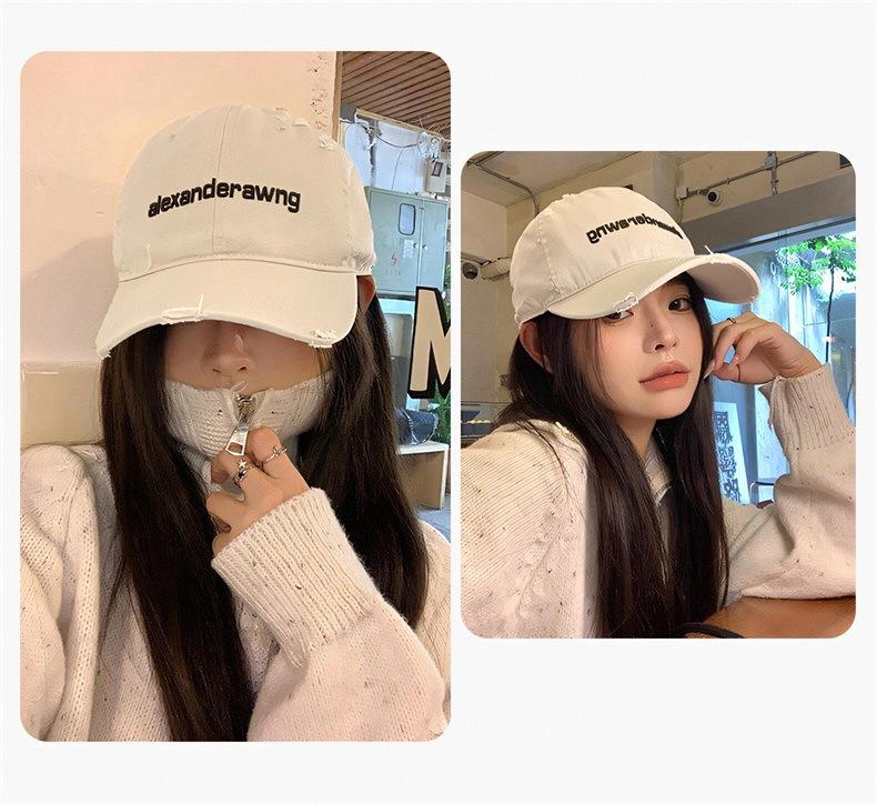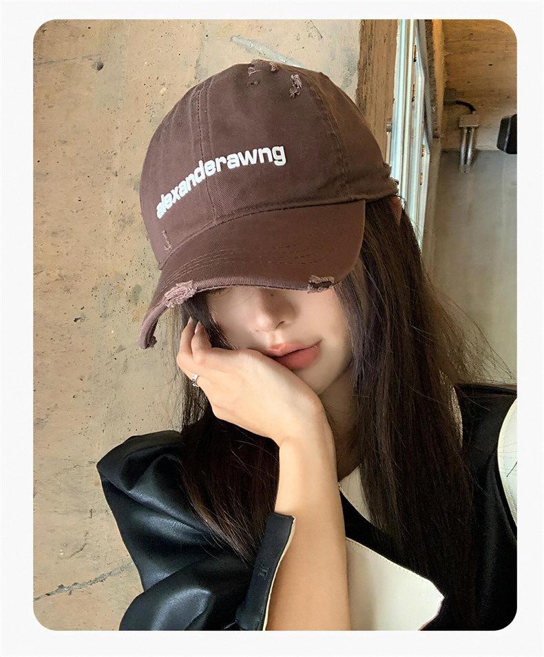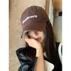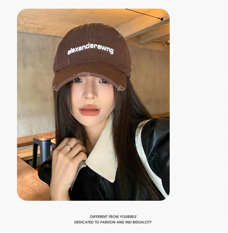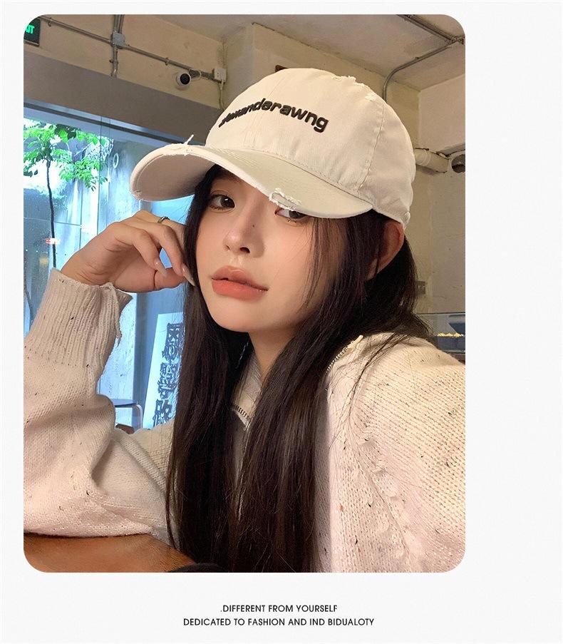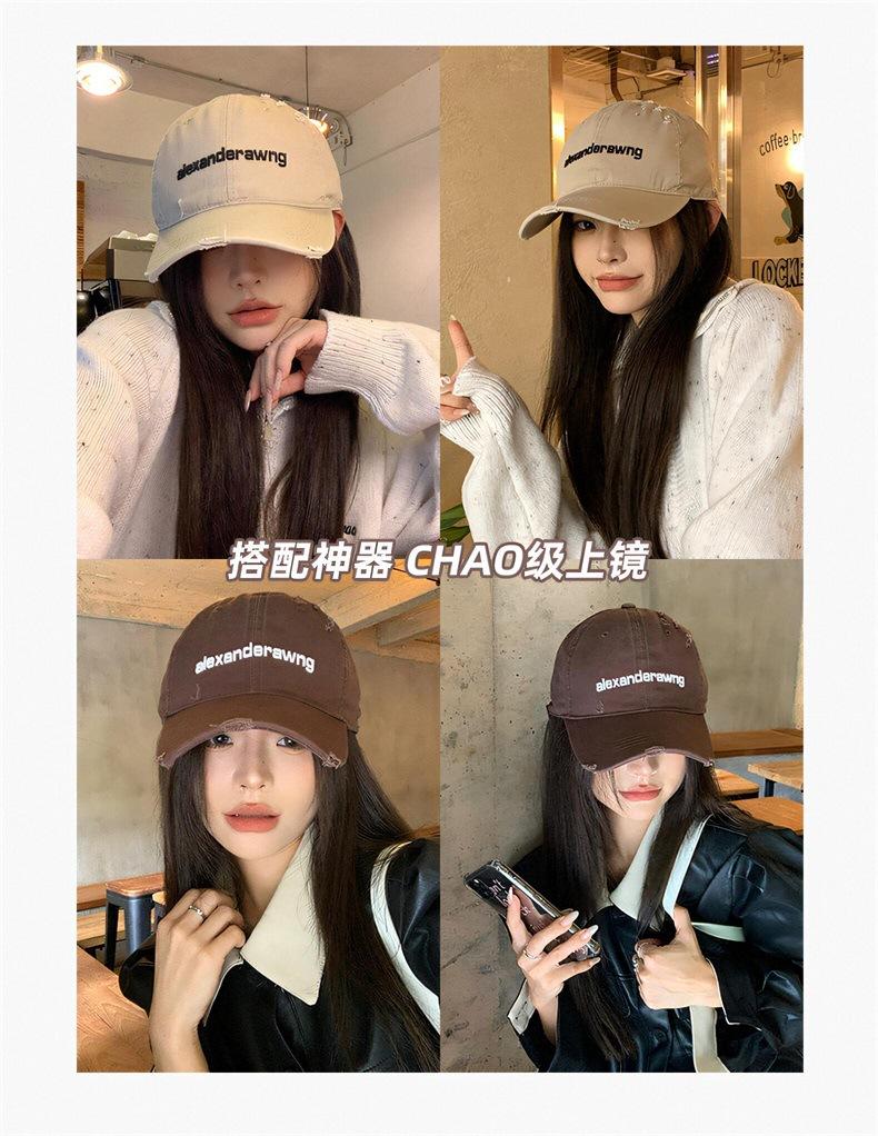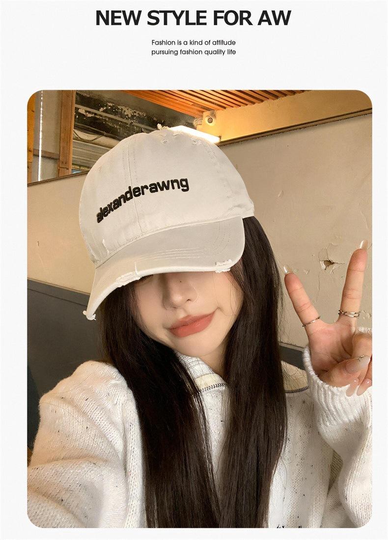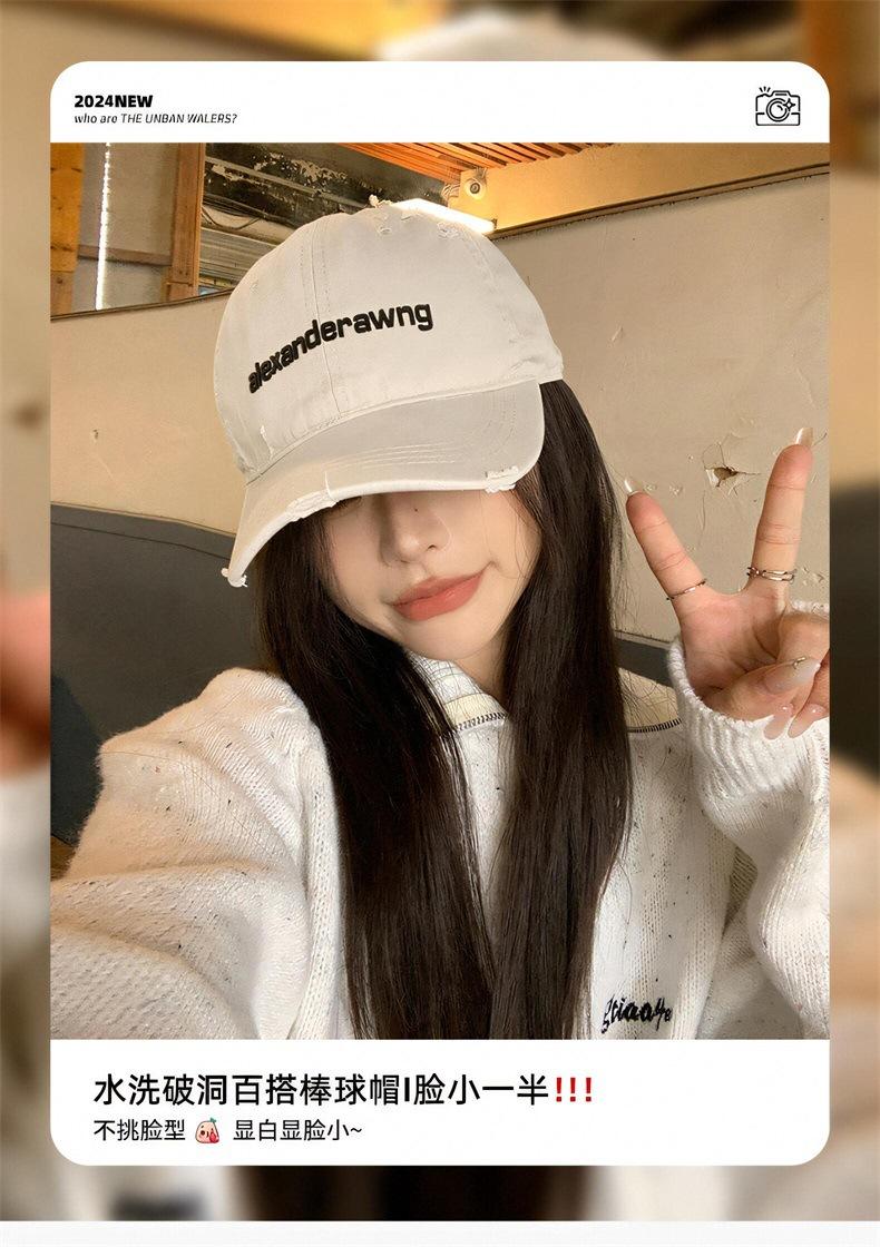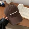 Gorra de Béisbol para Mujer Agujero Anticuado Cabeza Grande Cara Pequeña Gorra Ala Ancha Beige Letra Cara Grande Sombrero de Copa Blanda