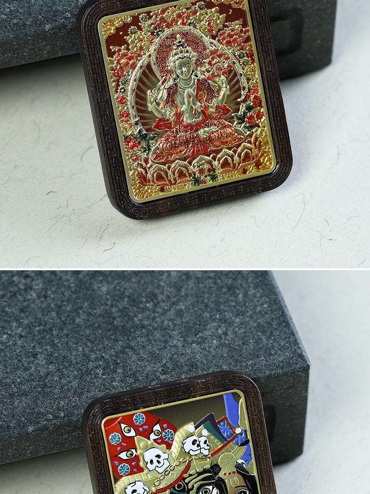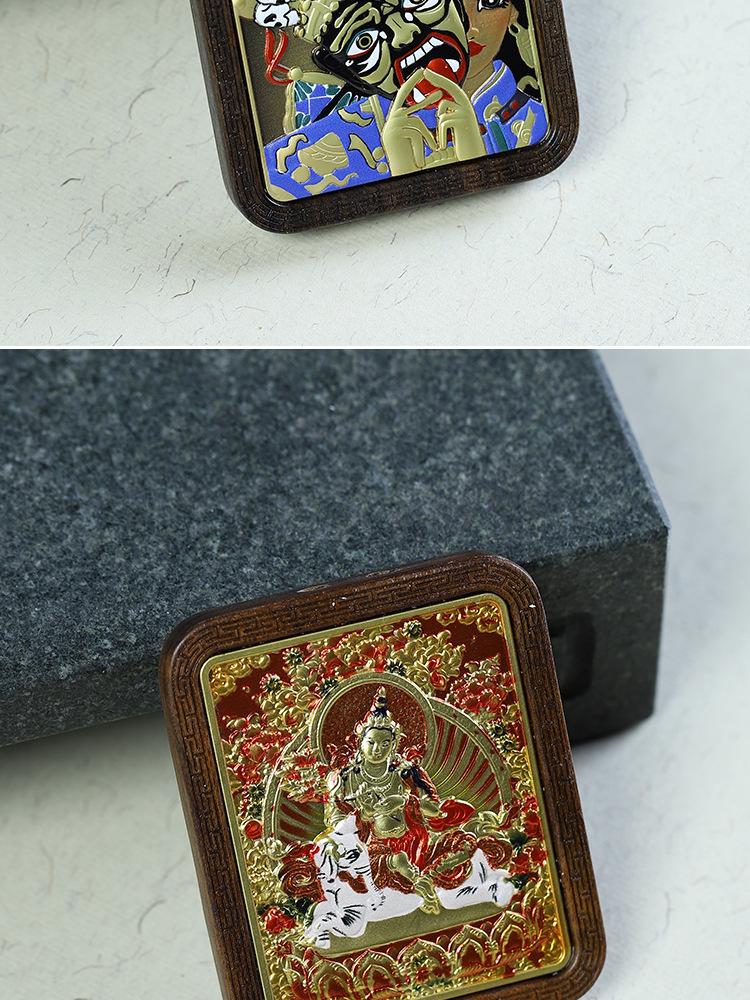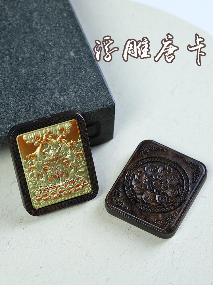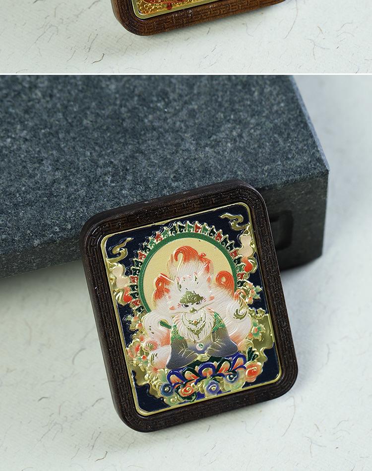 Colgante Thangka de madera de agar en relieve de cobre puro de doble cara pintado a chorro para hombre y mujer, colgante de zorro de nueve colas, guardián de cinco maestros, marca de moda nacional