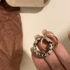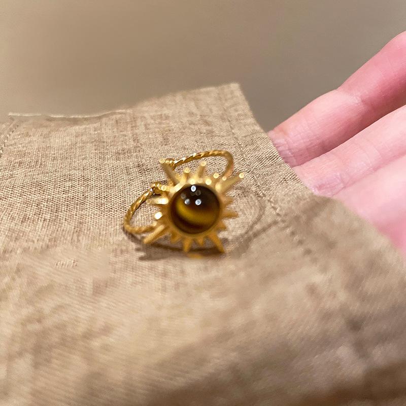 Anillo de Girasol Dorado de Piedra Ojo de Tigre Artificial Nuevo Diseño de Nicho Único Anillo para el Dedo Índice Joyería de Mano Elegante de Alta Gama