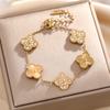 Pulsera de Trébol de Cuatro Hojas de Acero Titanio para Mujer Diseño Nicho de Alta Gama Lujo Ligero Combinable Elegante Sencilla Moda Pulsera de Hierba de la Suerte