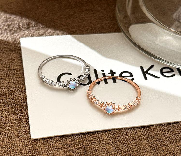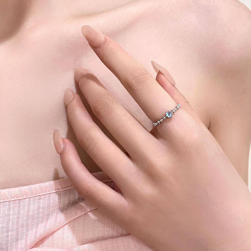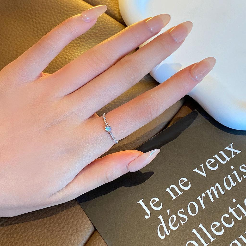 Anillo de plata de ley 925 con diseño de nicho de lujo ligero y piedra lunar dulce con personalidad Xi Gu J0366