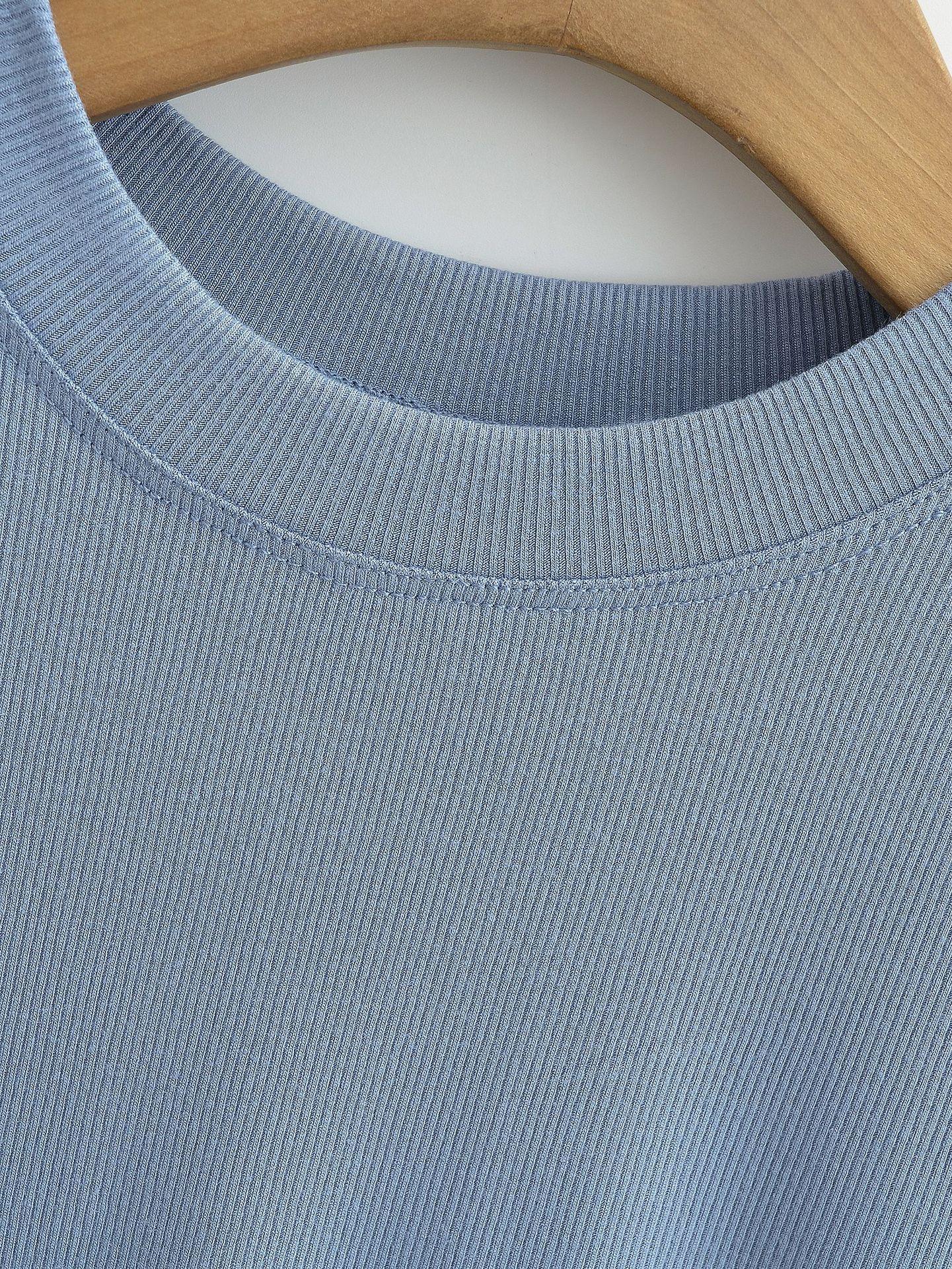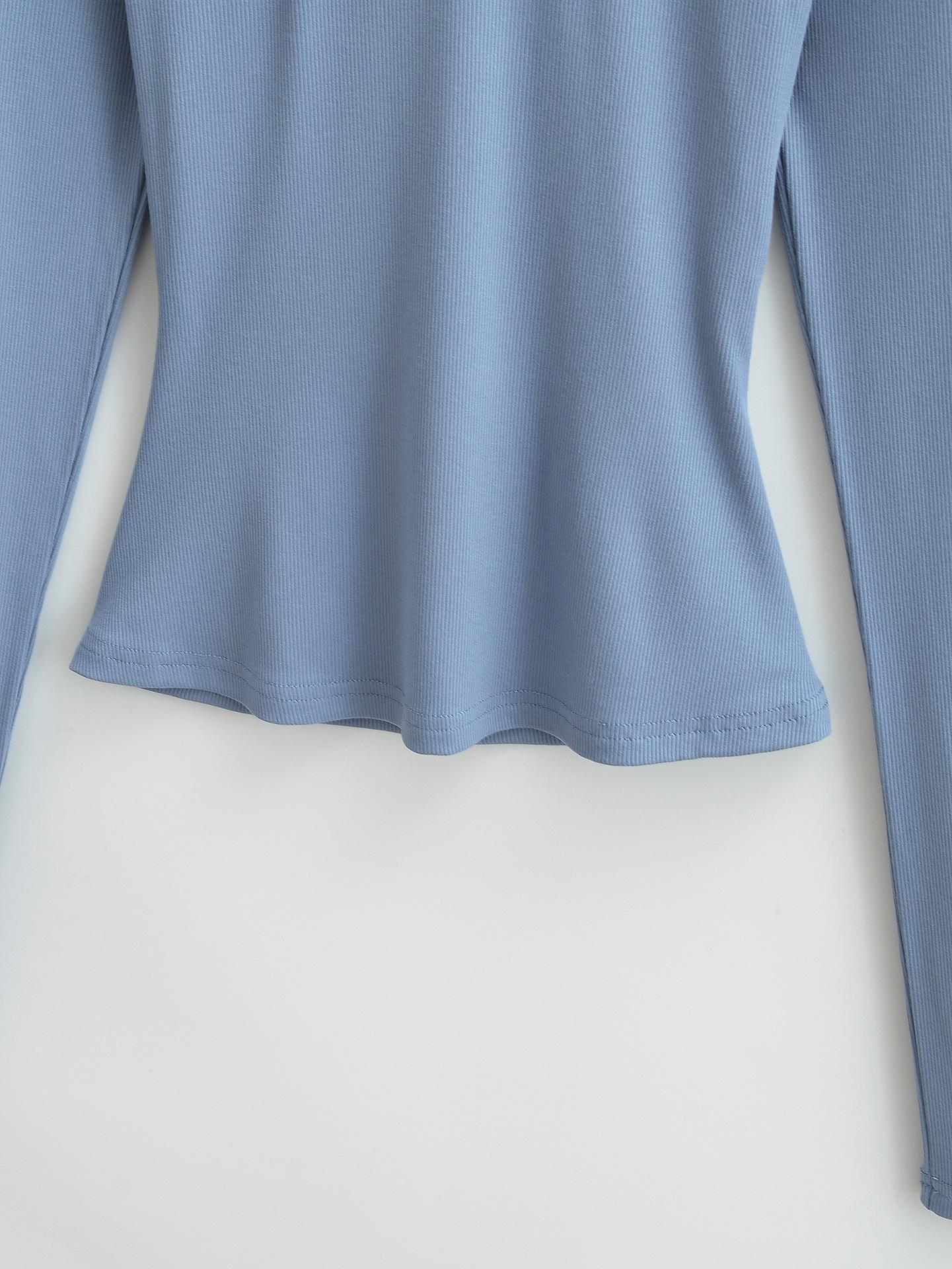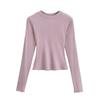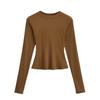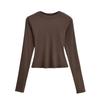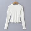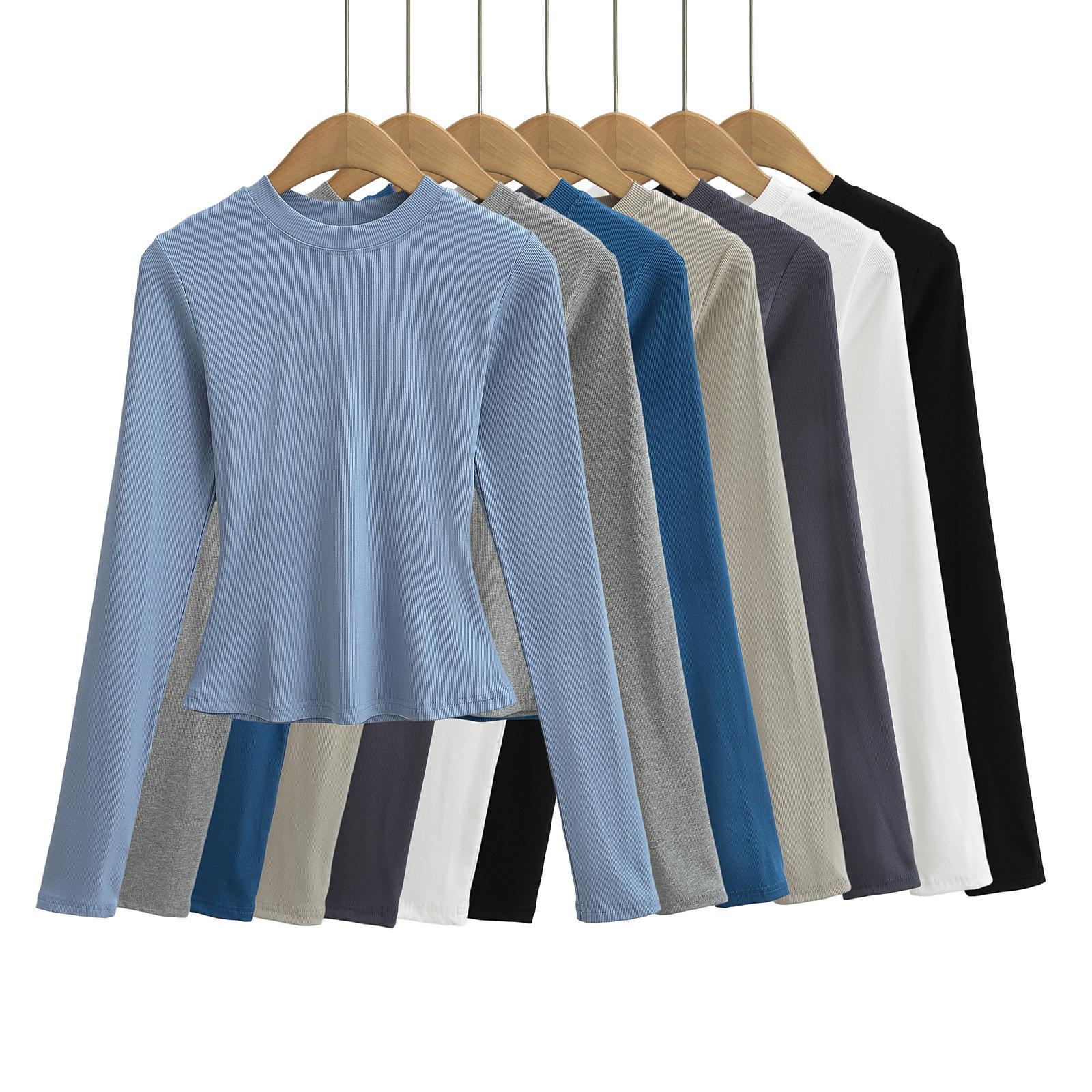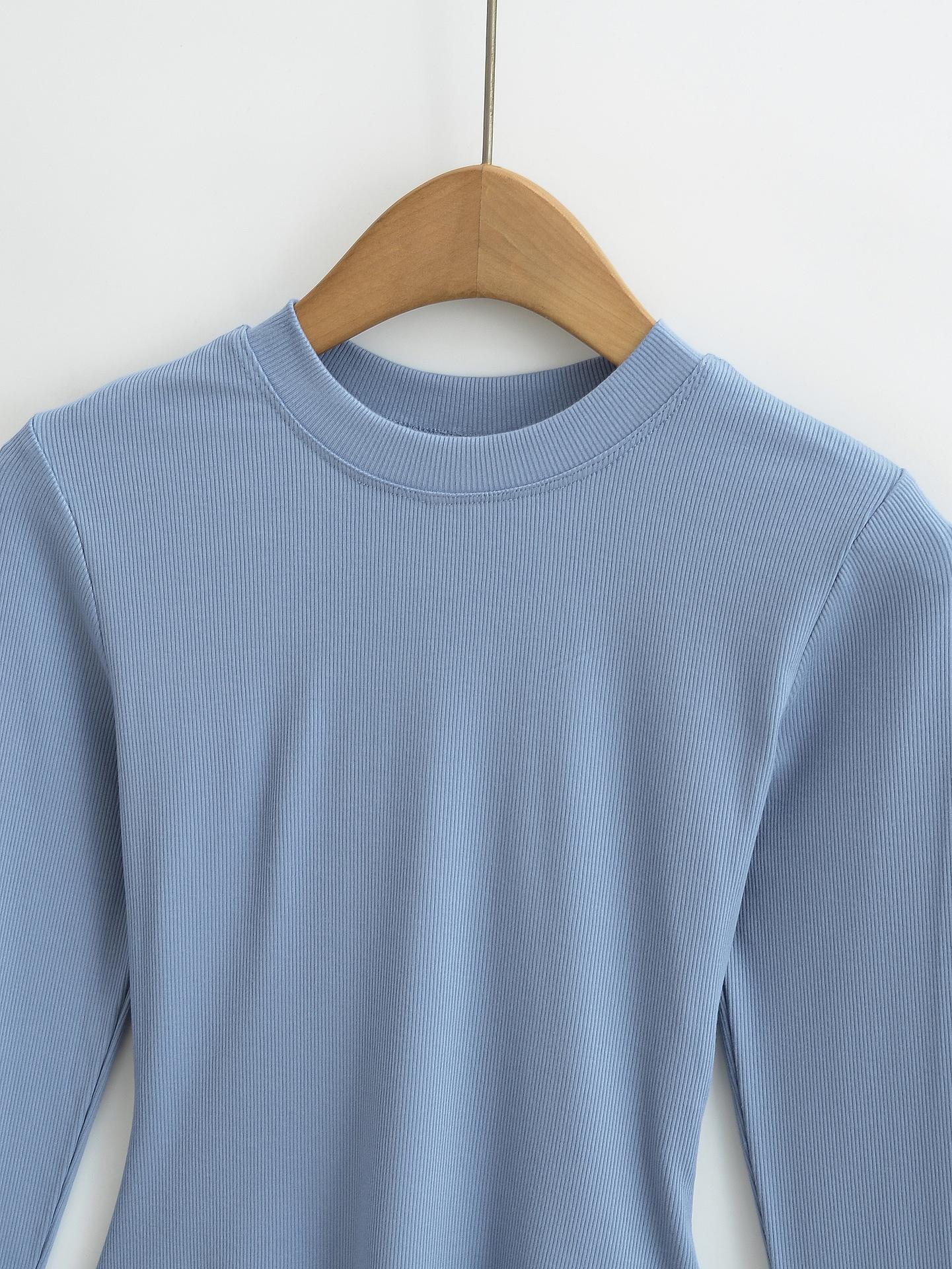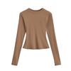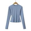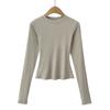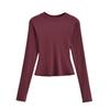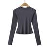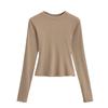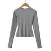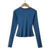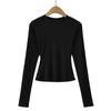 Camisa ajustada con parte inferior elástica de color sólido, nueva camiseta interior corta adelgazante de cintura con cuello redondo estilo retro europeo y americano para primavera y otoño