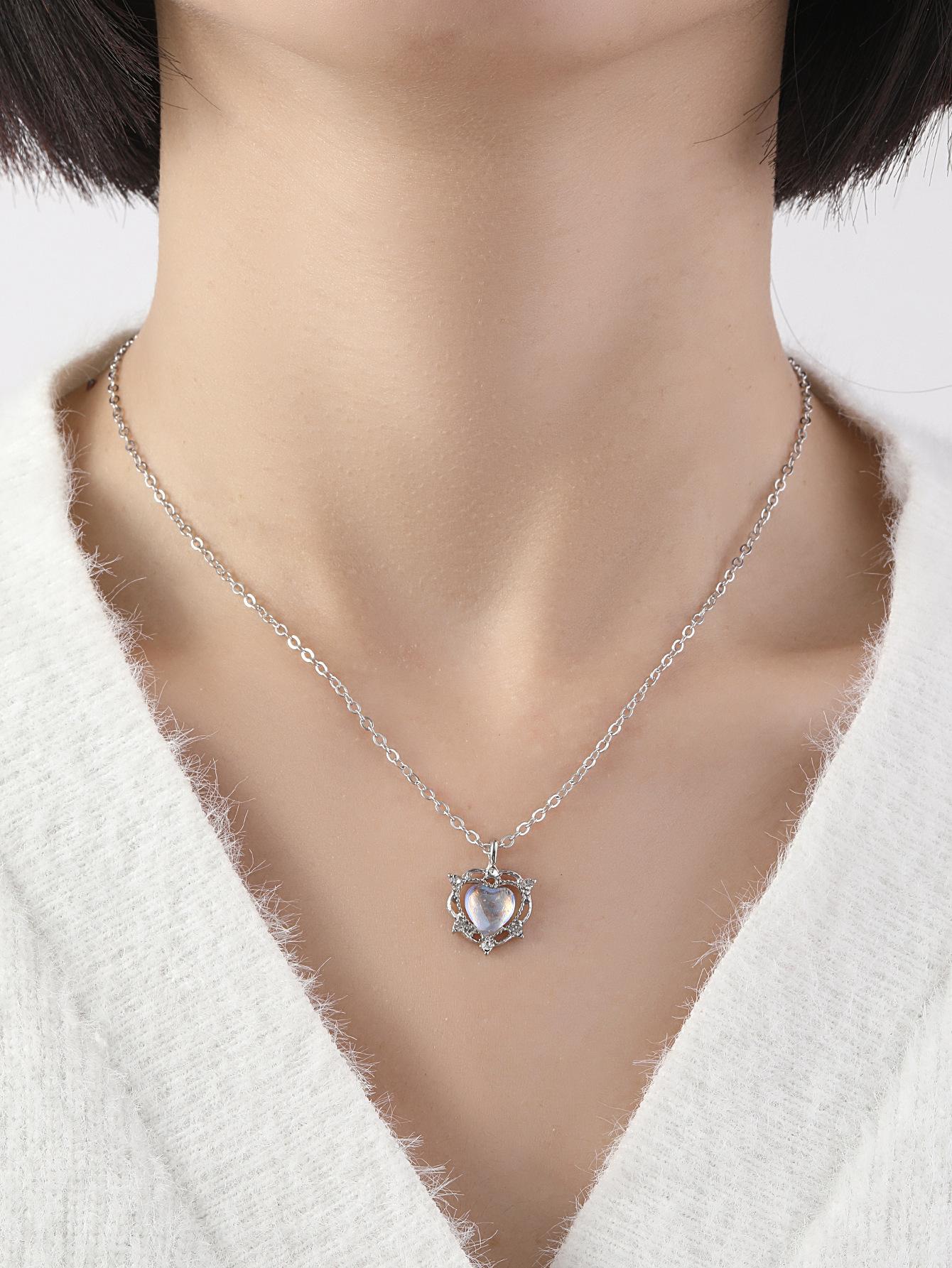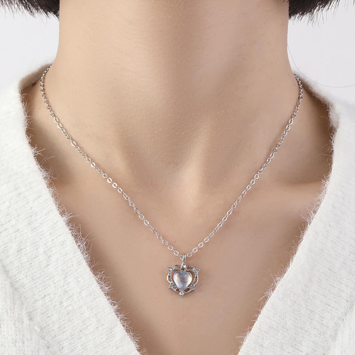 Collar de amor con láser degradado para mujer, moderno, con destellos de diamantes, luz de lujo, diseño de nicho de perla, collar de alta calidad, cadena de clavícula