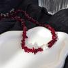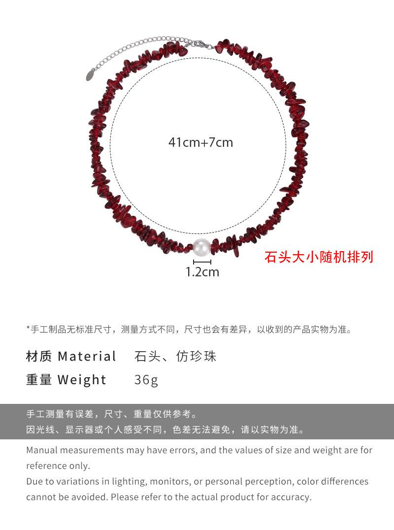 Collar vintage de cuentas de piedra color vino tinto con perla, diseño irregular, cadena para clavícula de alta calidad.