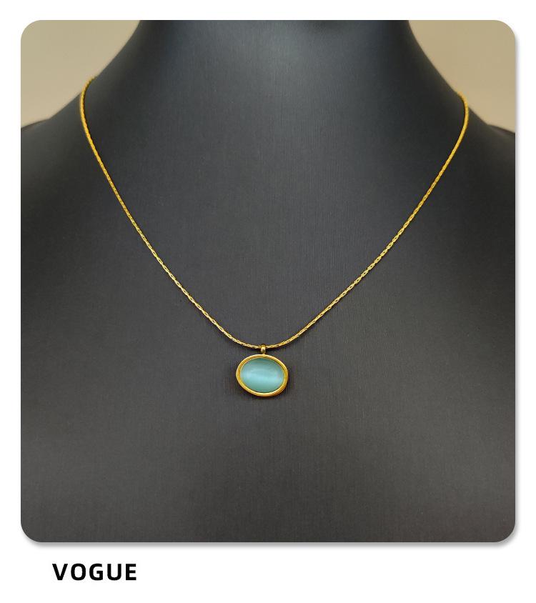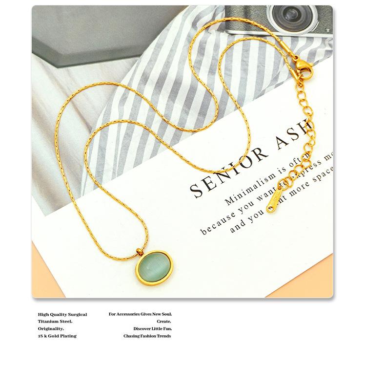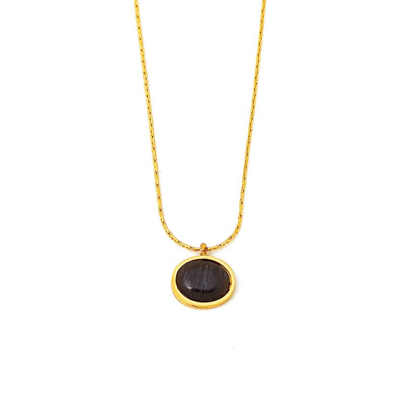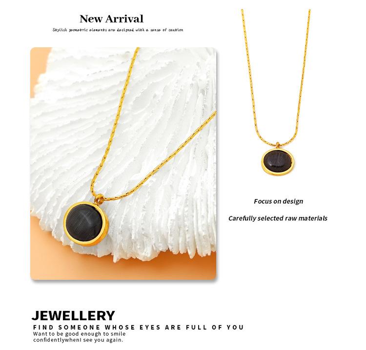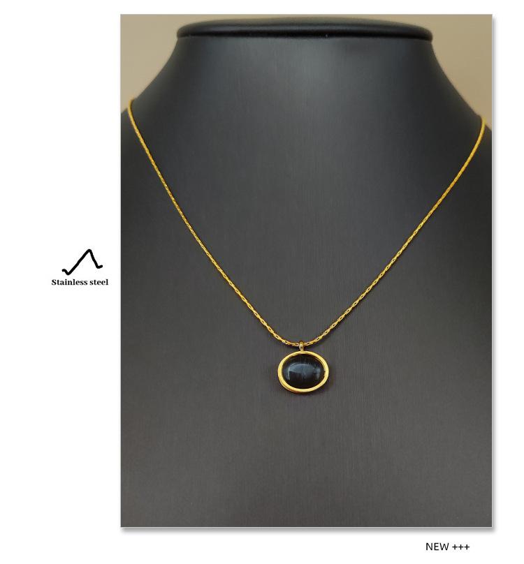 Nuevo collar de acero de titanio con espato negro chapado en oro, ligero, de lujo, con diseño de nicho, cadena de clavícula, colgante, cadena para suéter, regalo de San Valentín