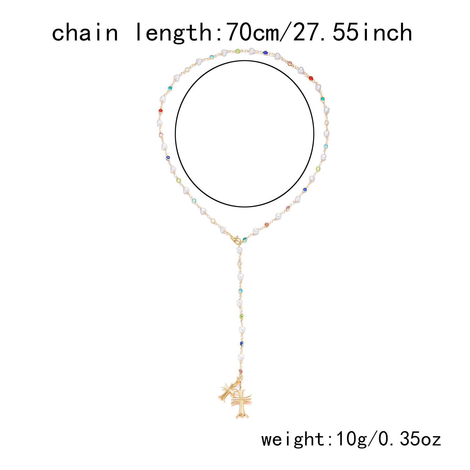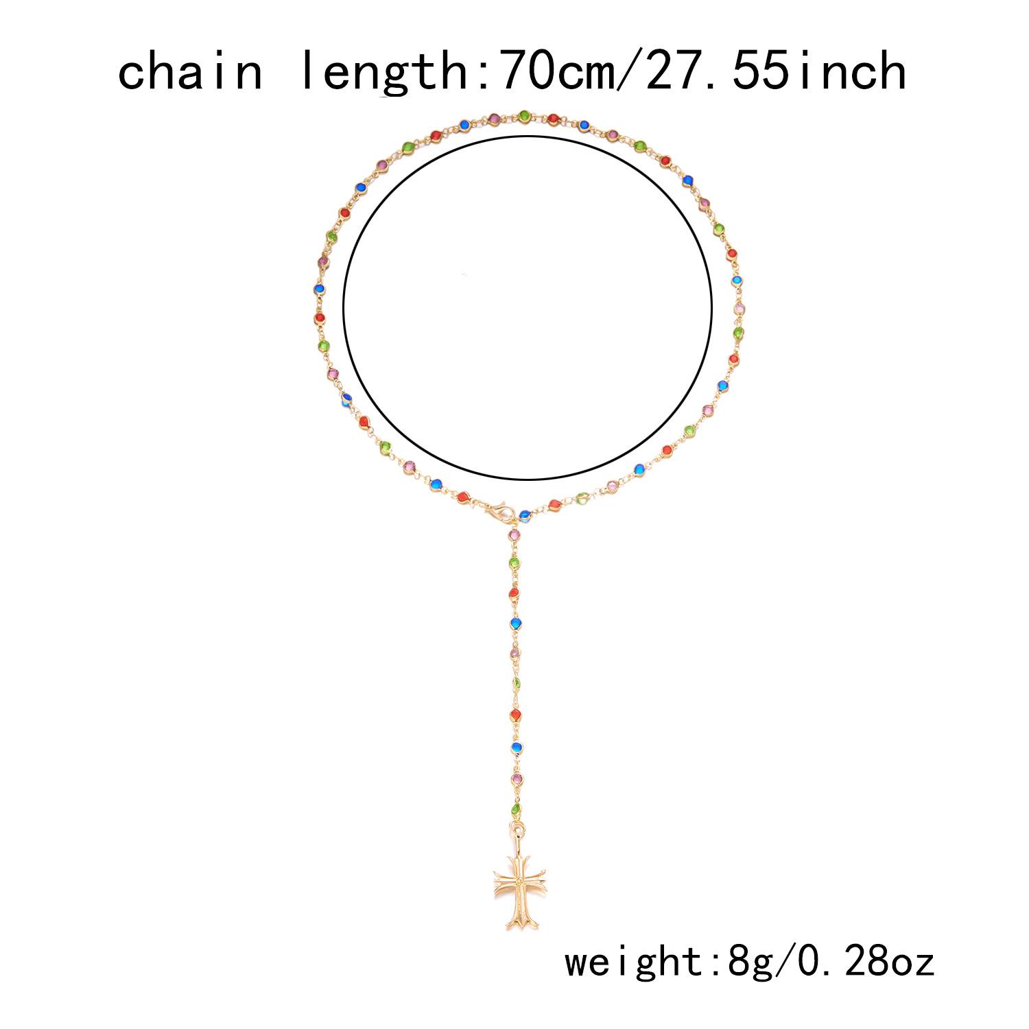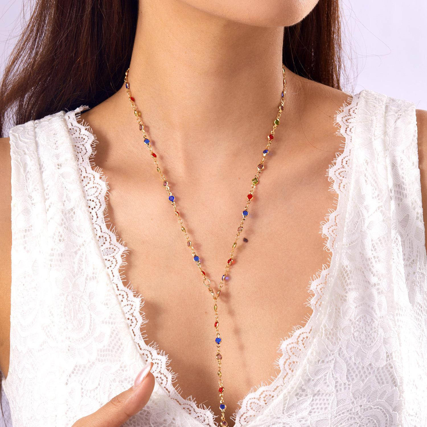 Collar elegante de cadena de clavícula de metal con cristales de colores para mujer, estilo transfronterizo europeo y americano, con borlas y cadena larga sencilla.