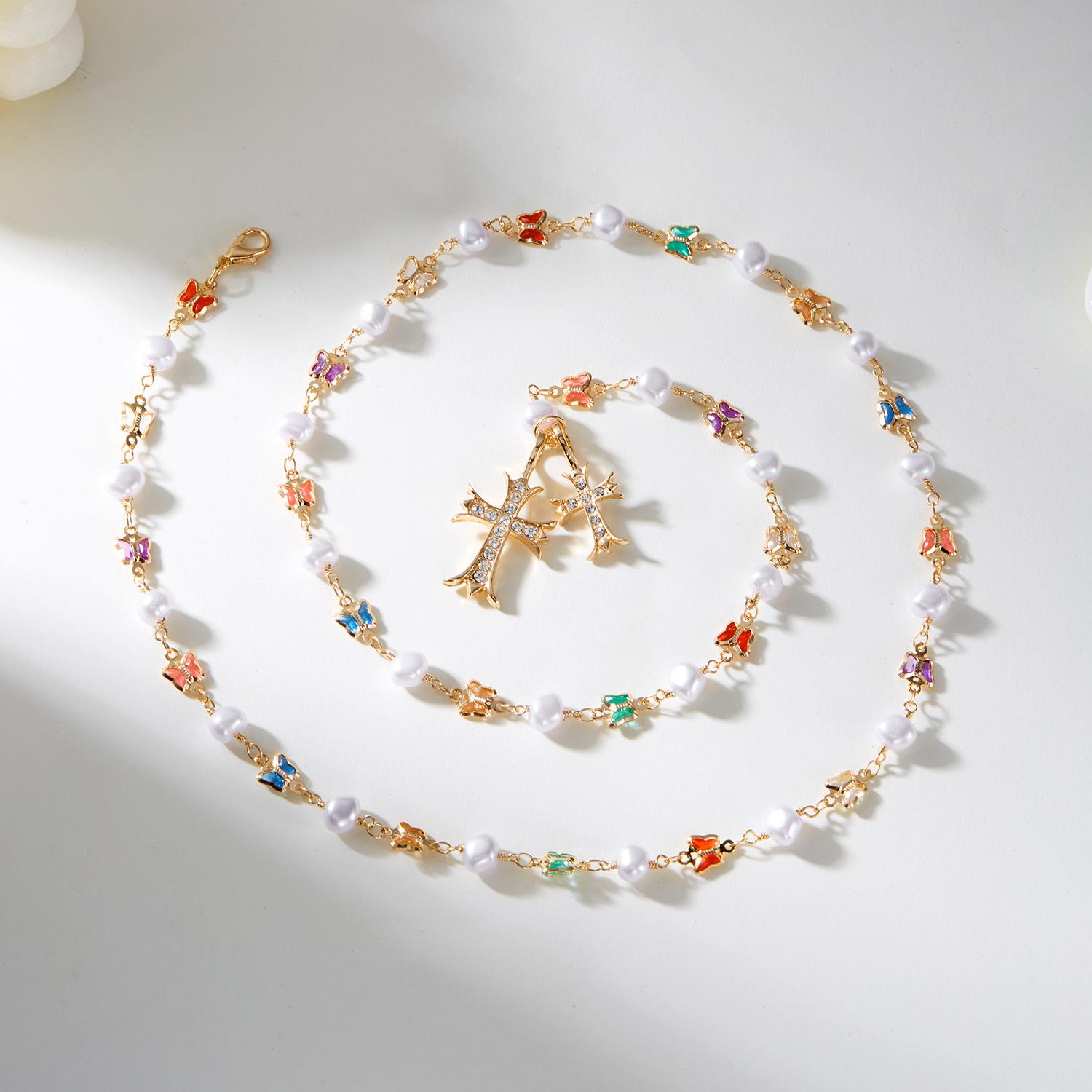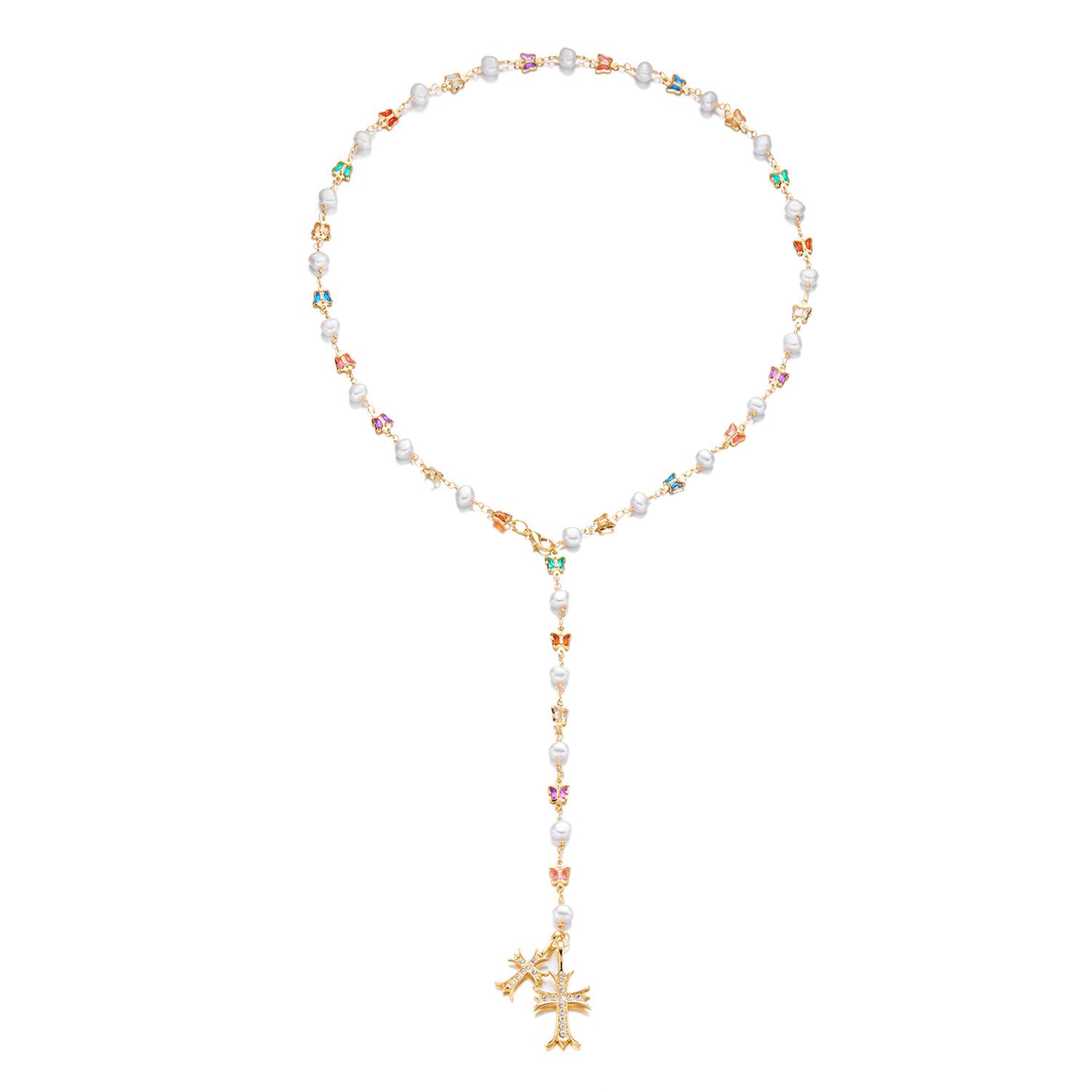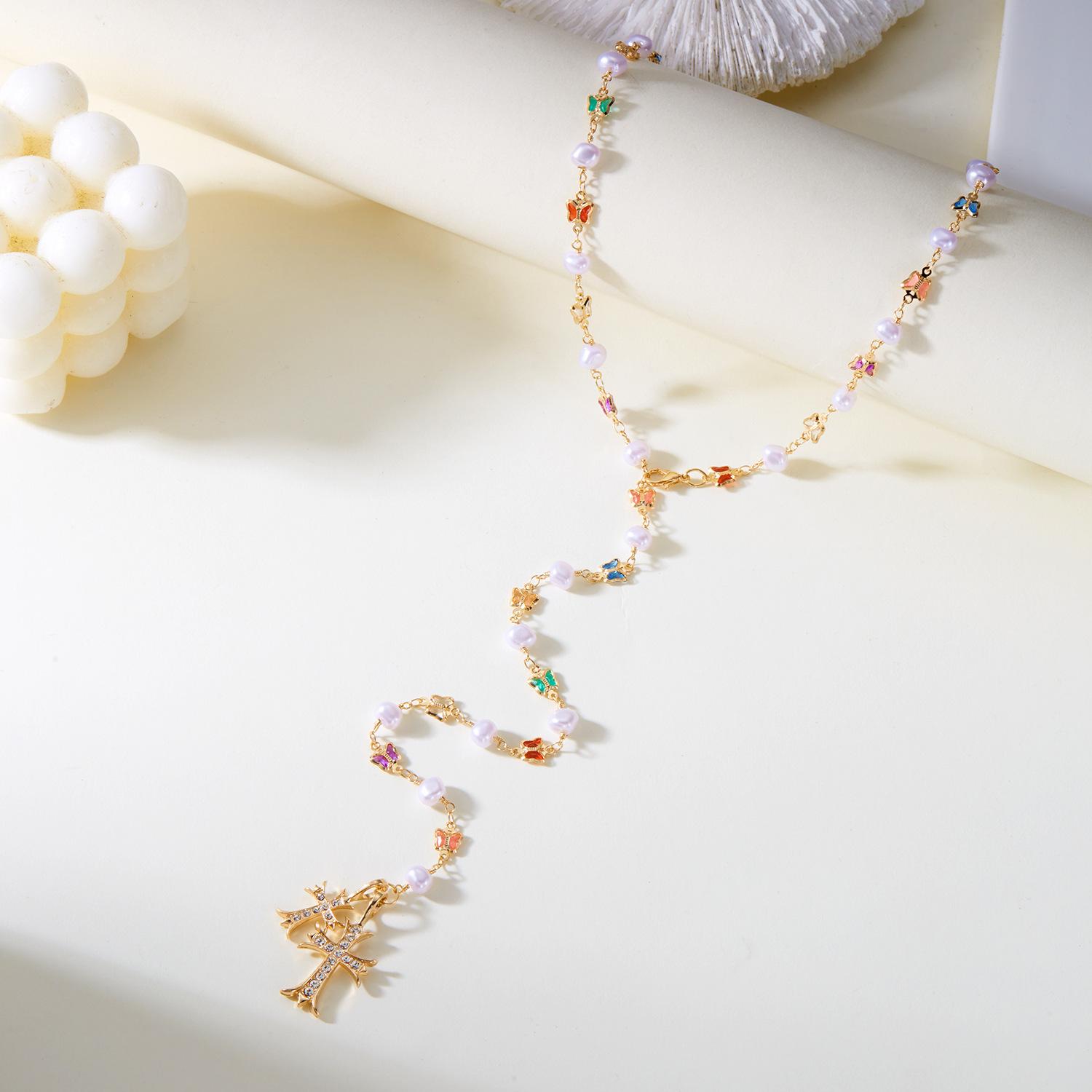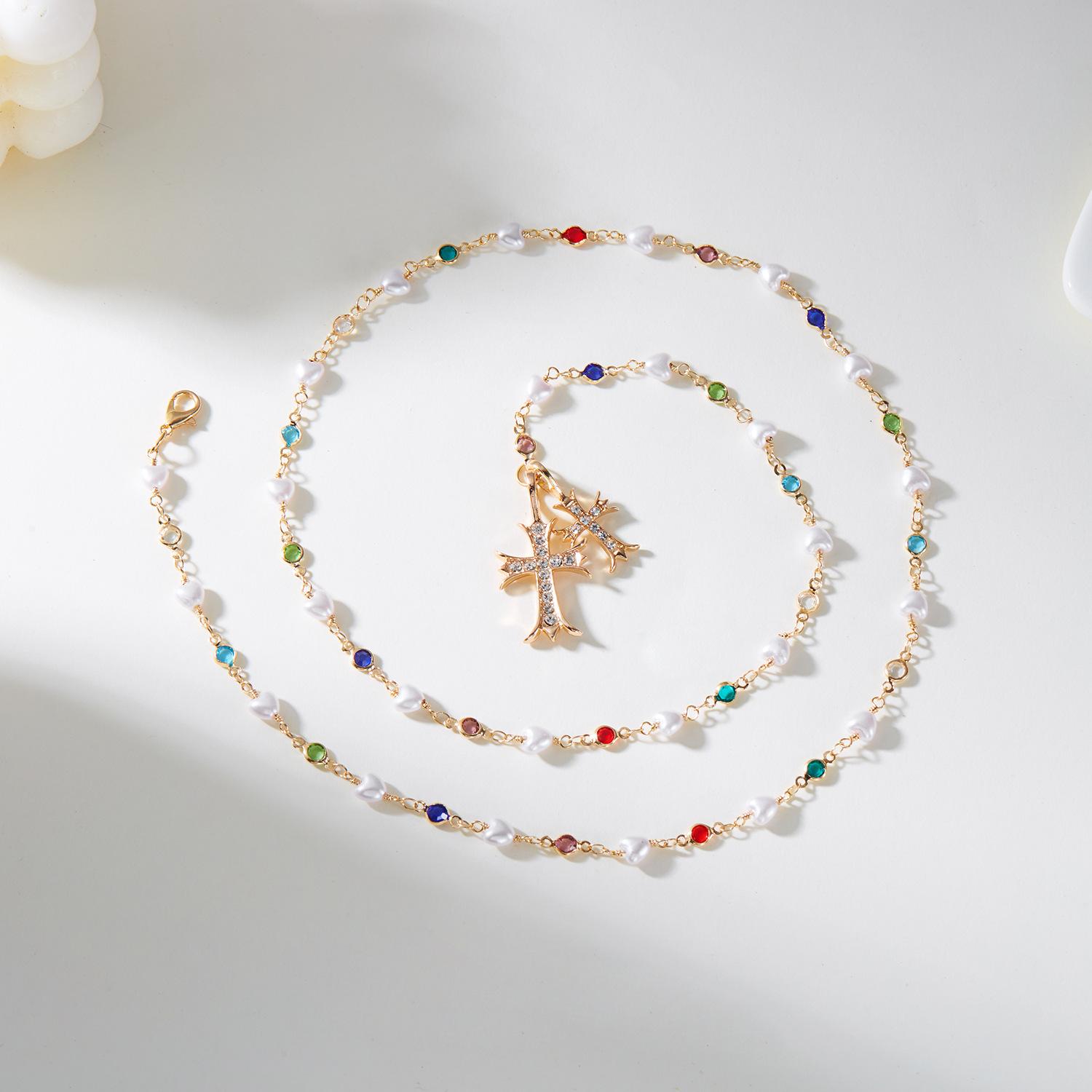 Collar elegante de cadena de clavícula de metal con cristales de colores para mujer, estilo transfronterizo europeo y americano, con borlas y cadena larga sencilla.