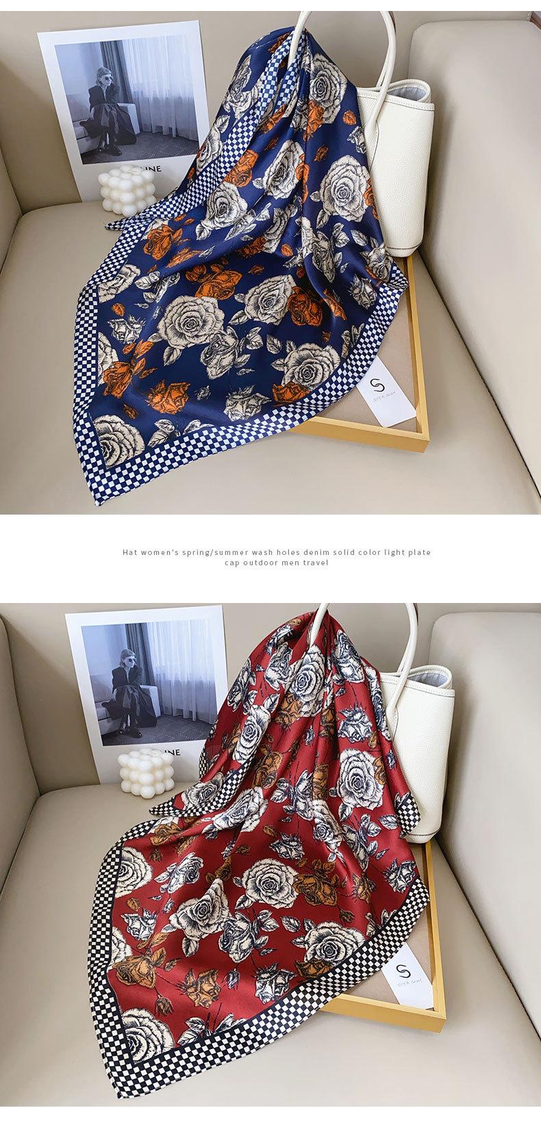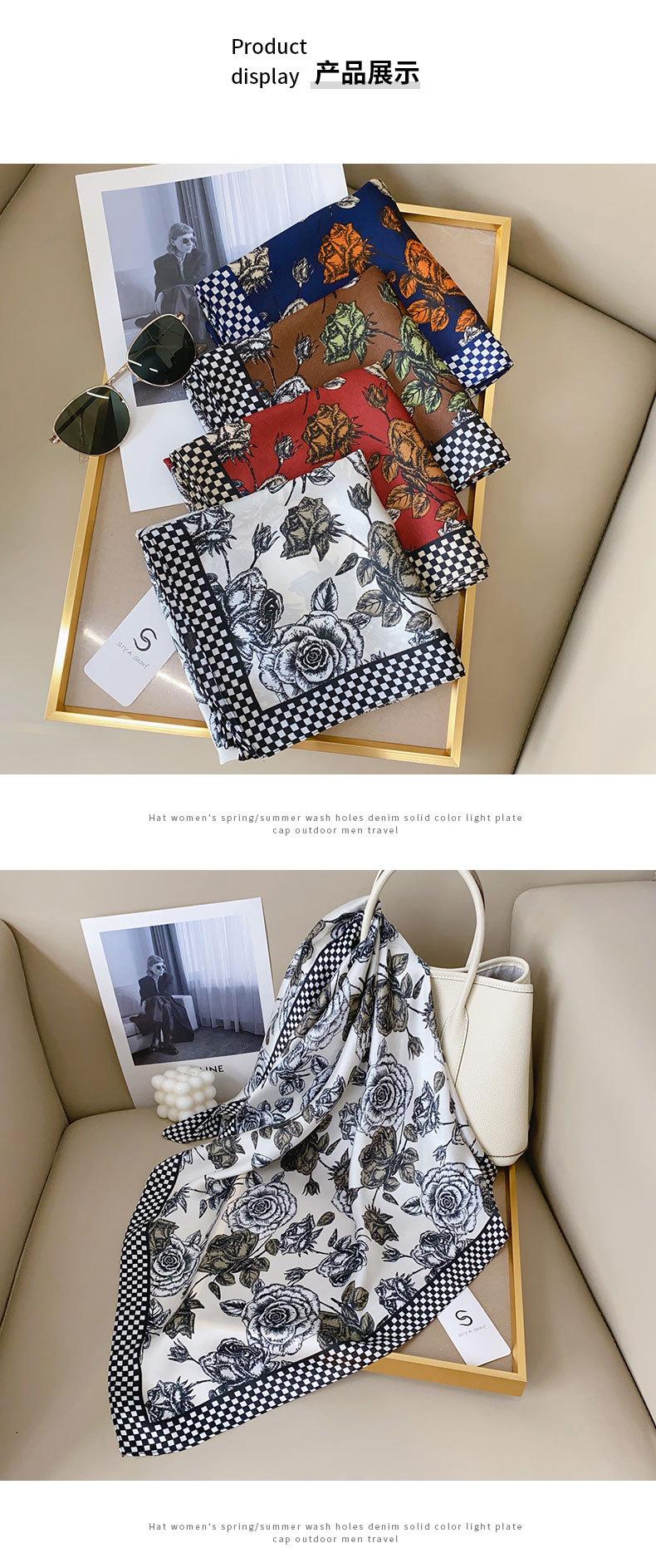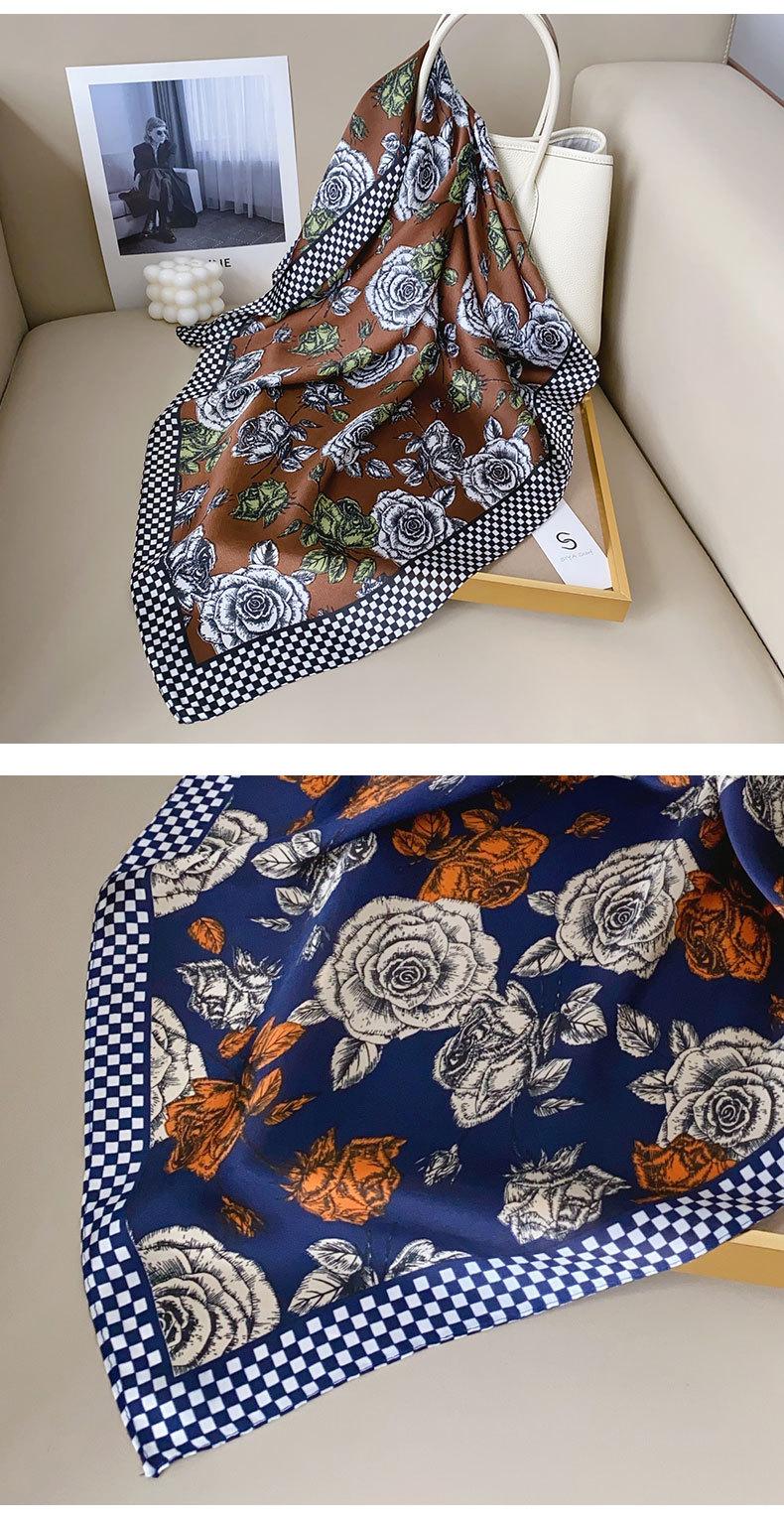Pañuelo de seda de alta gama estilo nicho vintage INS, diseño de estilo coreano, estampado de rosas.