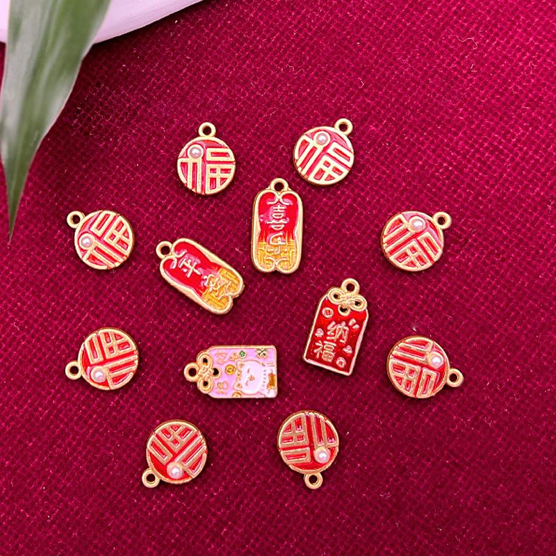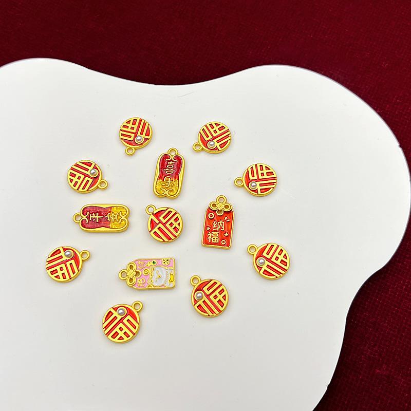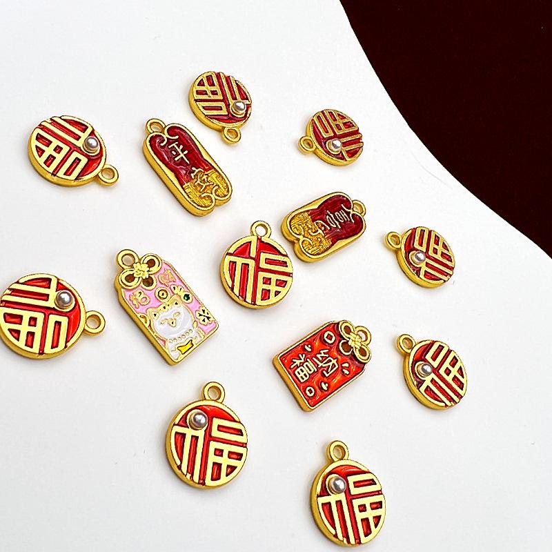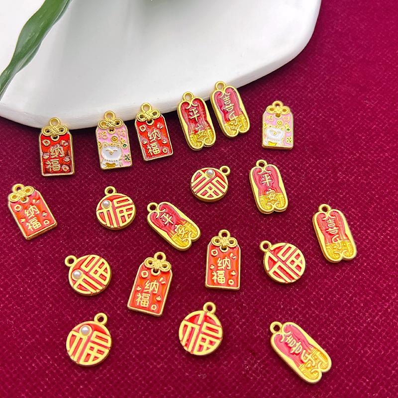 Nuevo Caliente Silencioso Gota de Aceite Dorado Doble Cara Ping An Carácter de Felicidad Fortuna Amuleto Nafu de la Suerte Etiqueta Colgante DIY Accesorios para Ropa
