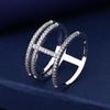 Anillo Europeo y Americano Arcoíris Micro-incrustado Zircón en Forma de I con Forma de Wang Personalidad Moda Temperamento Anillo de Doble Capa Joyería Anillo de Mujer