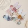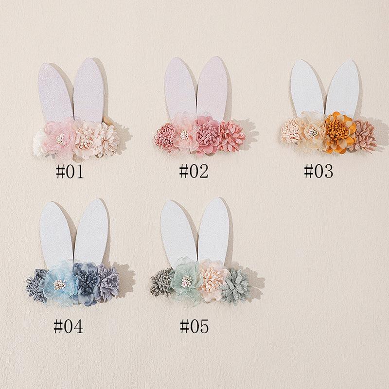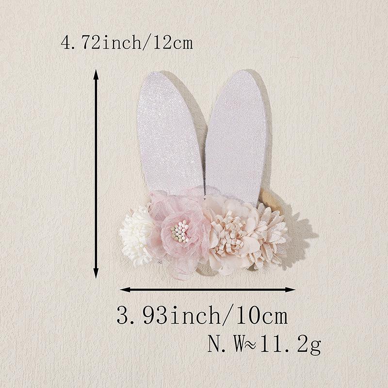 Accesorios para el cabello nuevos para niños transfronterizos Banda para el cabello con orejas de conejo y flor artificial para bebé europea y americana Banda para el cabello delgada de nailon elástico para bebé