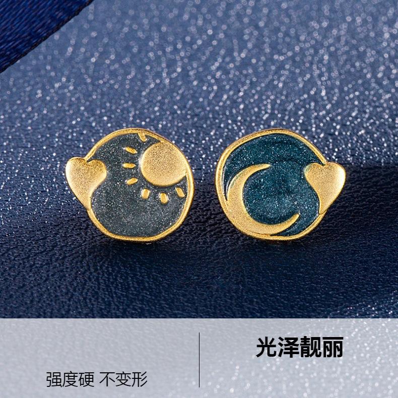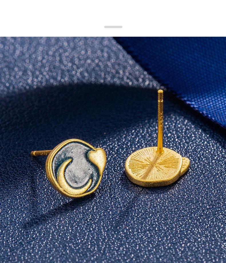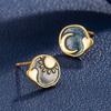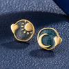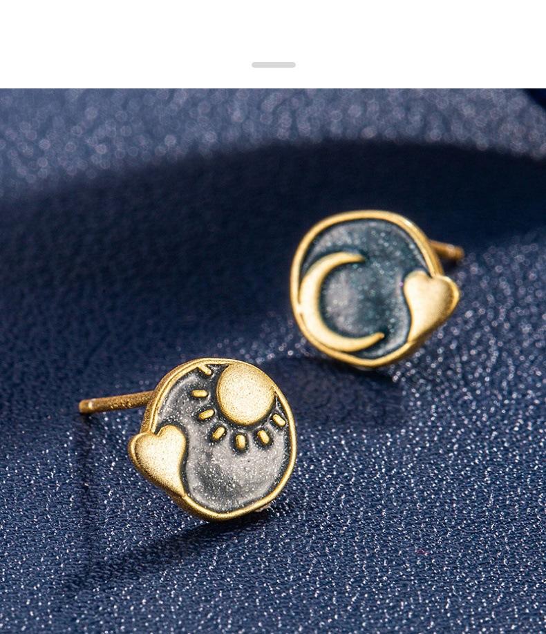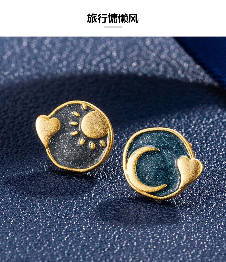 Pendientes asimétricos de línea cuadrada, pendientes de sol y luna para mujer, plata de ley S925, pendientes de moda retro elegantes de Corea del Sur, combinables con todo.