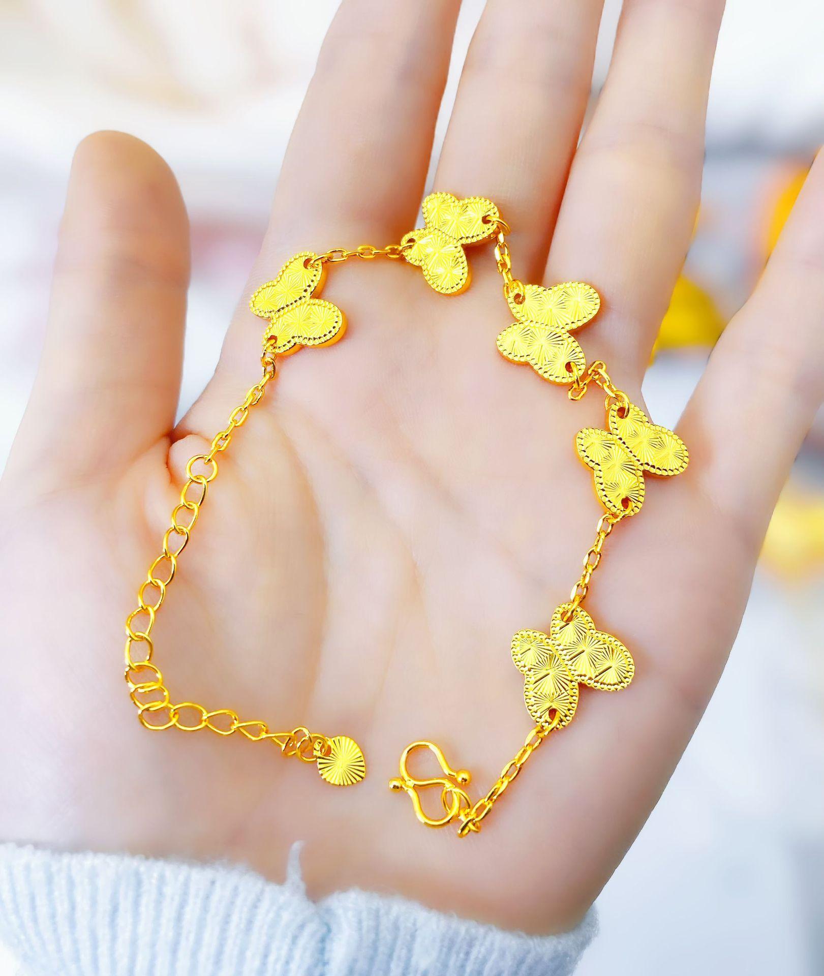 Pulsera de Mariposa Escama de Dragón Flor de Cerdo Oro Arena Antigua para Mujer Collar con Colgante de Calabaza de Alta Gama Cobre Chapado en Oro 24K No se Desvanece por Mucho Tiempo