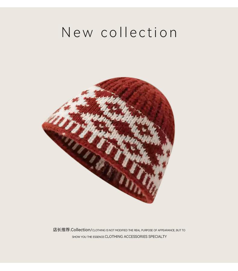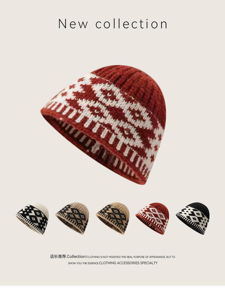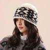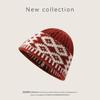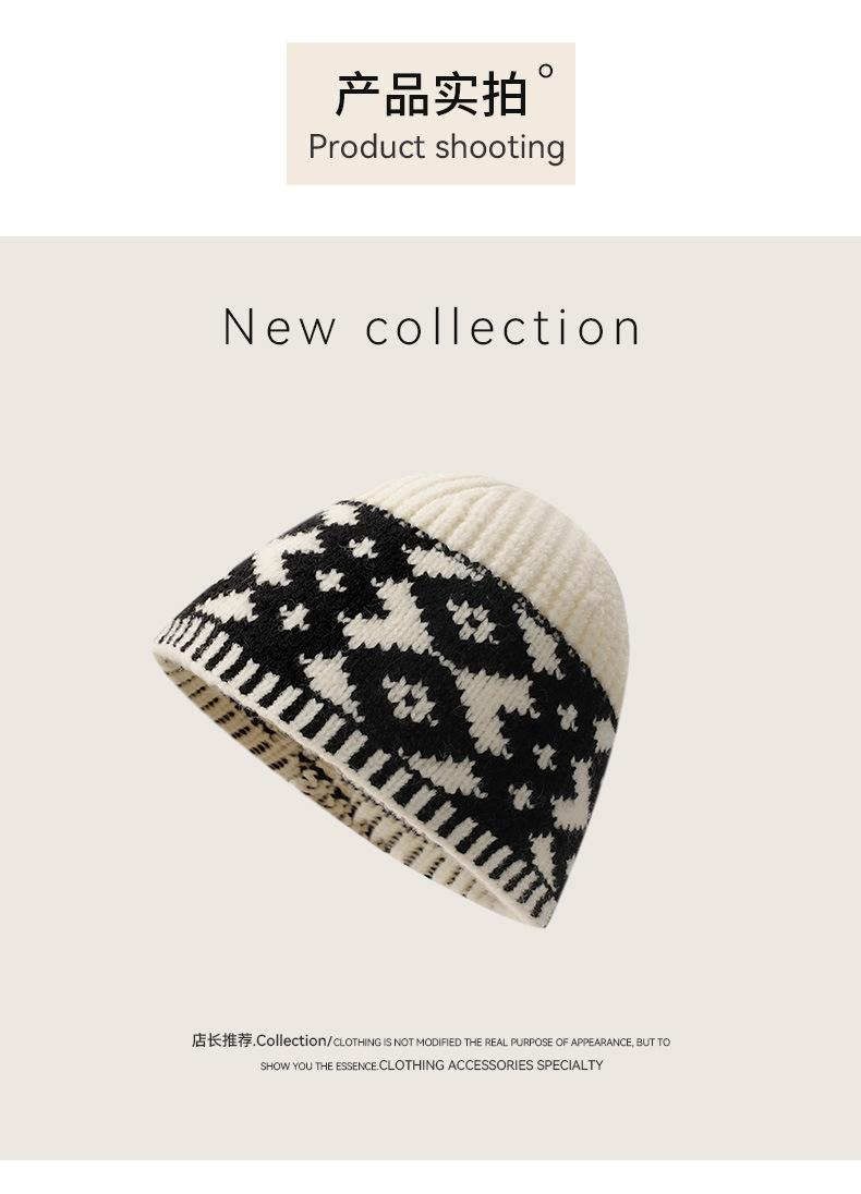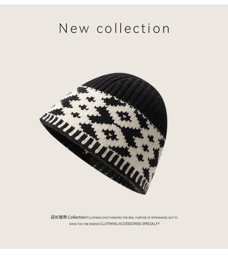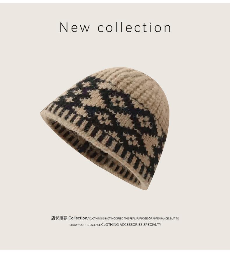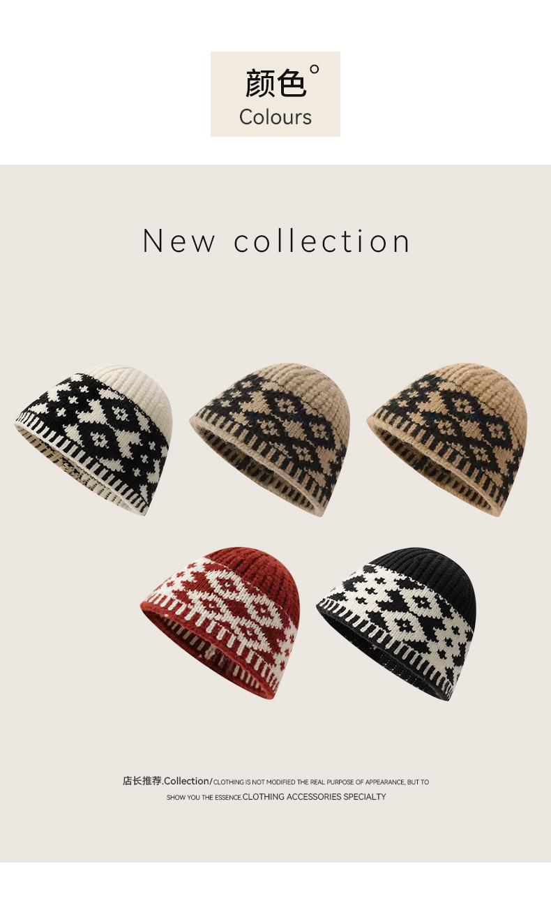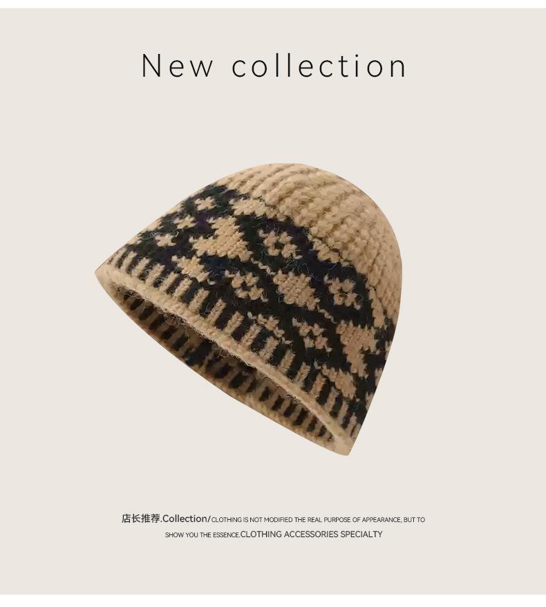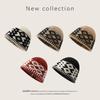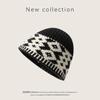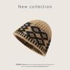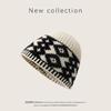 Gorro de punto estilo coreano para otoño e invierno, con personalidad de nicho, estilo retro con jacquard de diamantes, a la moda, para todo tipo de ocasiones, de lana gruesa y cálida.