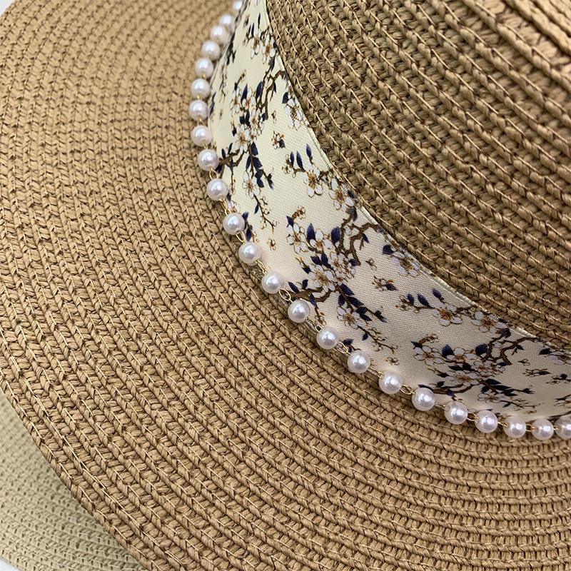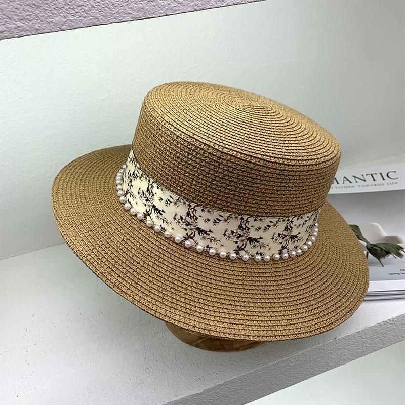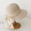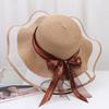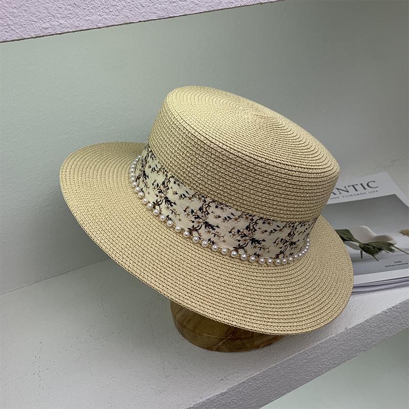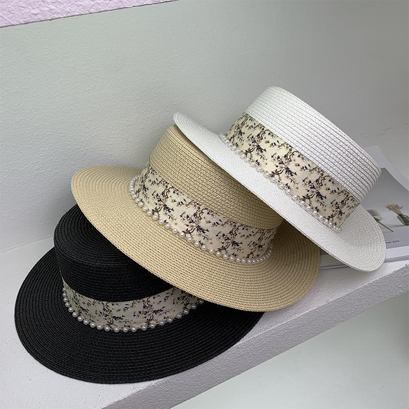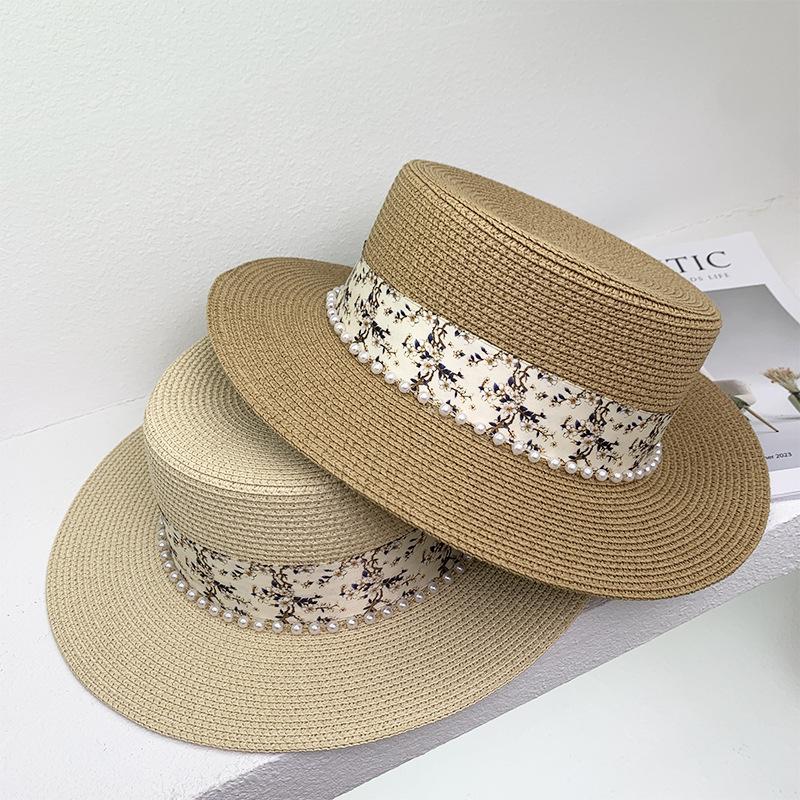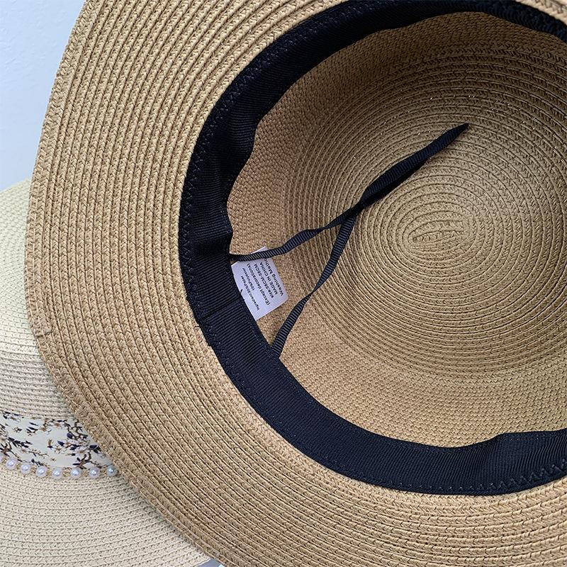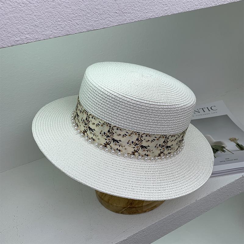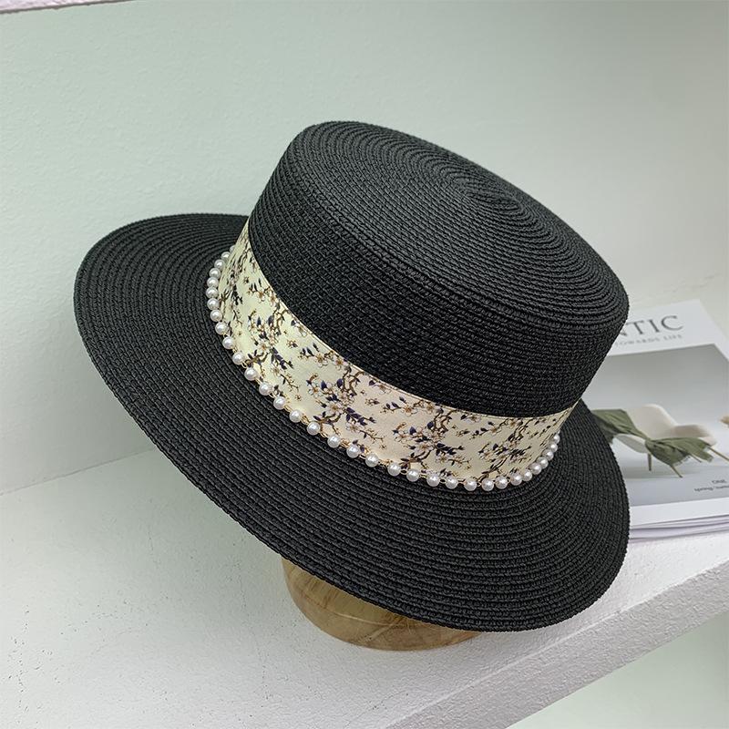Sombrero de paja de moda para mujer, sombrero de verano con lazo y protector solar, sombrero francés de paja plana informal para el sol.
