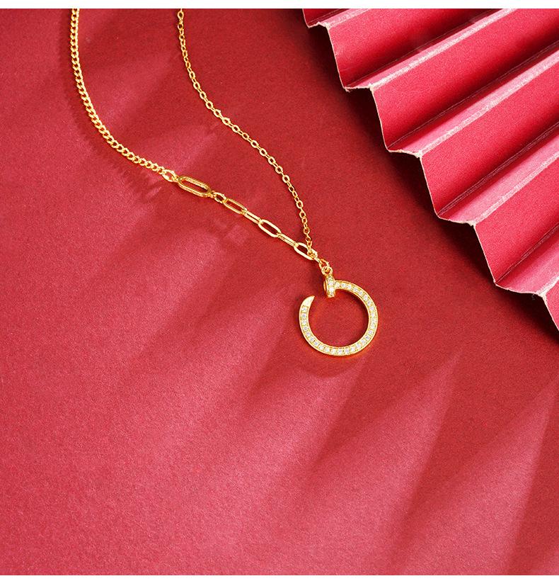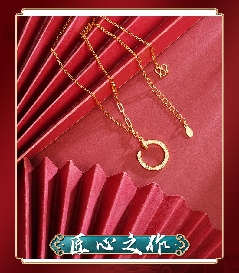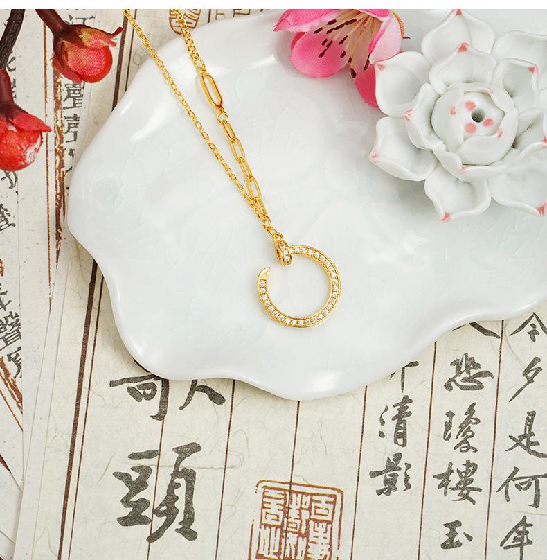 Nuevo collar de oro y arena antiguo de estilo chino, ligero, de lujo, con incrustaciones de diamantes, geométrico, redondo, simple, cadena de clavícula para mujer, joyería de alta gama que combina con todo.
