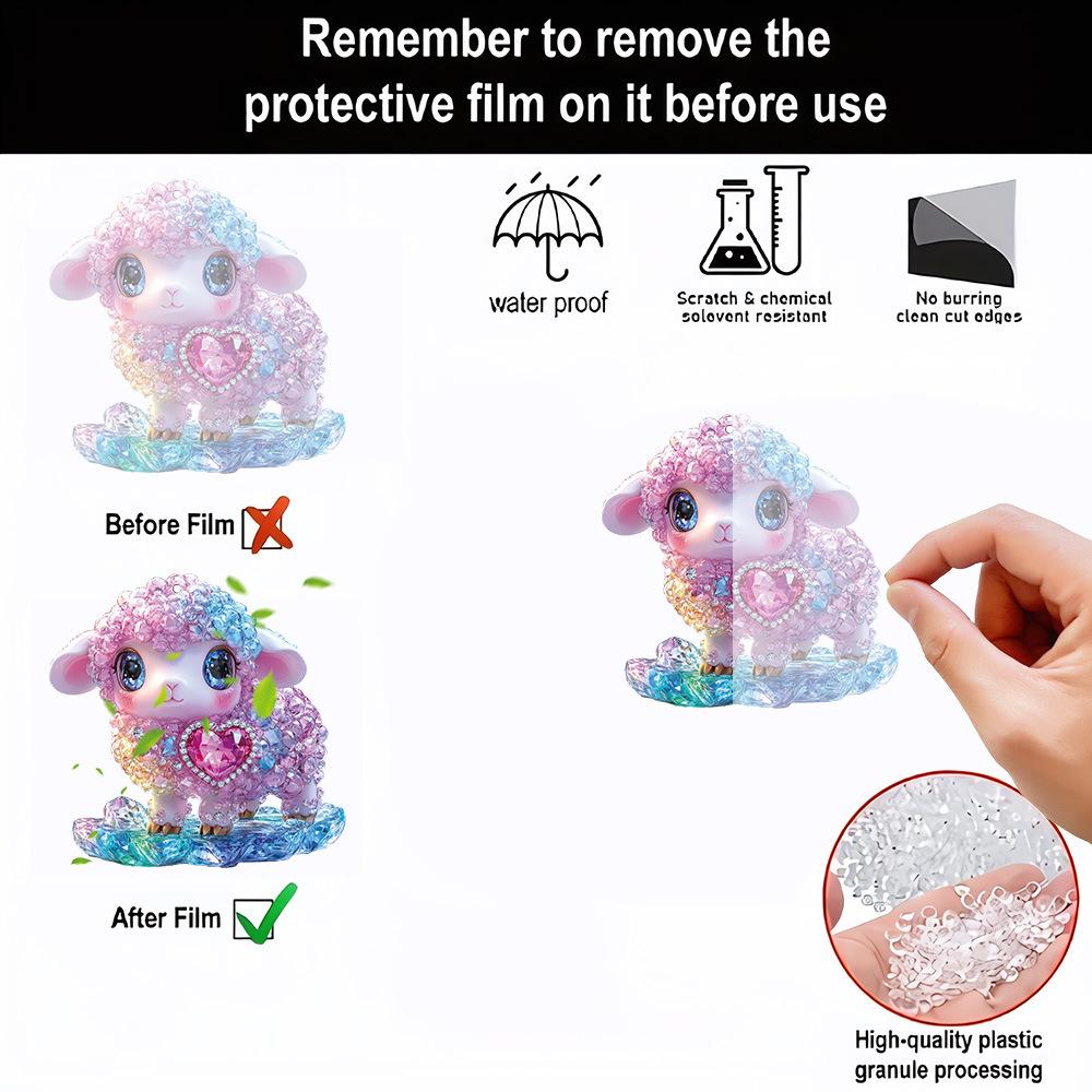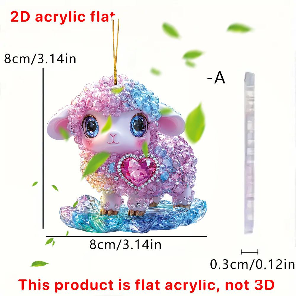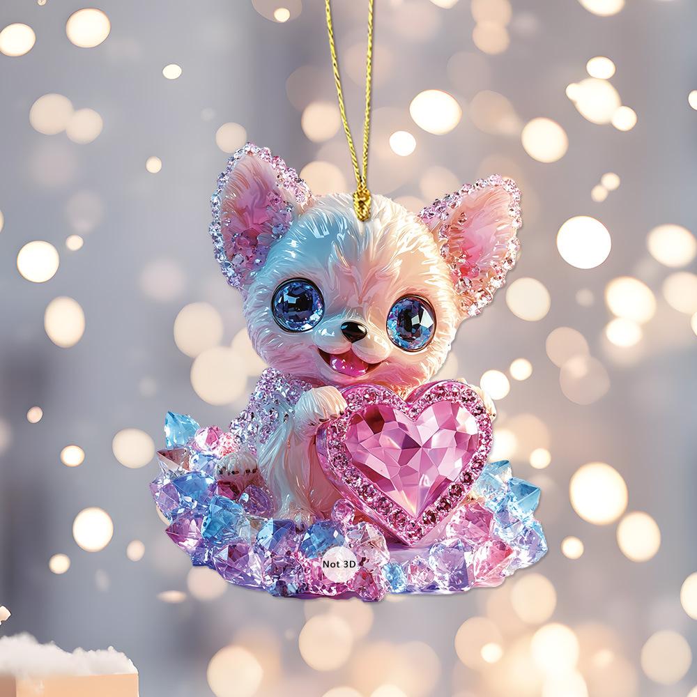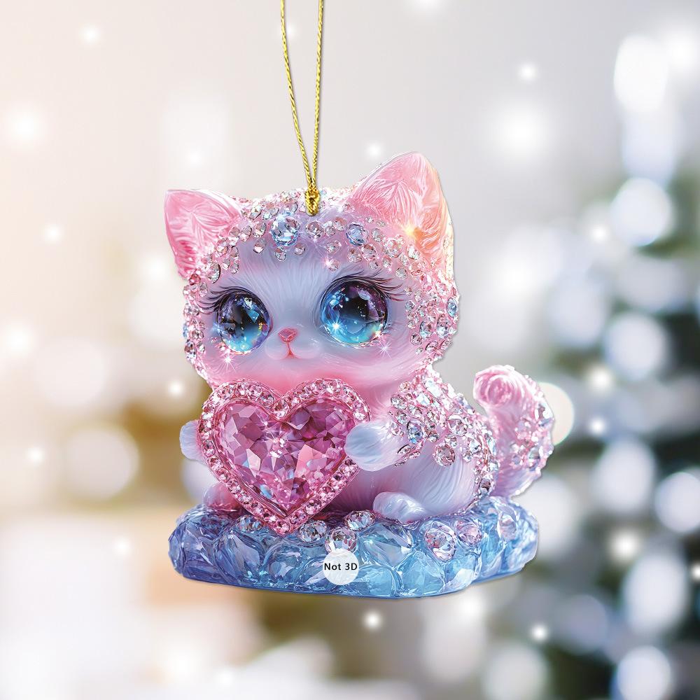 Colgante de mochila acrílico con diseño de gatito, cordero y copo de nieve rosa, ideal para San Valentín.