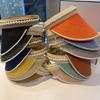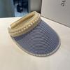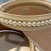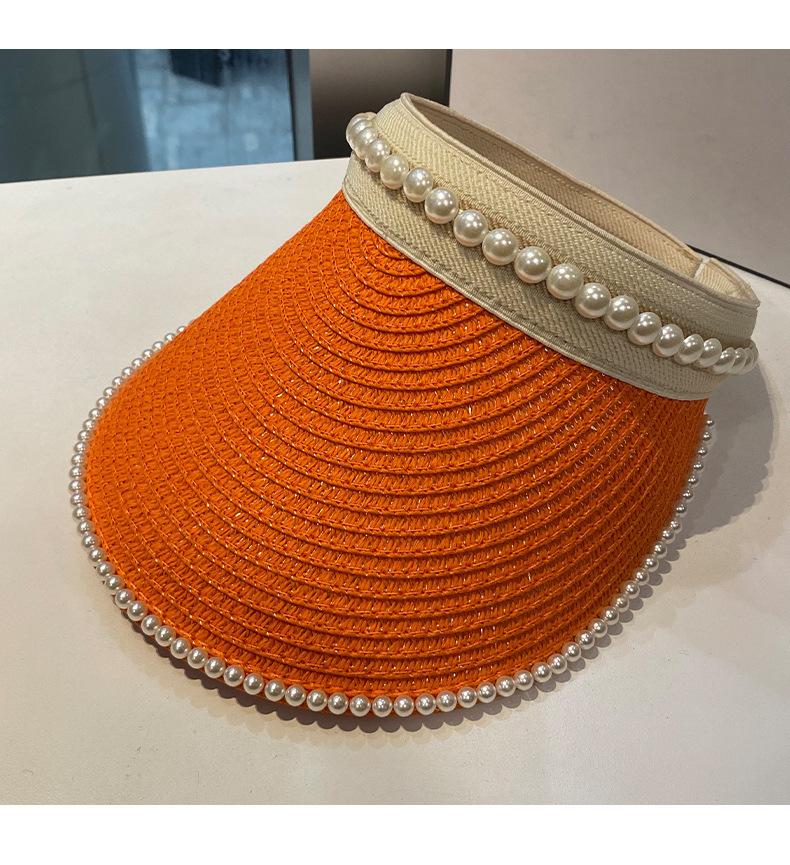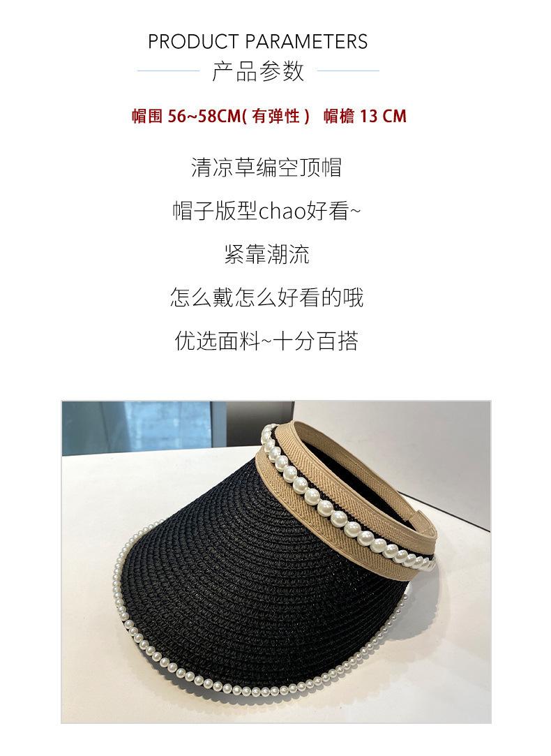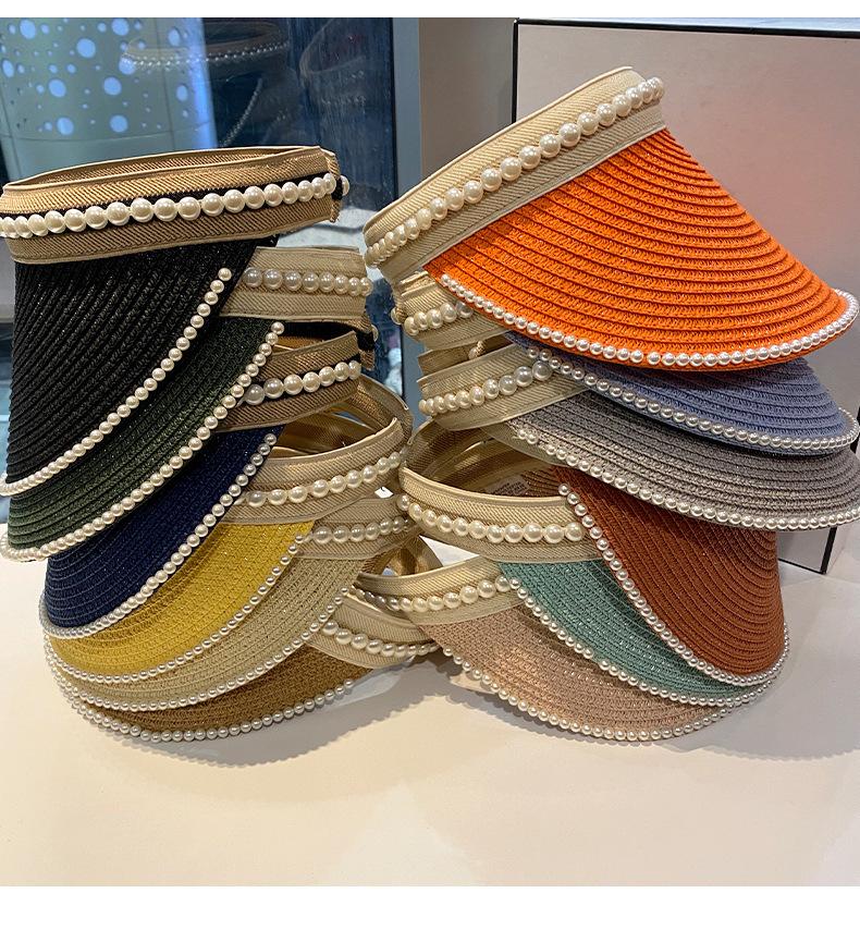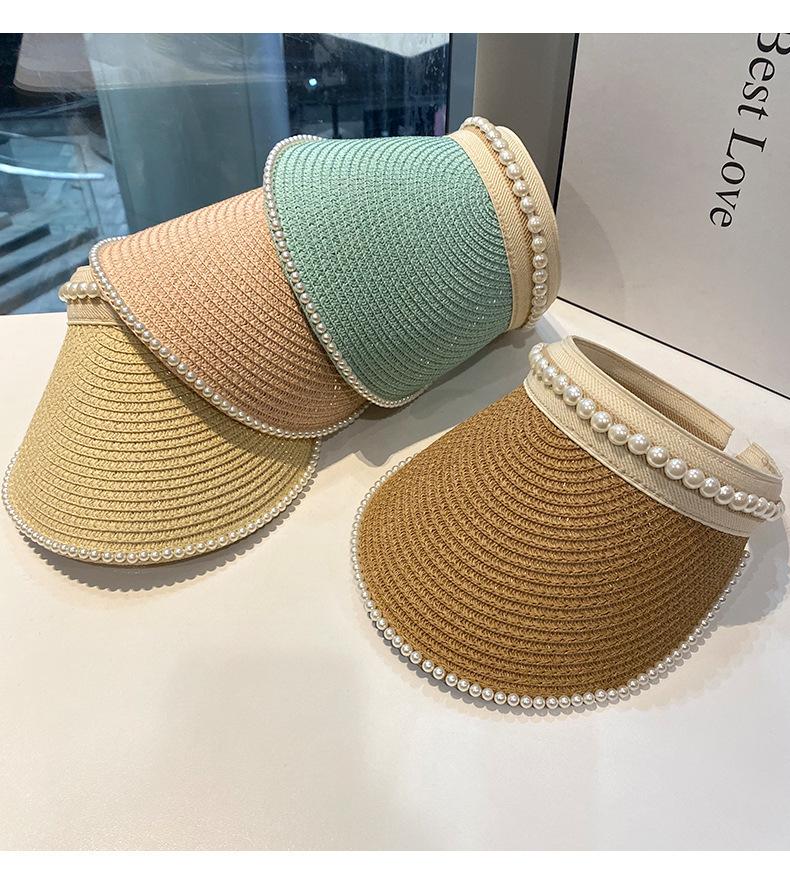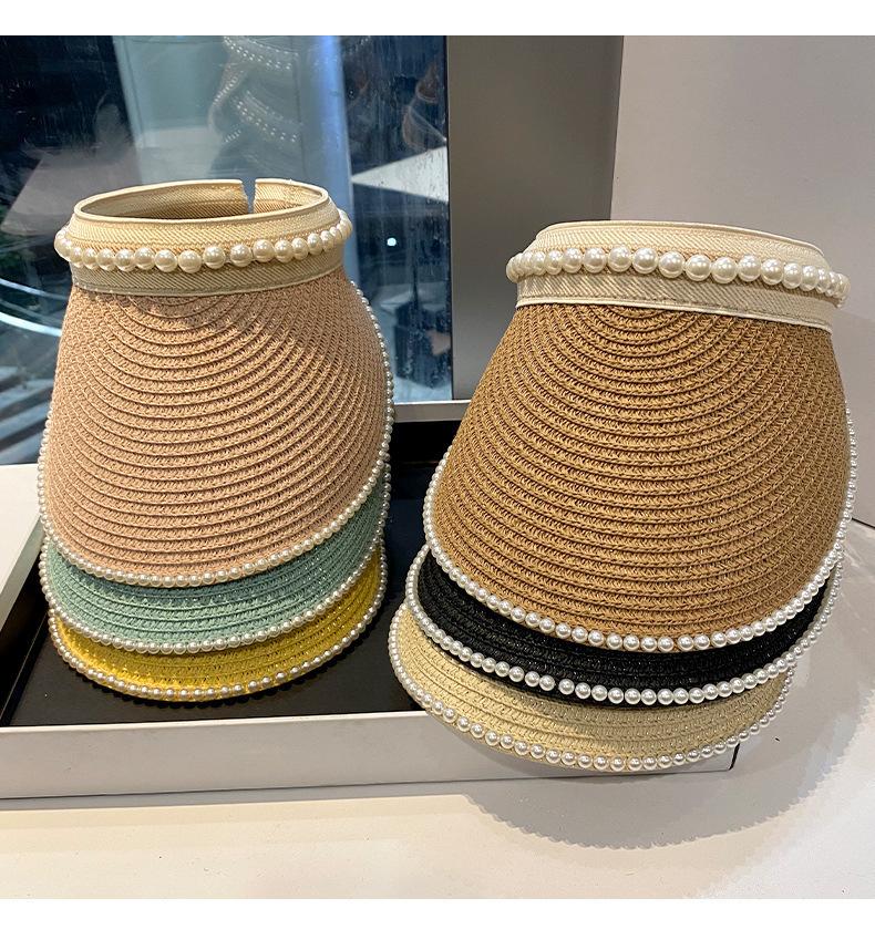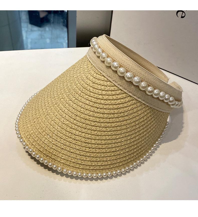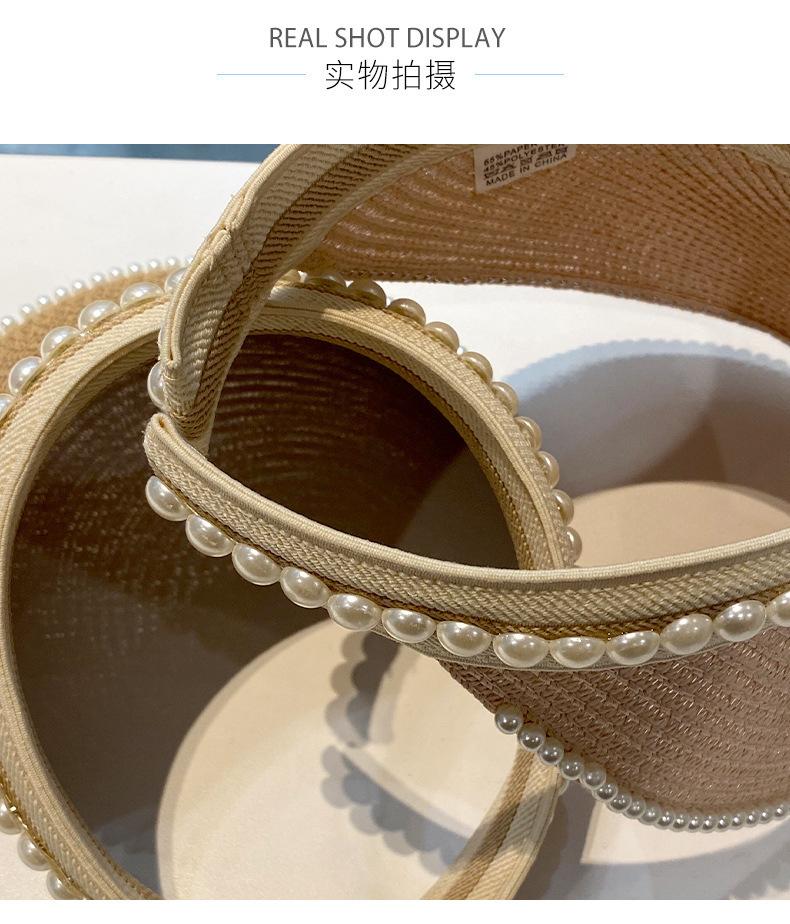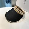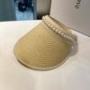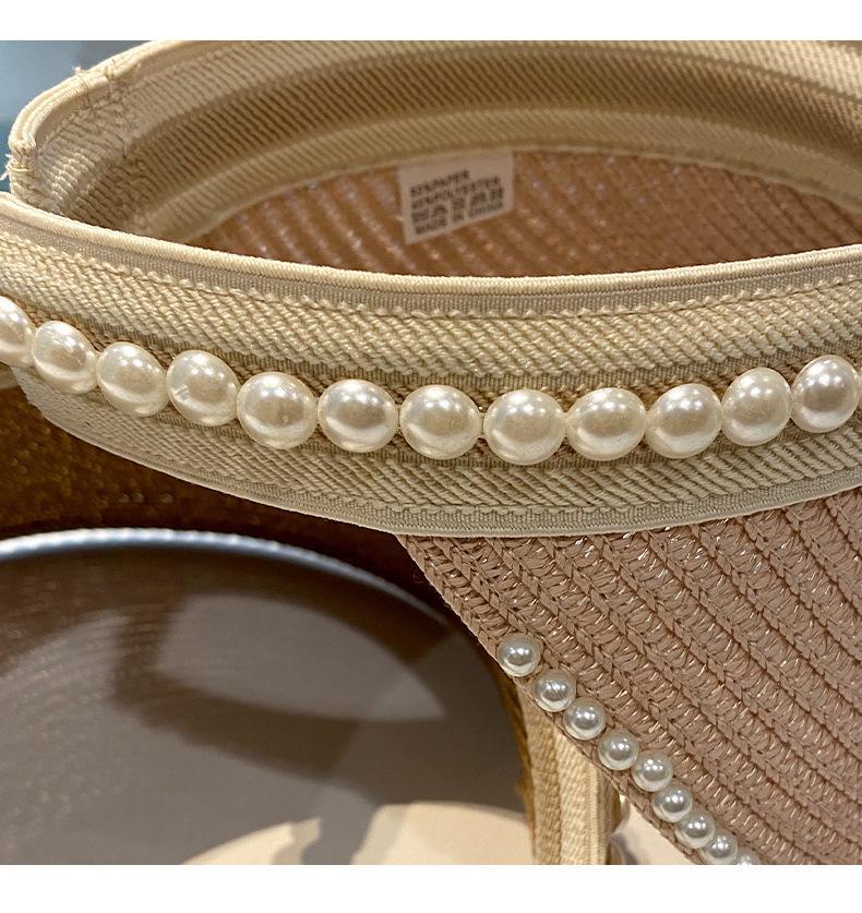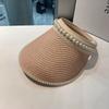 Sombrero de Paja de Copa Vacía Estilo Coreano para Mujer Primavera y Verano Nuevo Sombrero con Diadema de Perlas y Remaches para Viaje al Aire Libre Protección Solar Sombrero a la Moda