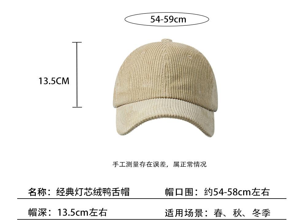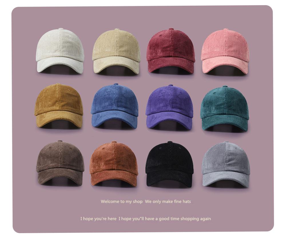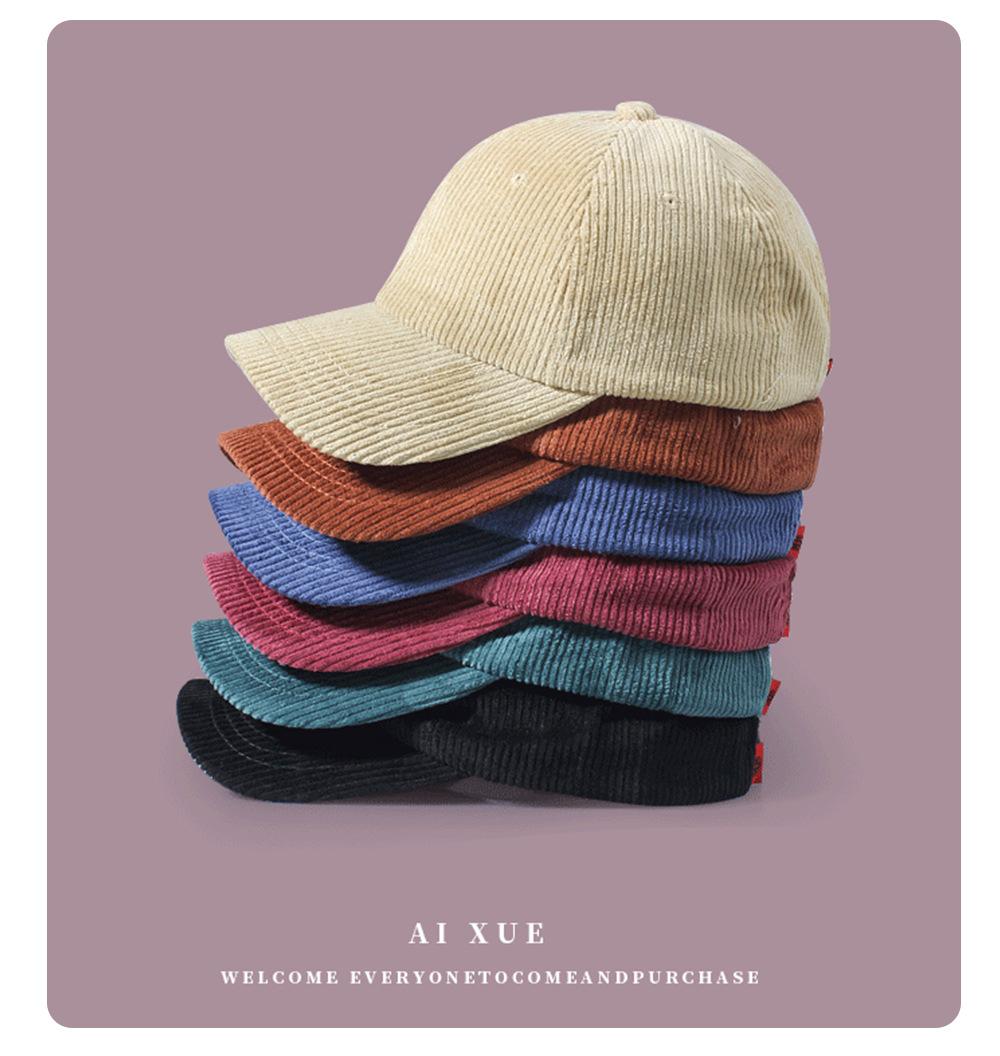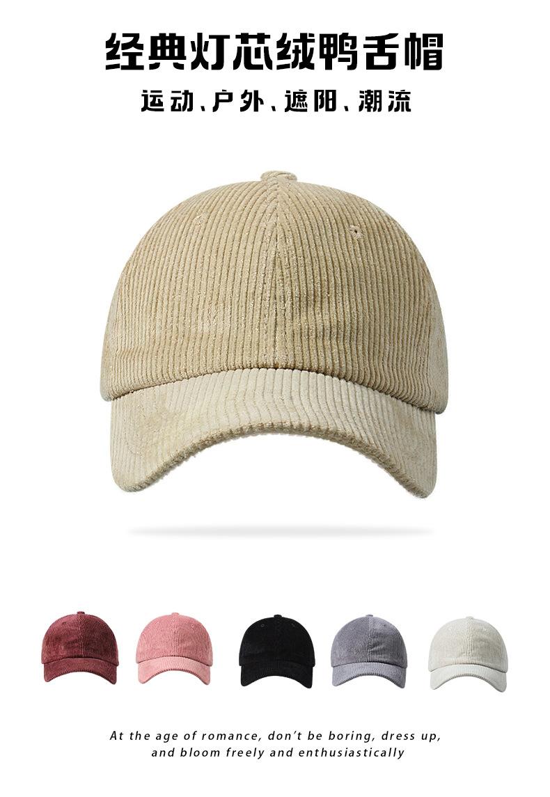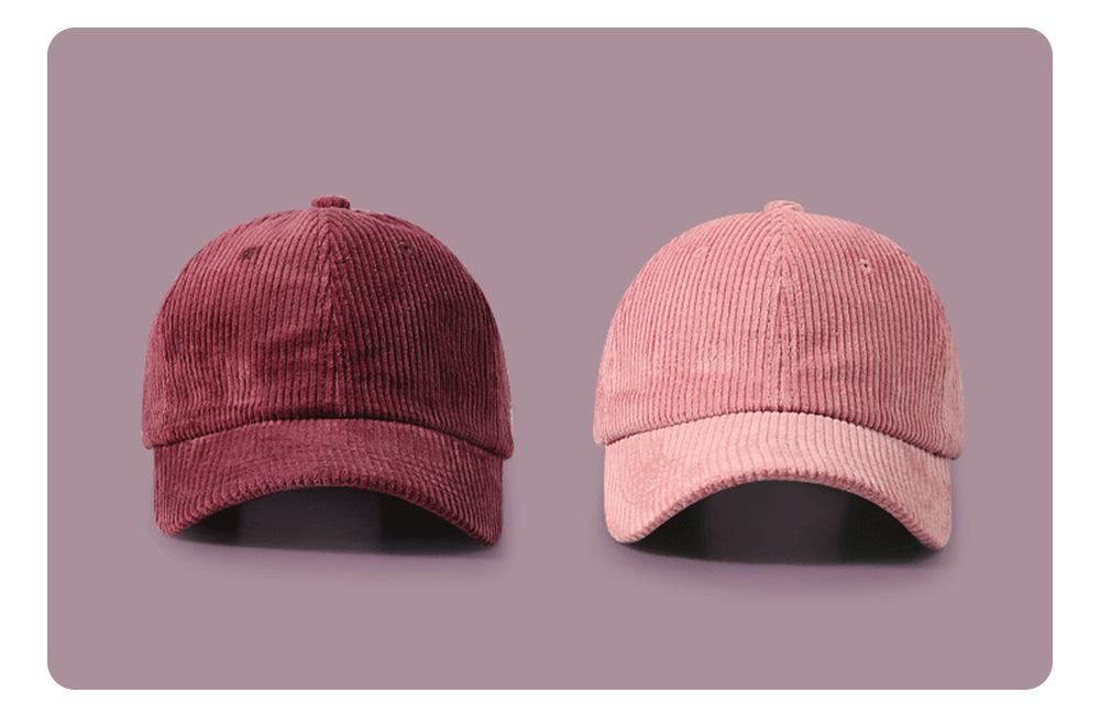 Gorra de béisbol de pana ligera para mujer, de otoño, sencilla, de color liso, cálida y combinable.
