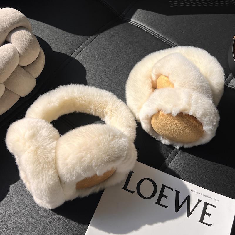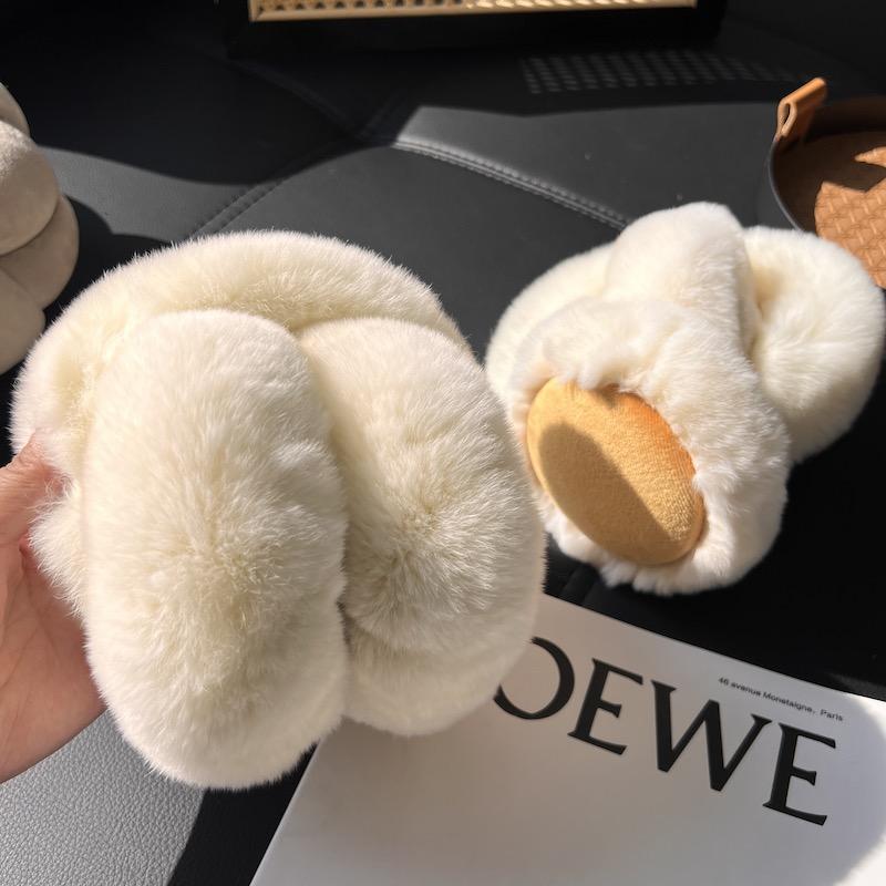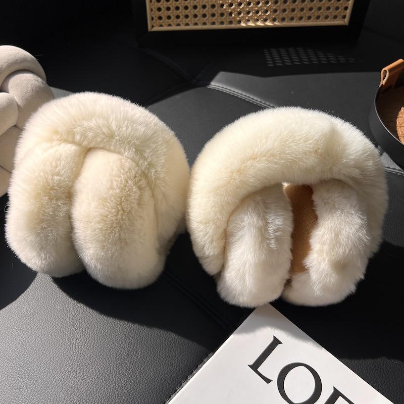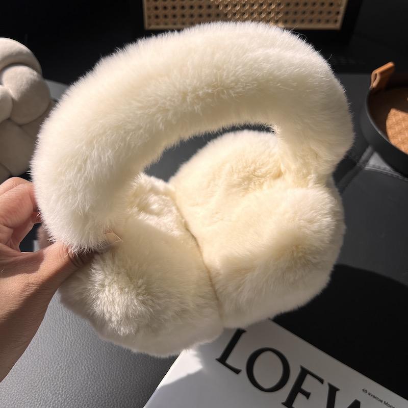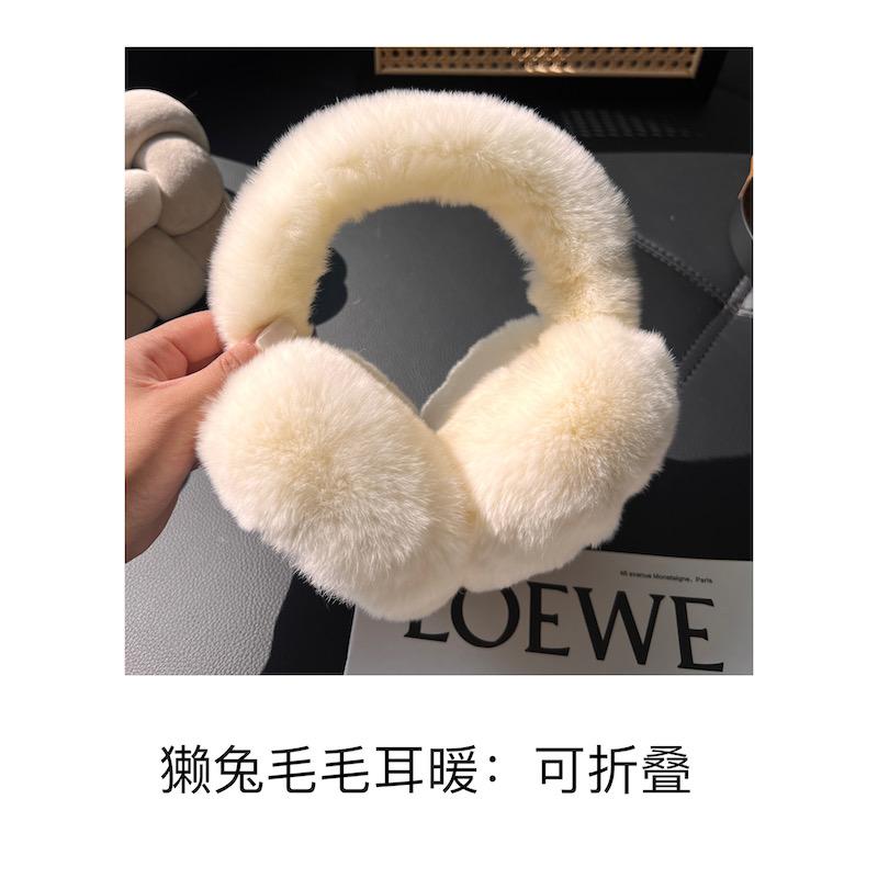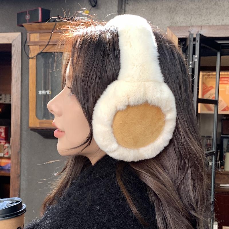 Orejeras de pelo de conejo para mujer, cálidas y anticongelantes, de pelo real, plegables, para el invierno