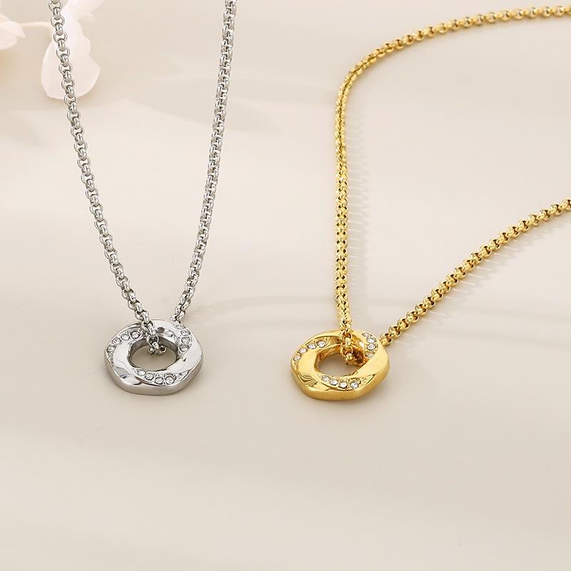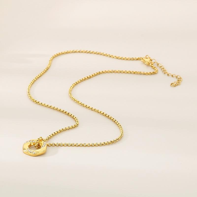 Collar de acero inoxidable con forma de hexágono hueco y diamantes en oro de 18 quilates con personalidad y temperamento para mujer, cadena de perlas y accesorios.
