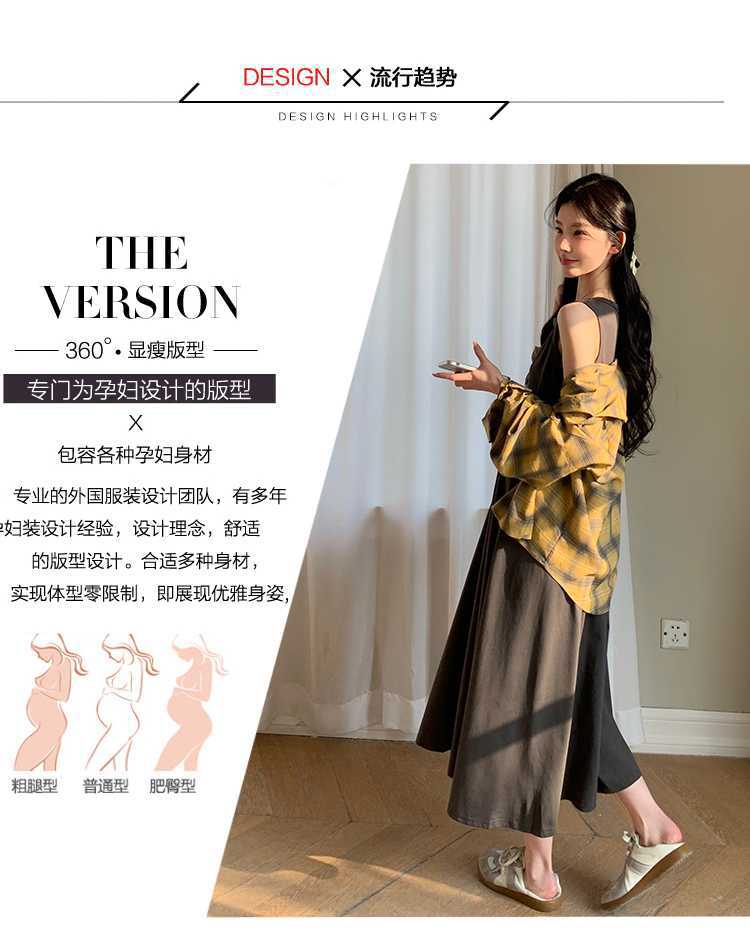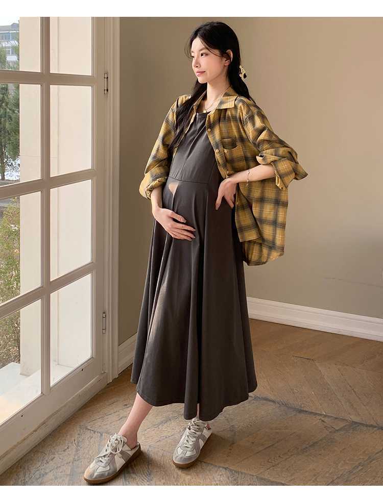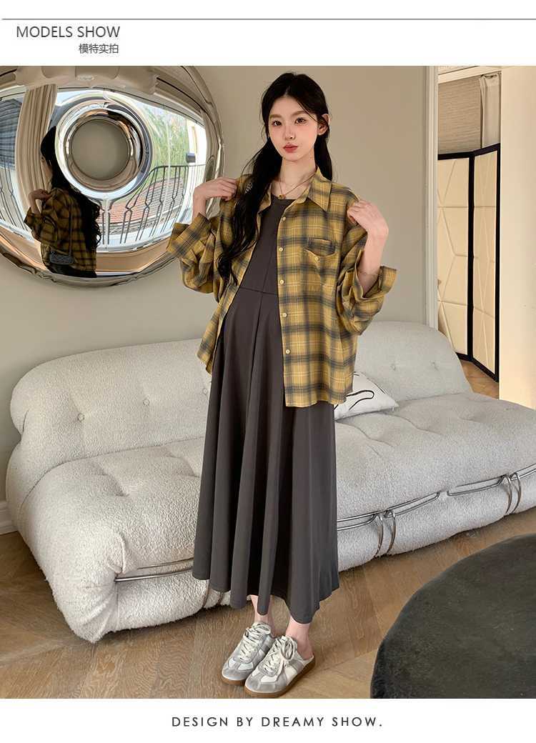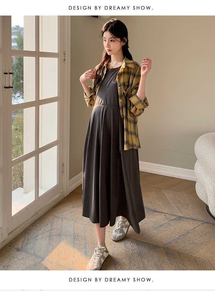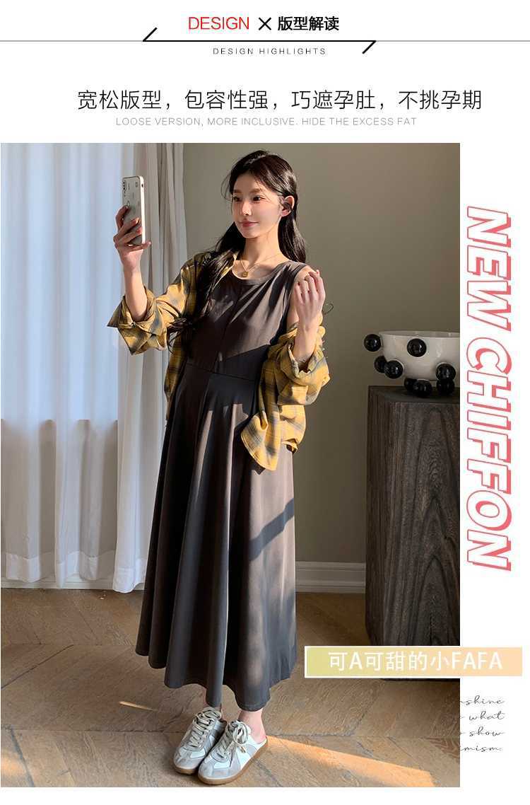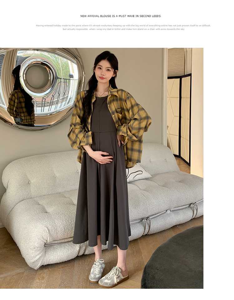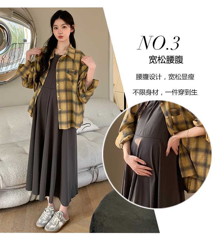 Vestido de maternidad de primavera 2025, sencillo e informal, de dos piezas, nuevo, con solapa a cuadros y manga larga, chalecos para embarazadas.