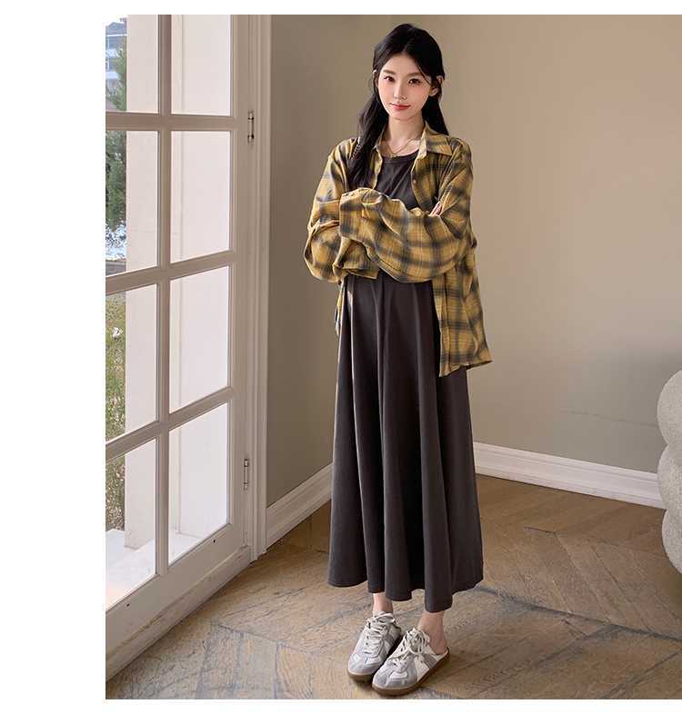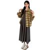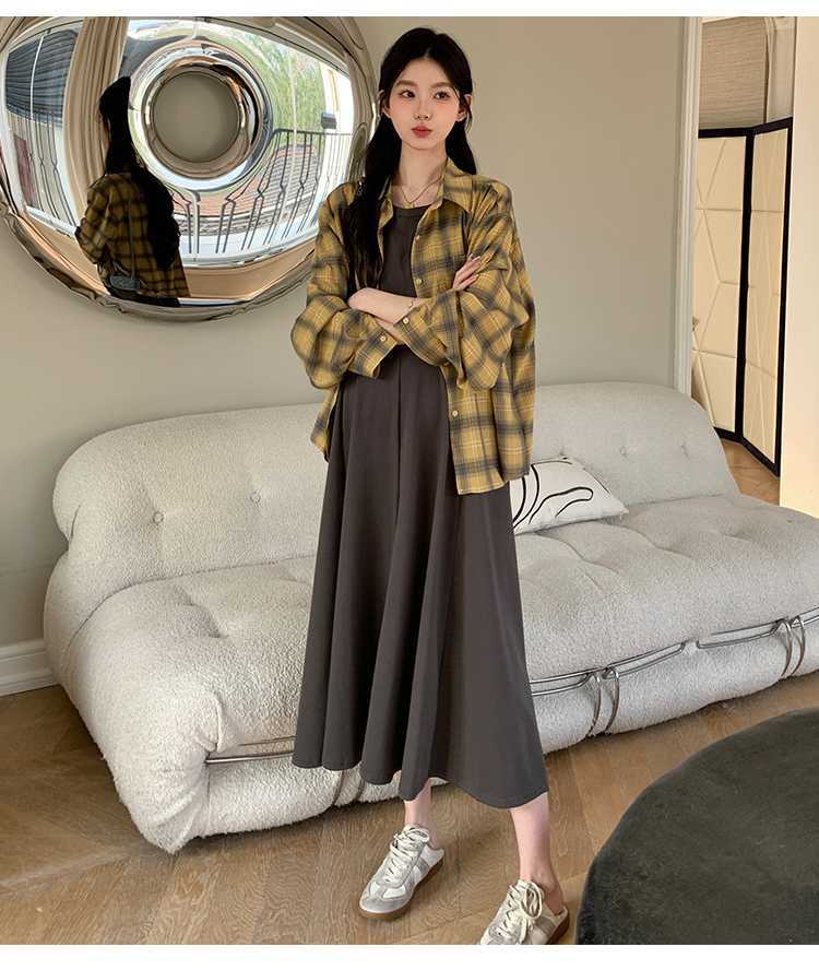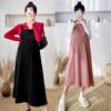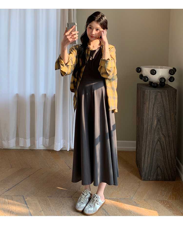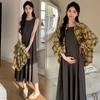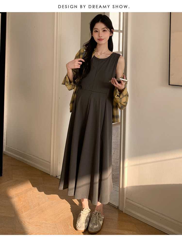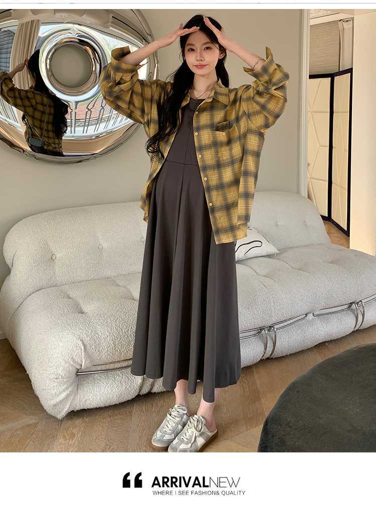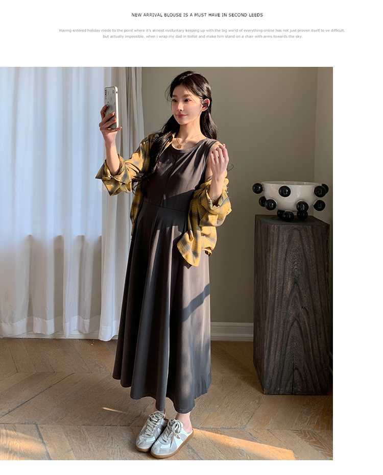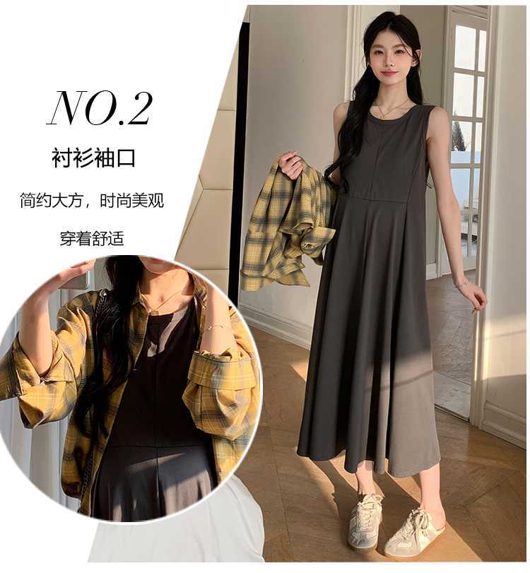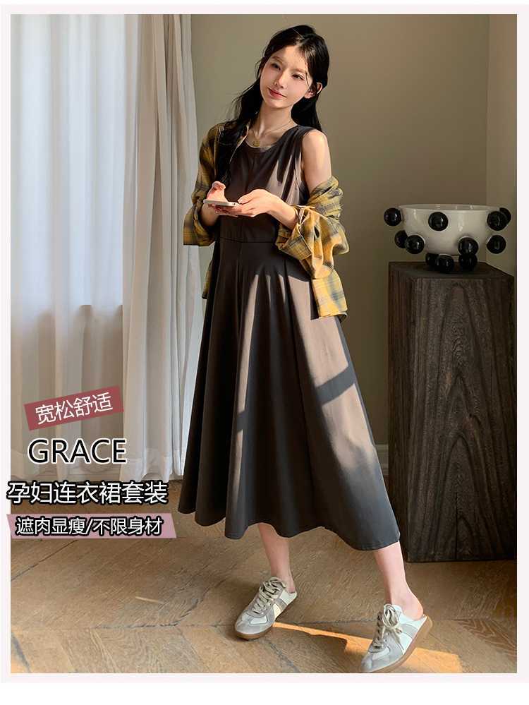 Vestido de maternidad de primavera 2025, sencillo e informal, de dos piezas, nuevo, con solapa a cuadros y manga larga, chalecos para embarazadas.