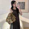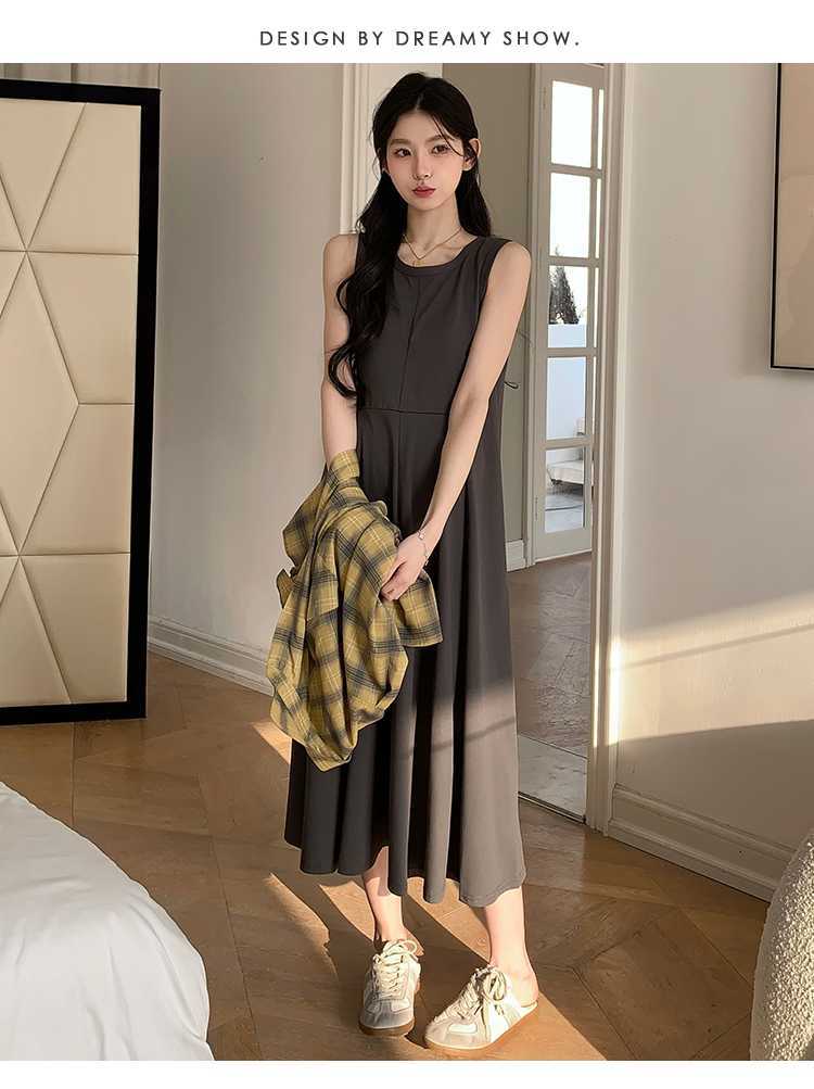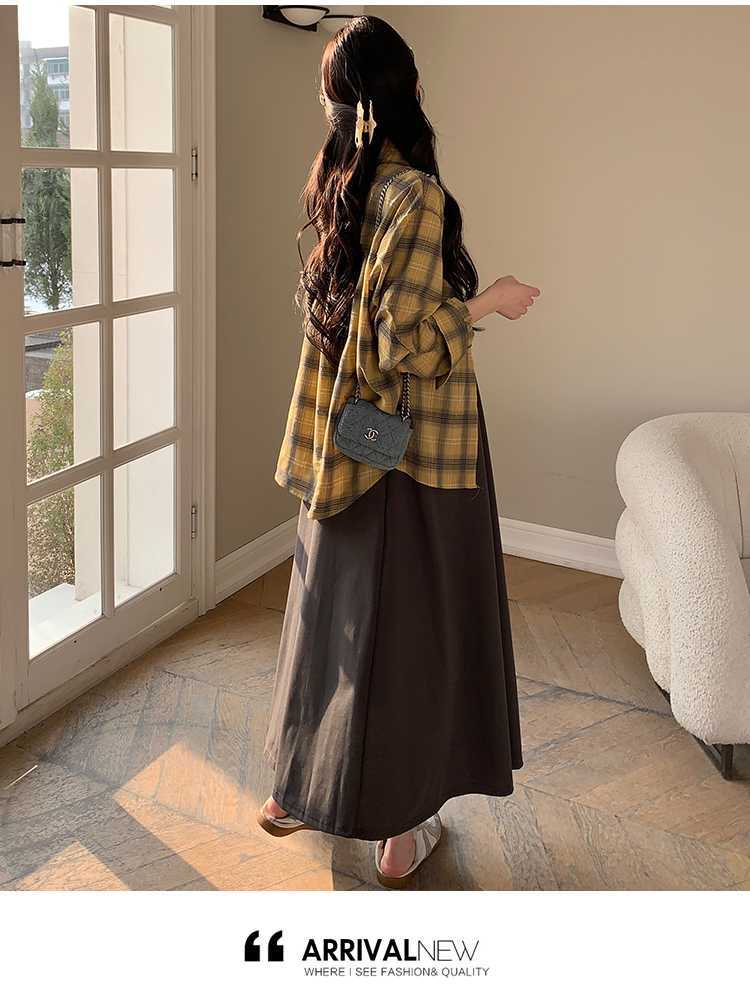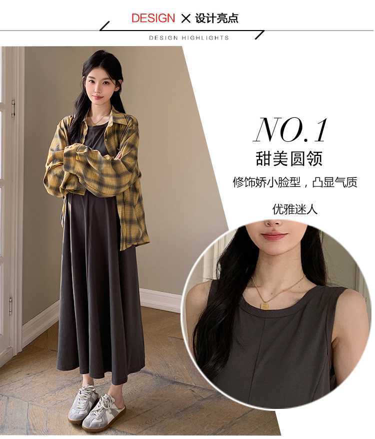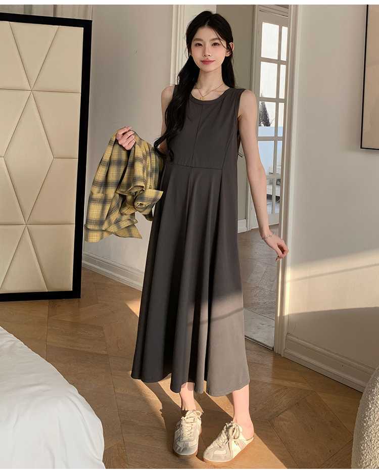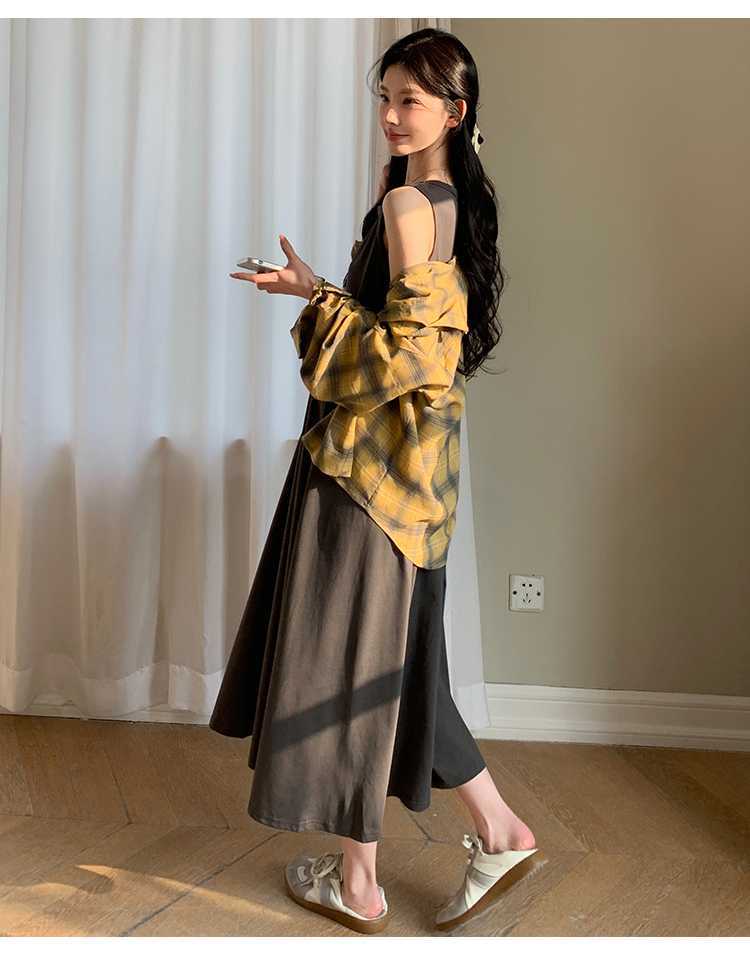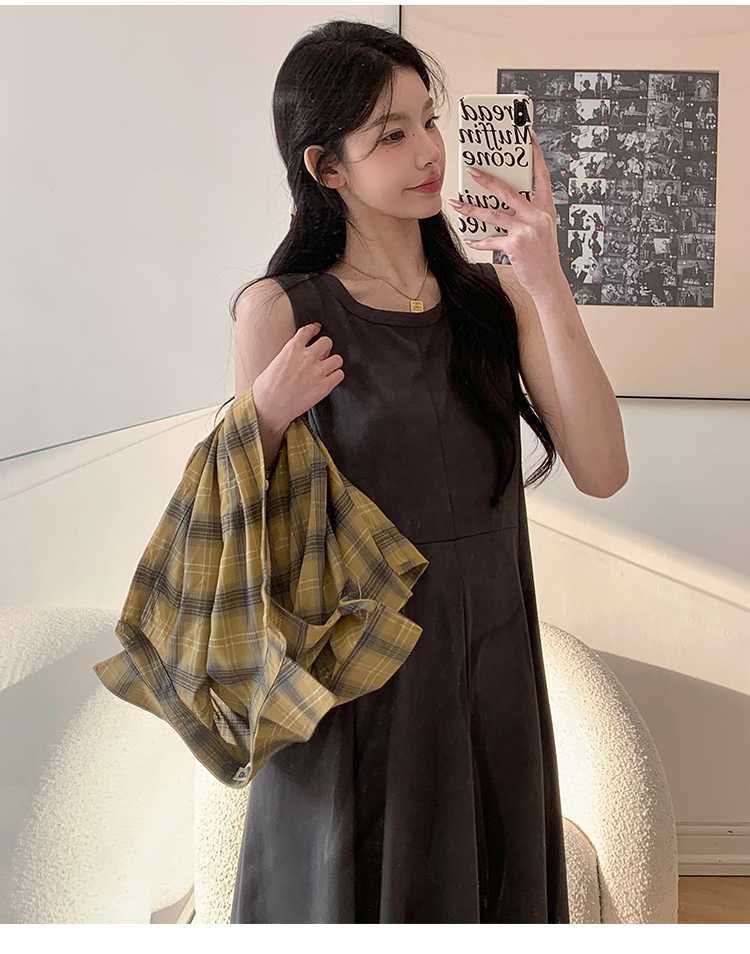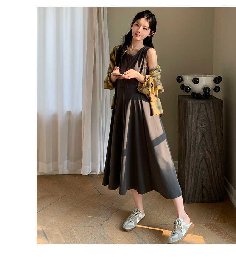 Vestido de maternidad de primavera 2025, sencillo e informal, de dos piezas, nuevo, con solapa a cuadros y manga larga, chalecos para embarazadas.