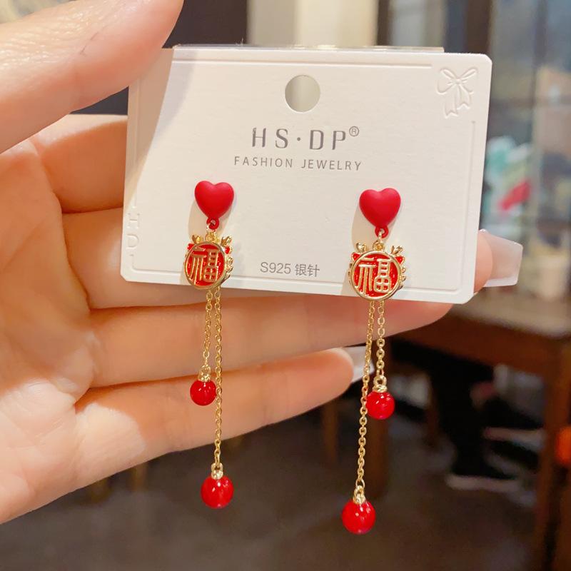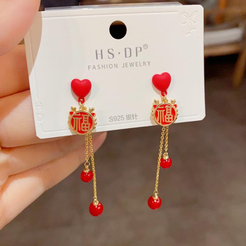 Pendientes de borla con palabra de amor festivo para otoño e invierno, nuevos pendientes delgados de Joker de alta gama a la moda con temperamento femenino, venta al por mayor