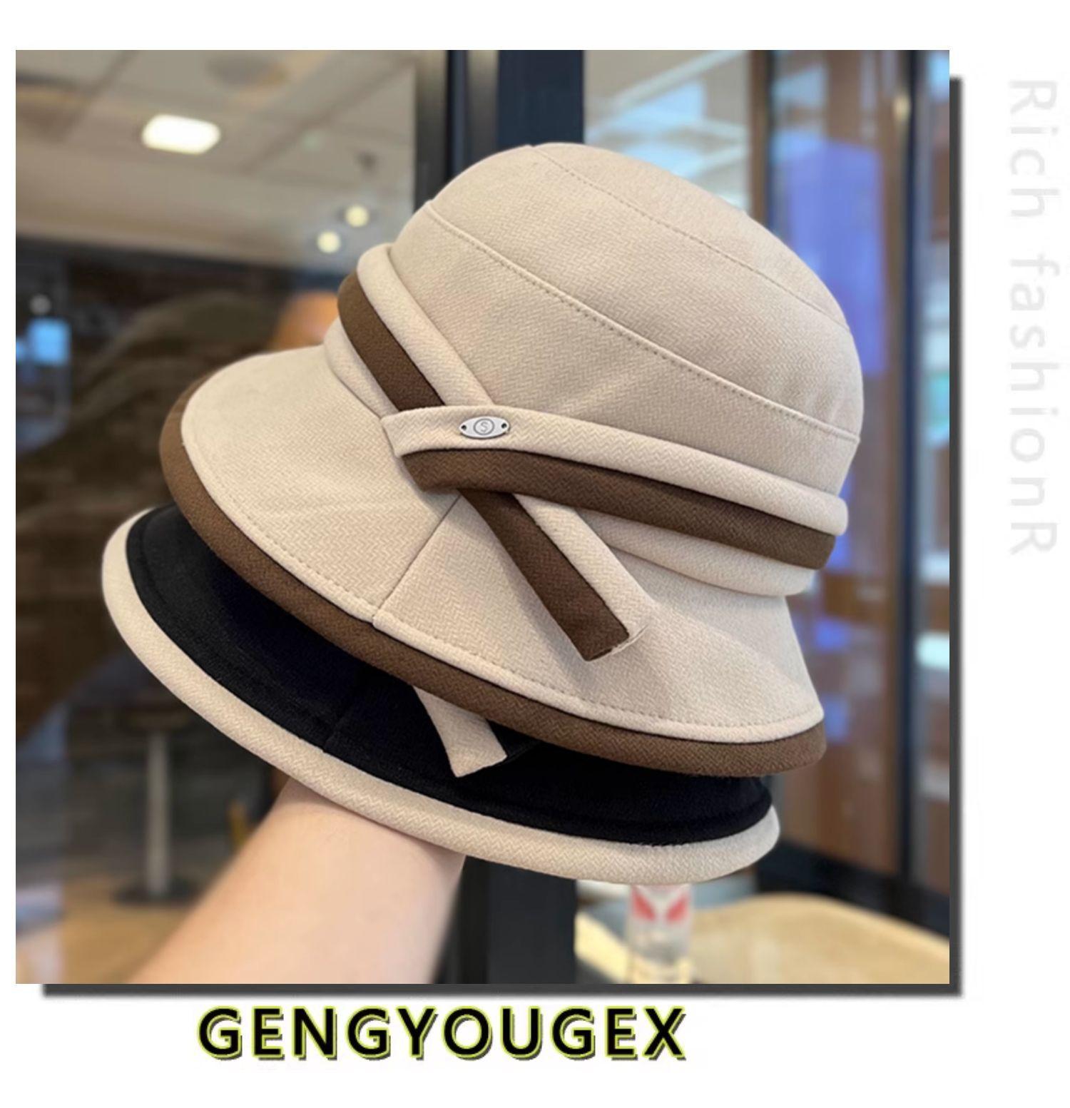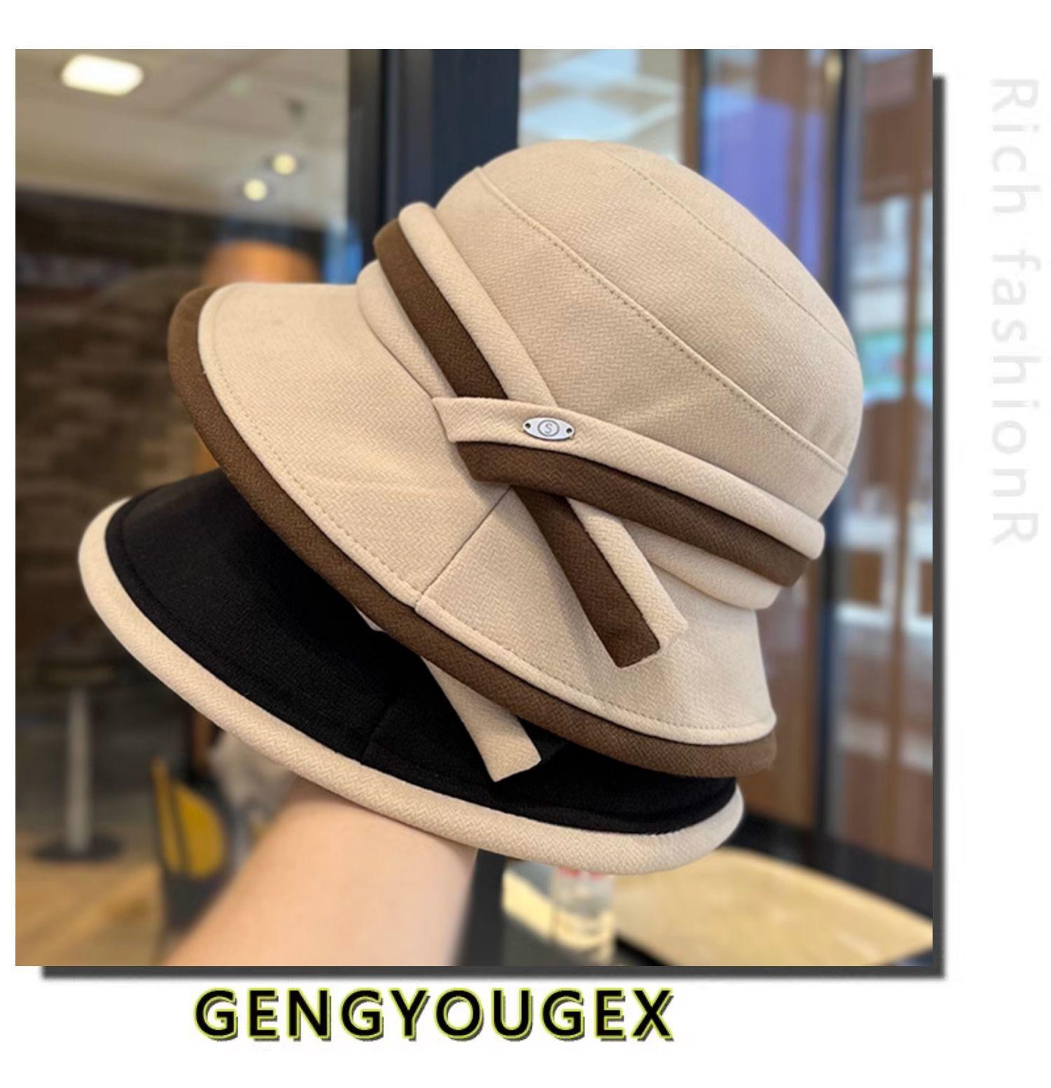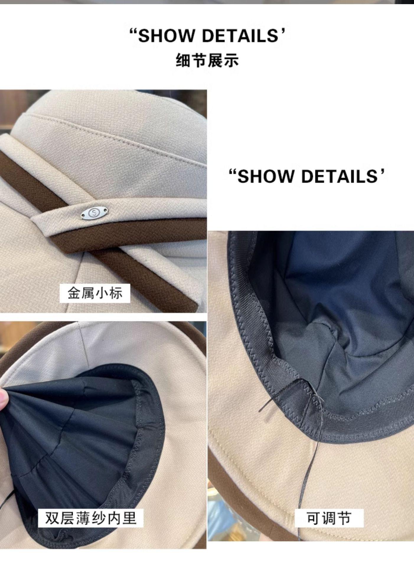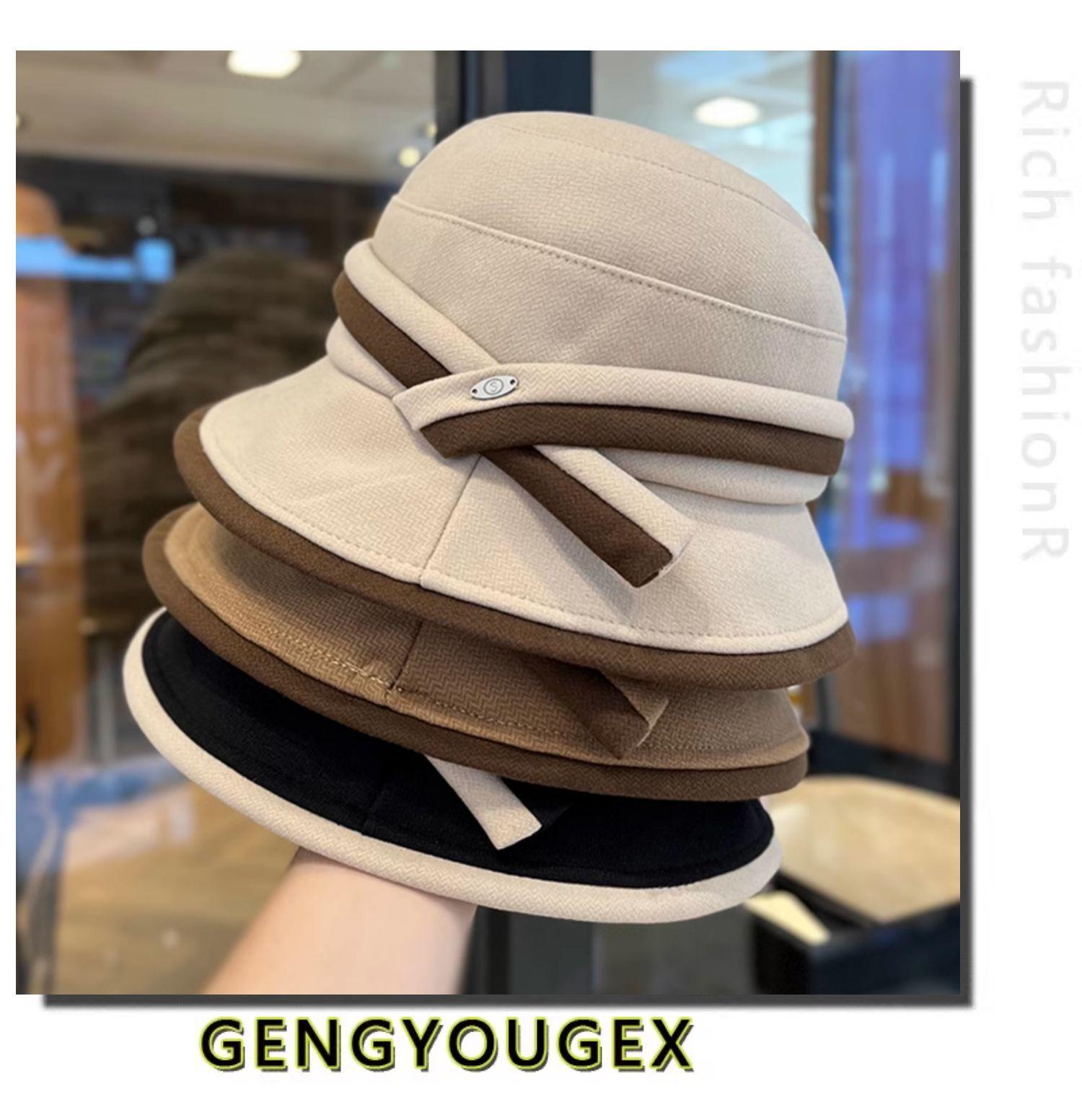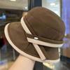 Sombrero de pescador de primavera y otoño para mujer, con correa a juego de colores, letras sencillas, etiqueta pequeña, sombrero de lavabo pequeño de alta calidad que combina con todo.