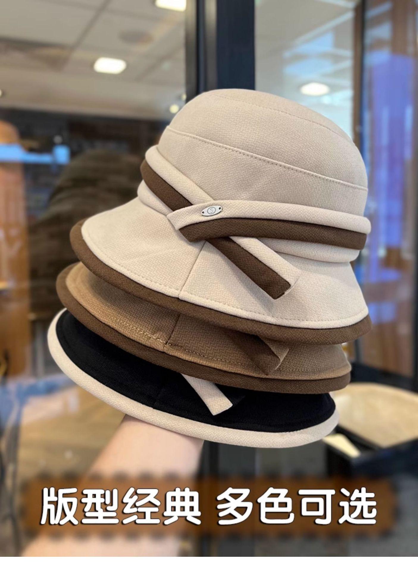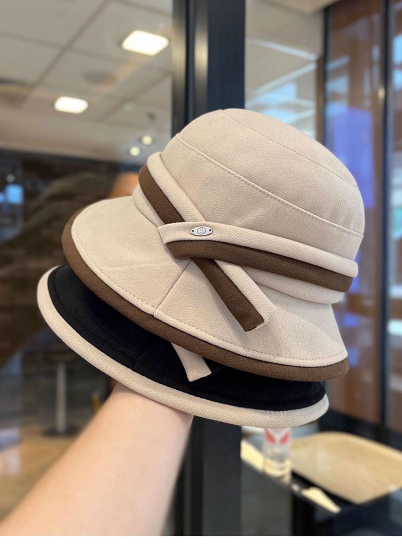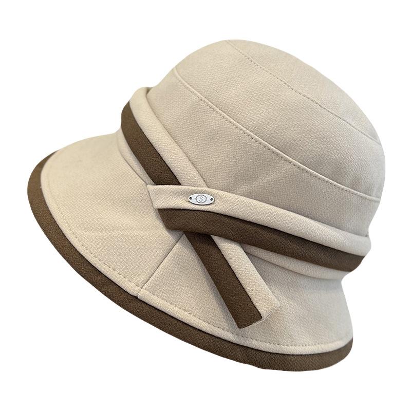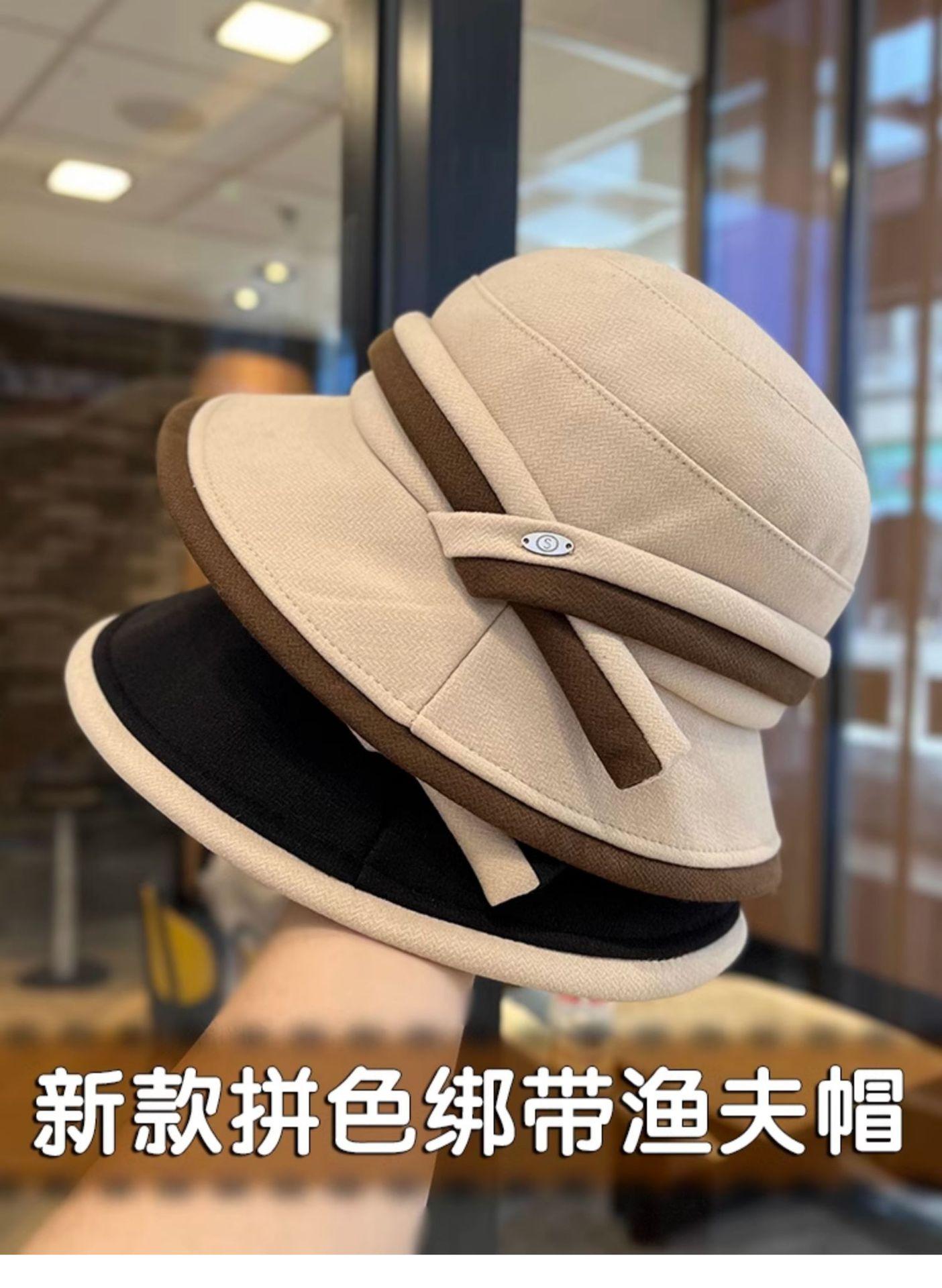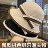 Sombrero de pescador de primavera y otoño para mujer, con correa a juego de colores, letras sencillas, etiqueta pequeña, sombrero de lavabo pequeño de alta calidad que combina con todo.