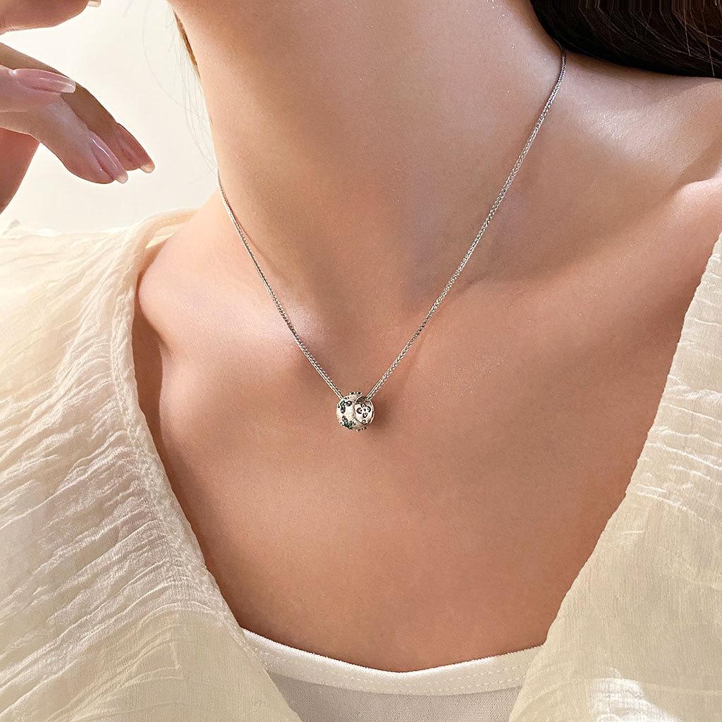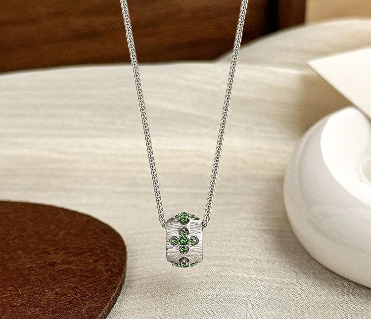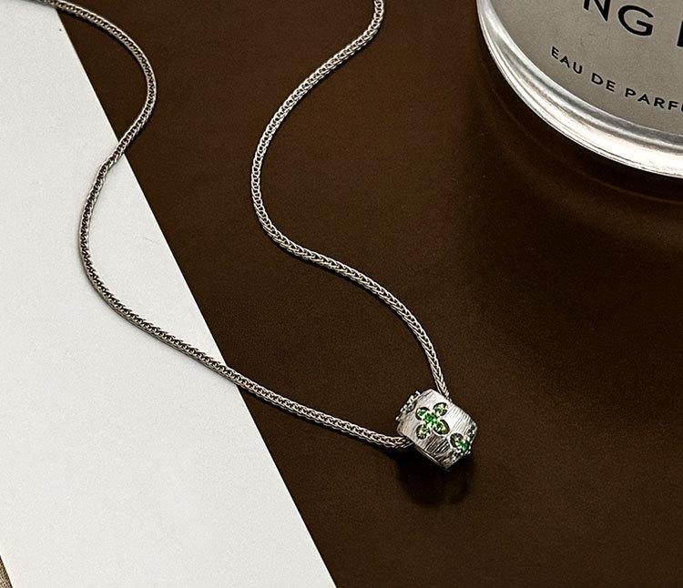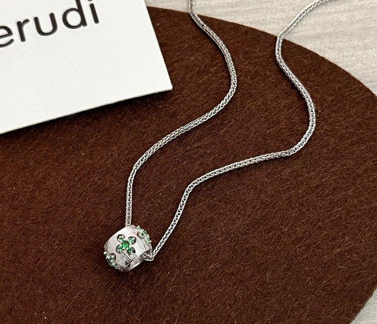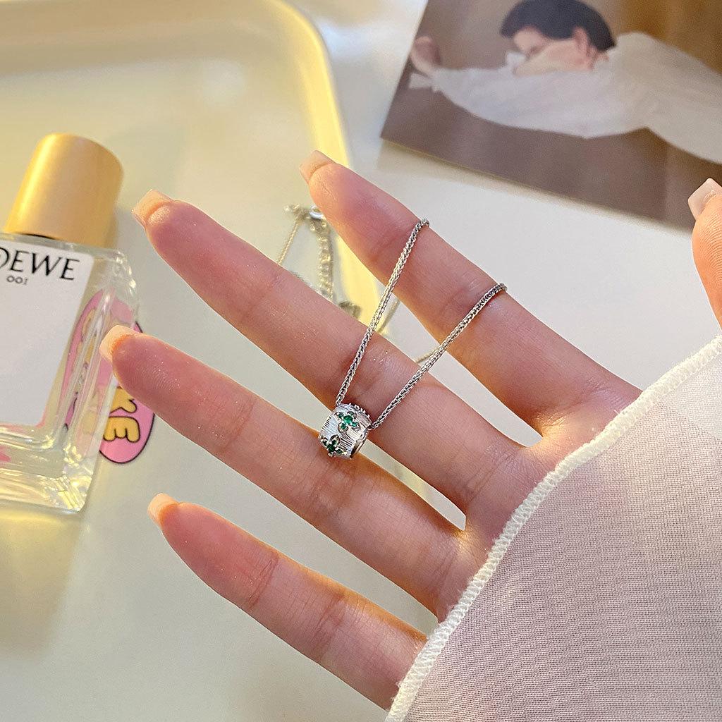 Xi Gu D0658 S925 Collar con anillo de esmeralda simple y fresco de plata, diseño de nicho de lujo ligero, nueva cadena de clavícula