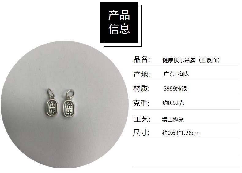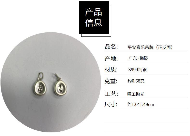 S999 pure silver 3d hard silver peace and joy auspicious tag