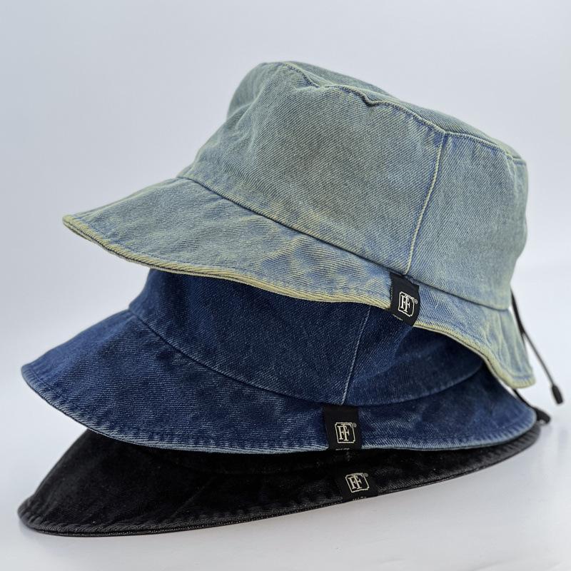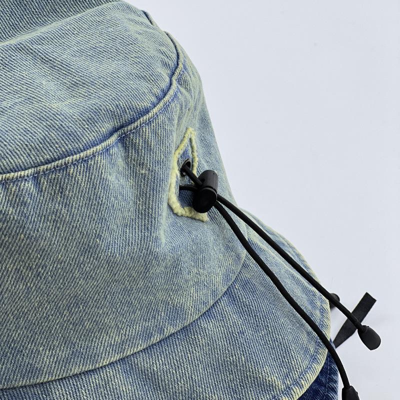 Nueva gorra de pescador vaquera con cordón decorativo, moderna y casual, con parche de letras, parte delantera y trasera, larga, estrecha, para el sol, con marea