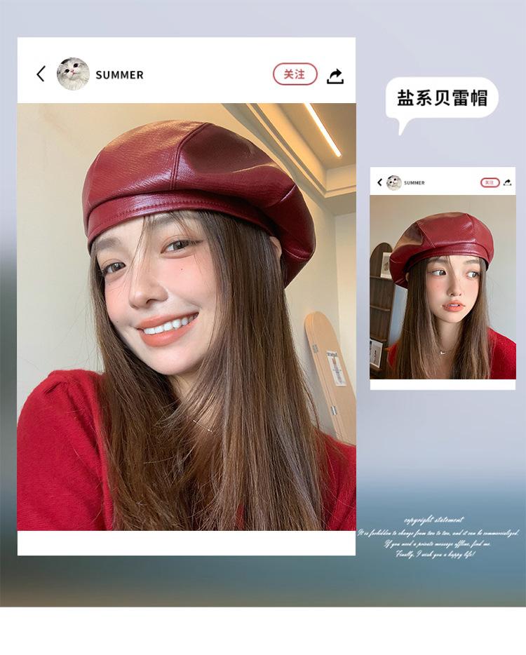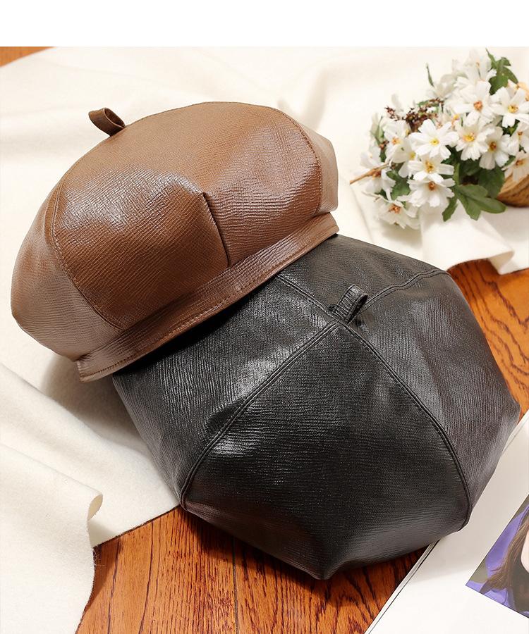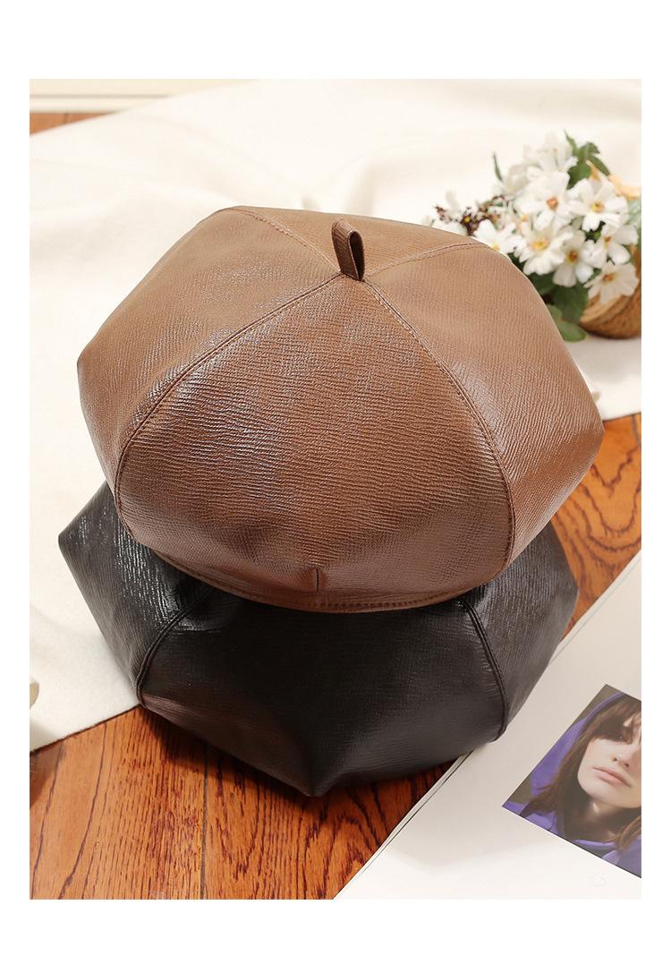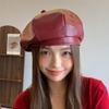 Gorra octogonal de cuero sintético estilo retro británico para mujer, boina de moda coreana para otoño e invierno, gorra de calabaza a la moda