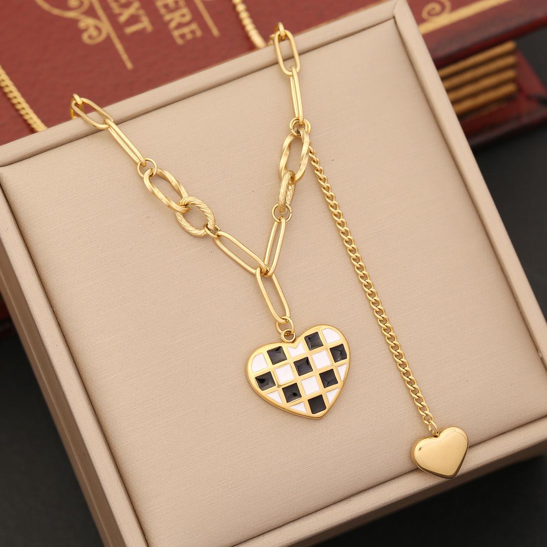Conjunto de joyería transfronteriza con colgante de amor de tablero de ajedrez, collar de acero inoxidable de moda, conjunto de joyería con temperamento N1134