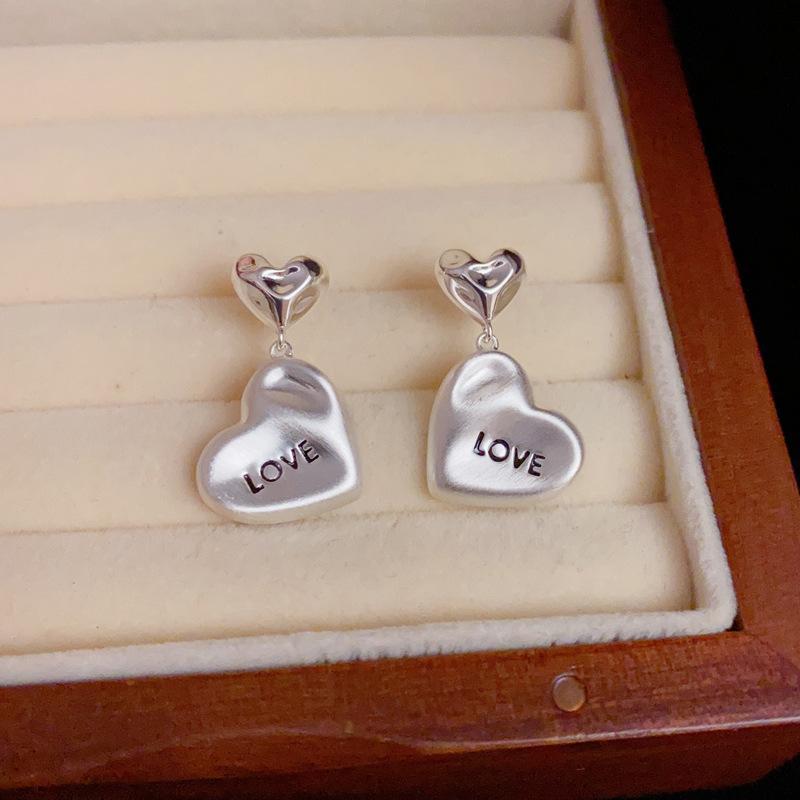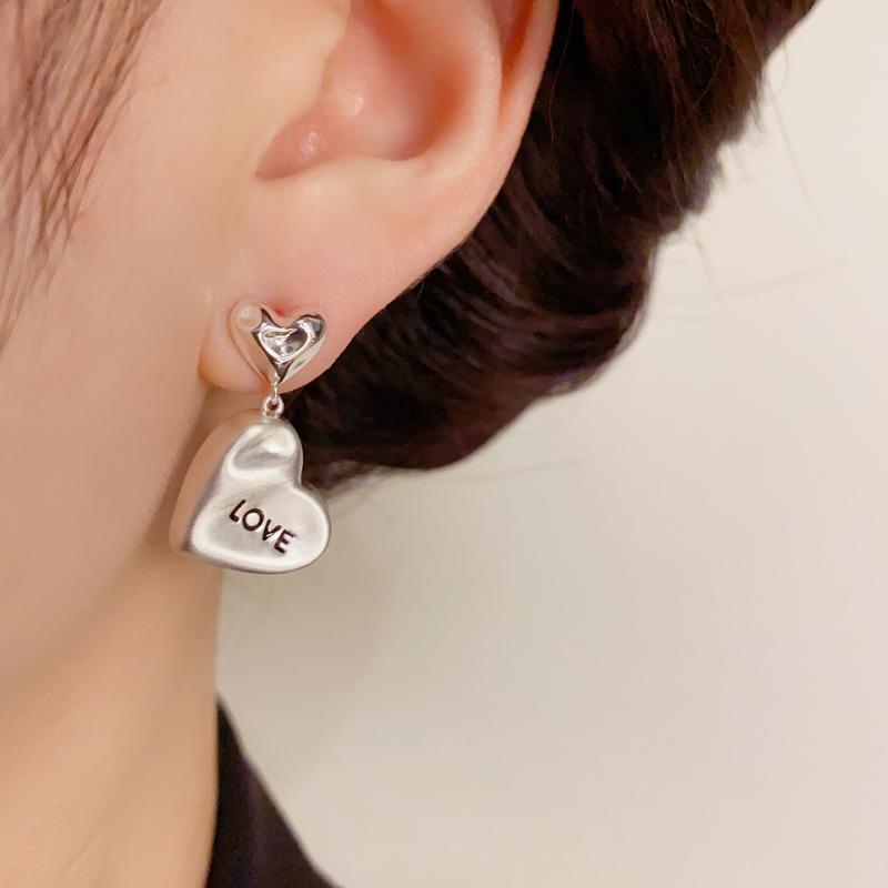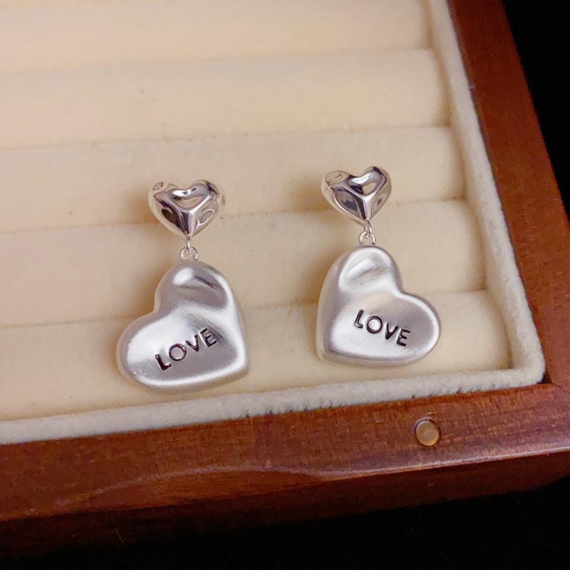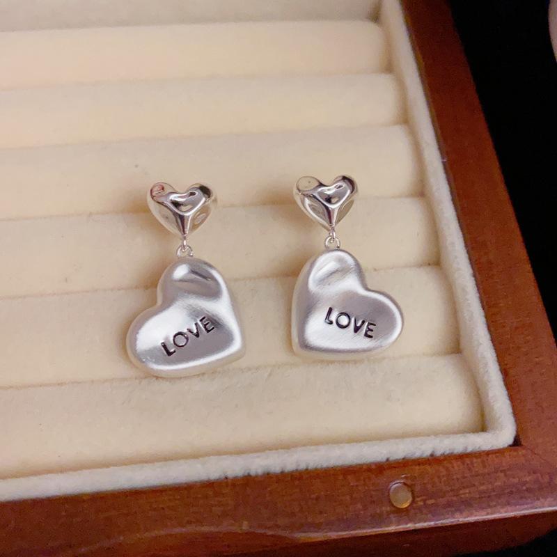 Pendientes de metal con letras de amor, diseño único y retro francés, de plata S925, sencillos y a la moda para mujer