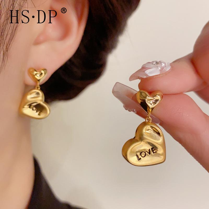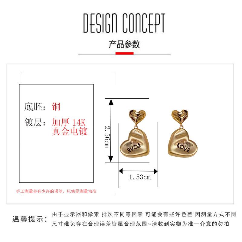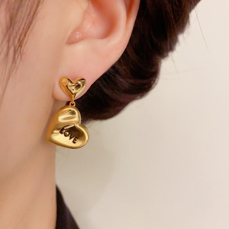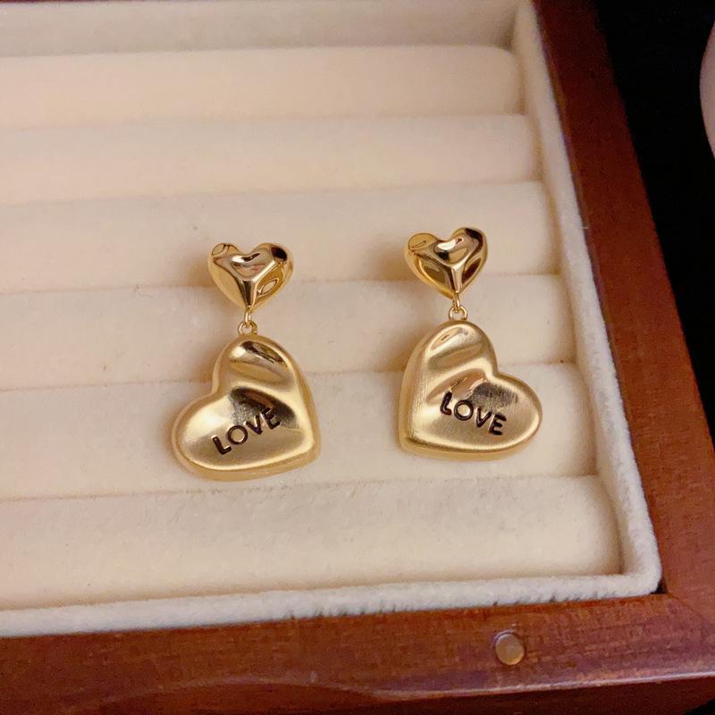 Dummy-metal love letter earrings (thick gold plating), Dumb silver-metal love letter earrings (thick gold plating)