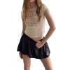 Camiseta de Hombro Estilo Americano Arroz Letra Gris Manga Corta para Mujer Verano Nuevo Sentido del Diseño Lazo Ajustada Top