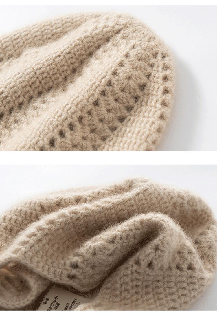 Gorro de cachemira 100% para otoño e invierno, hecho a mano, tejido, hueco, cálido, con protección para las orejas, gorro de invierno, nuevo gorro de lana.