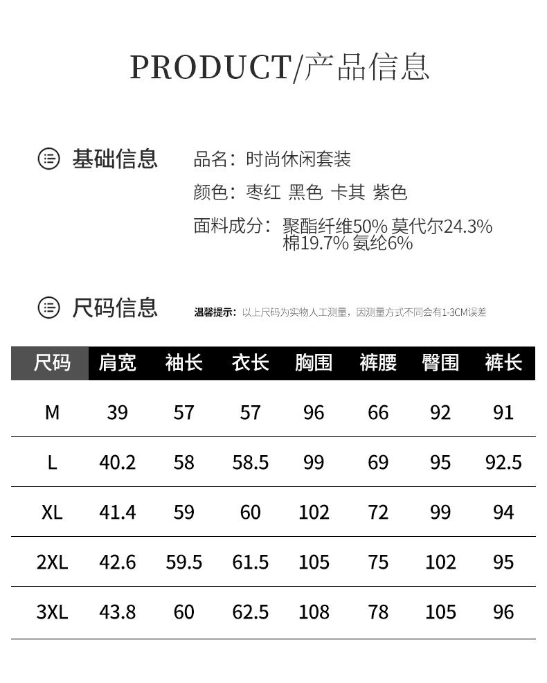Paohong (set of two), Khakis (two-piece), Purple (two-piece), Black (two-piece)