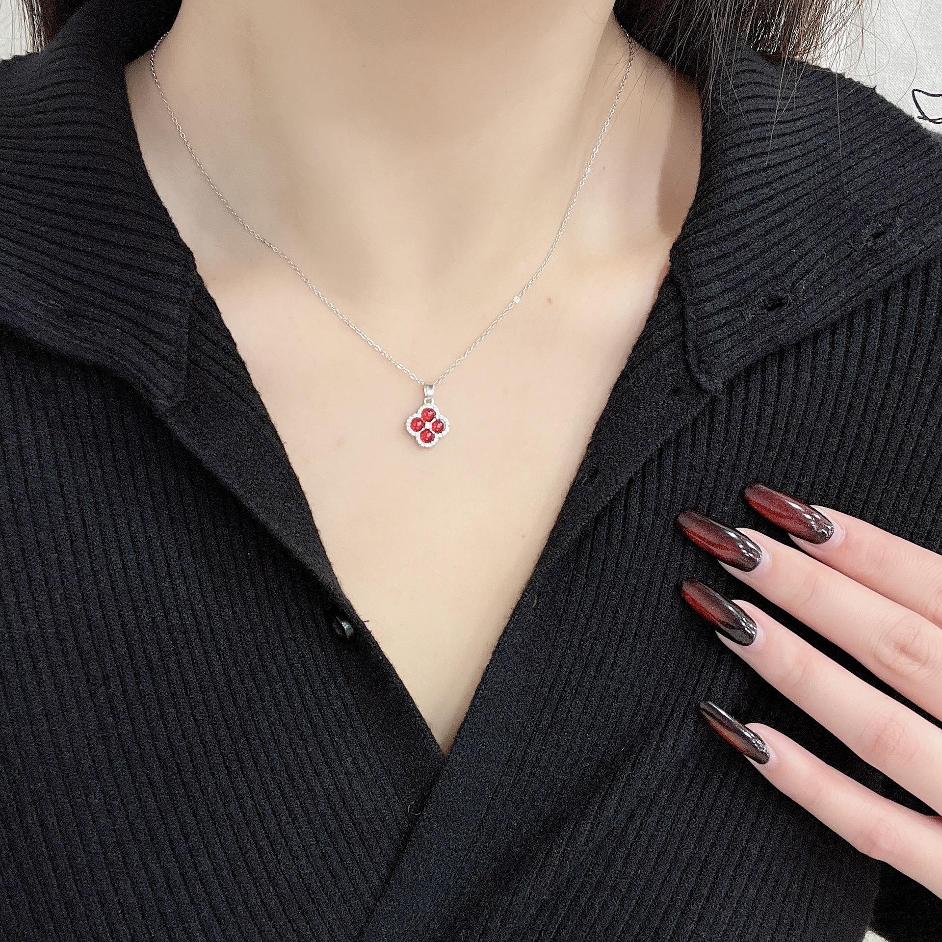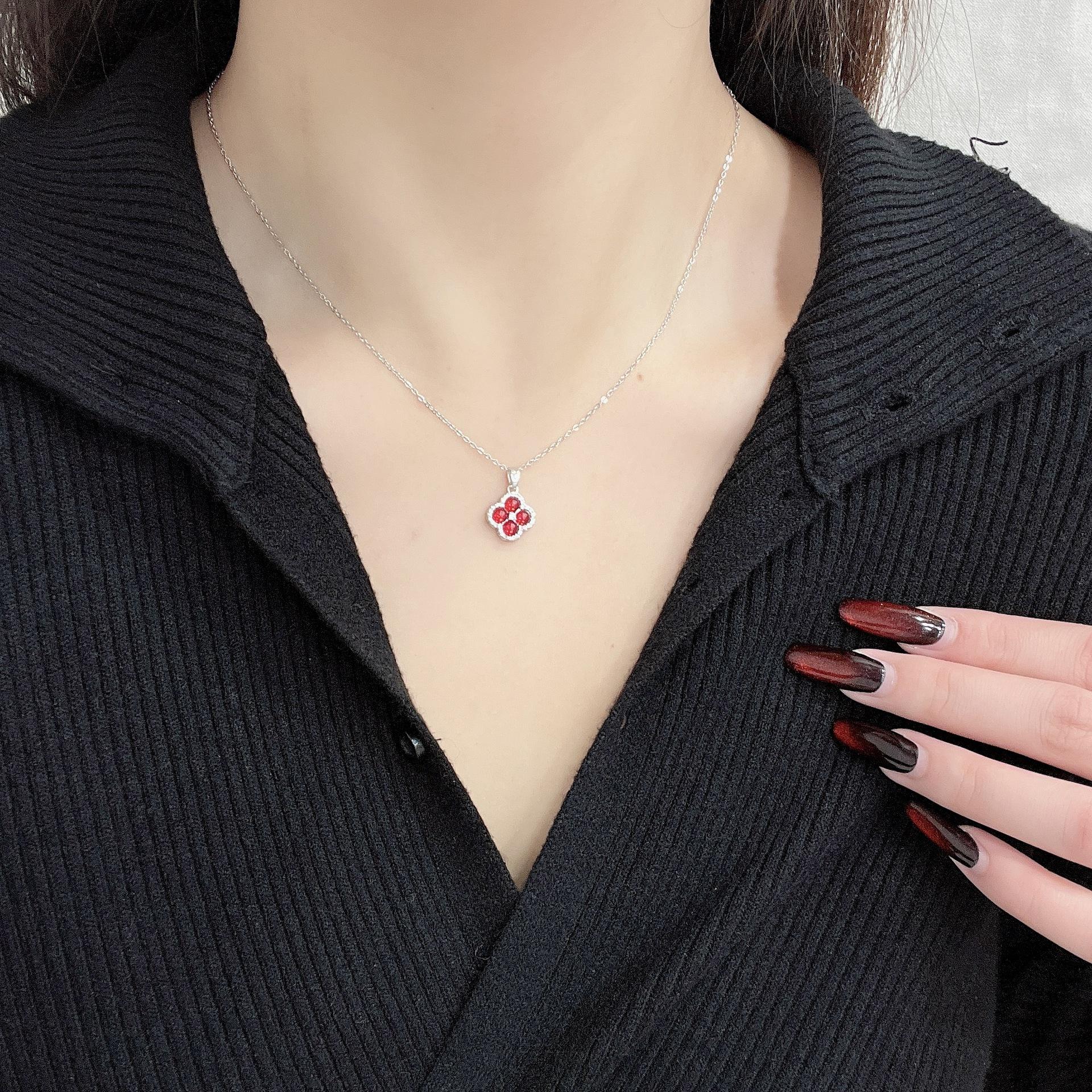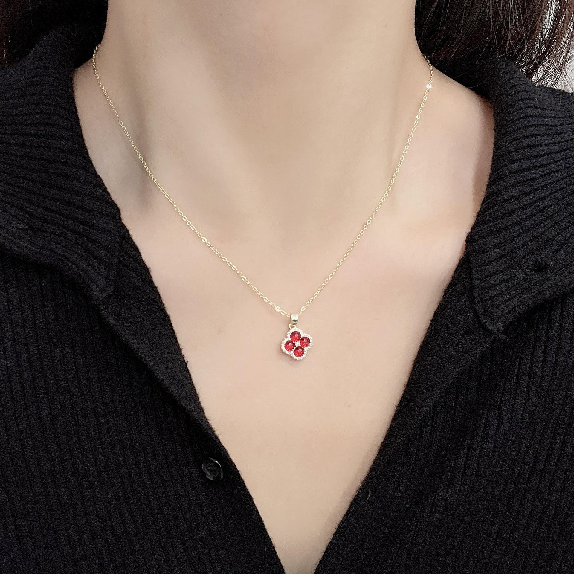 N1412 gold green bead four-leaf clover zircon necklace, N1413 gold red bead four-leaf clover zircon necklace, ...
