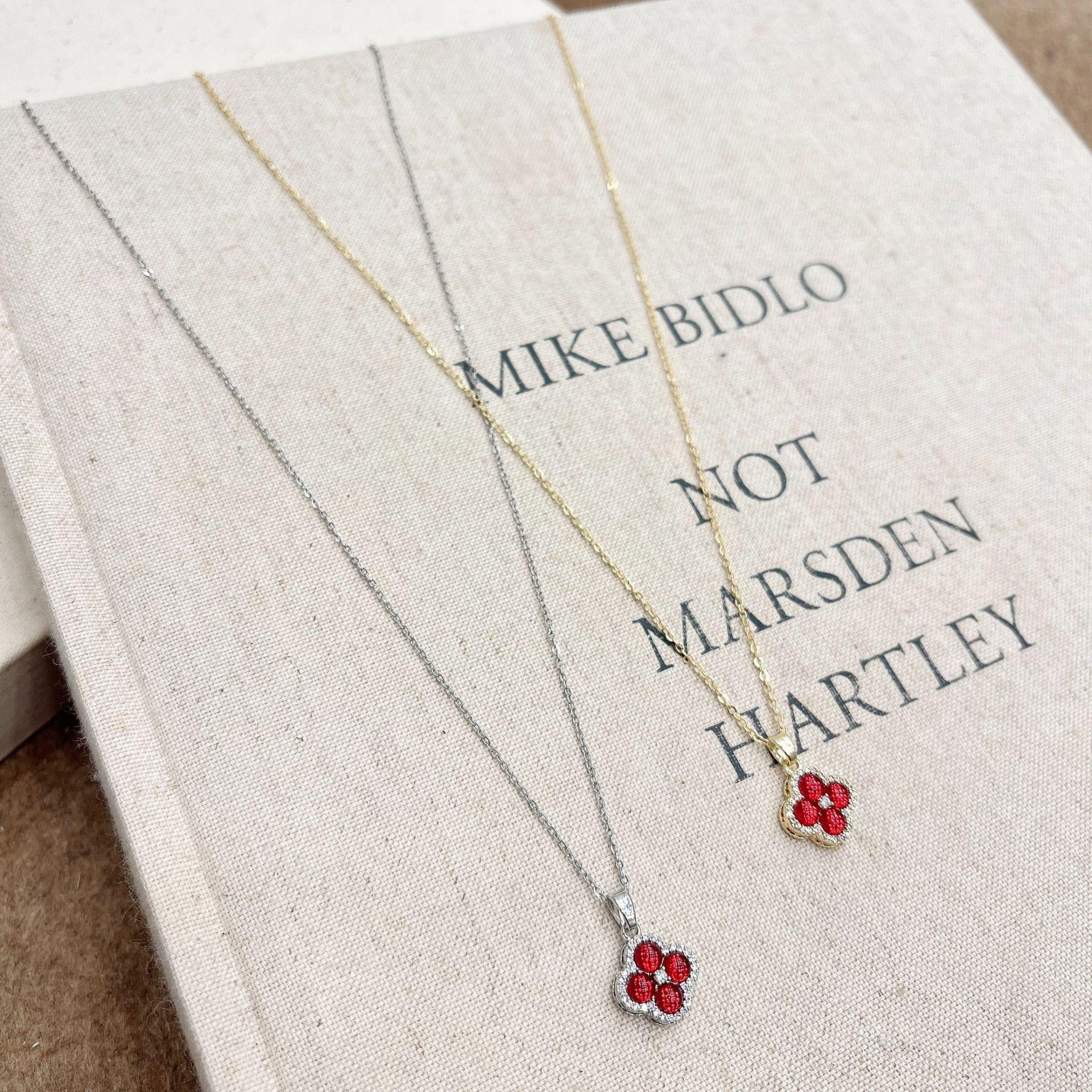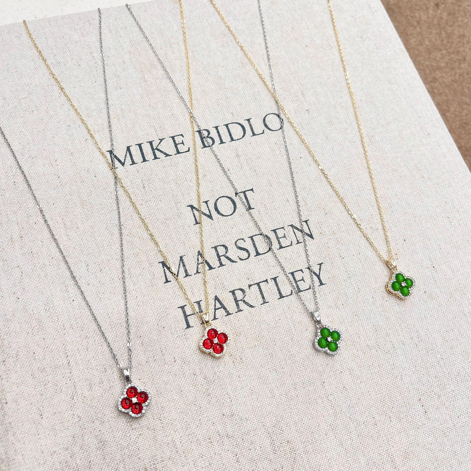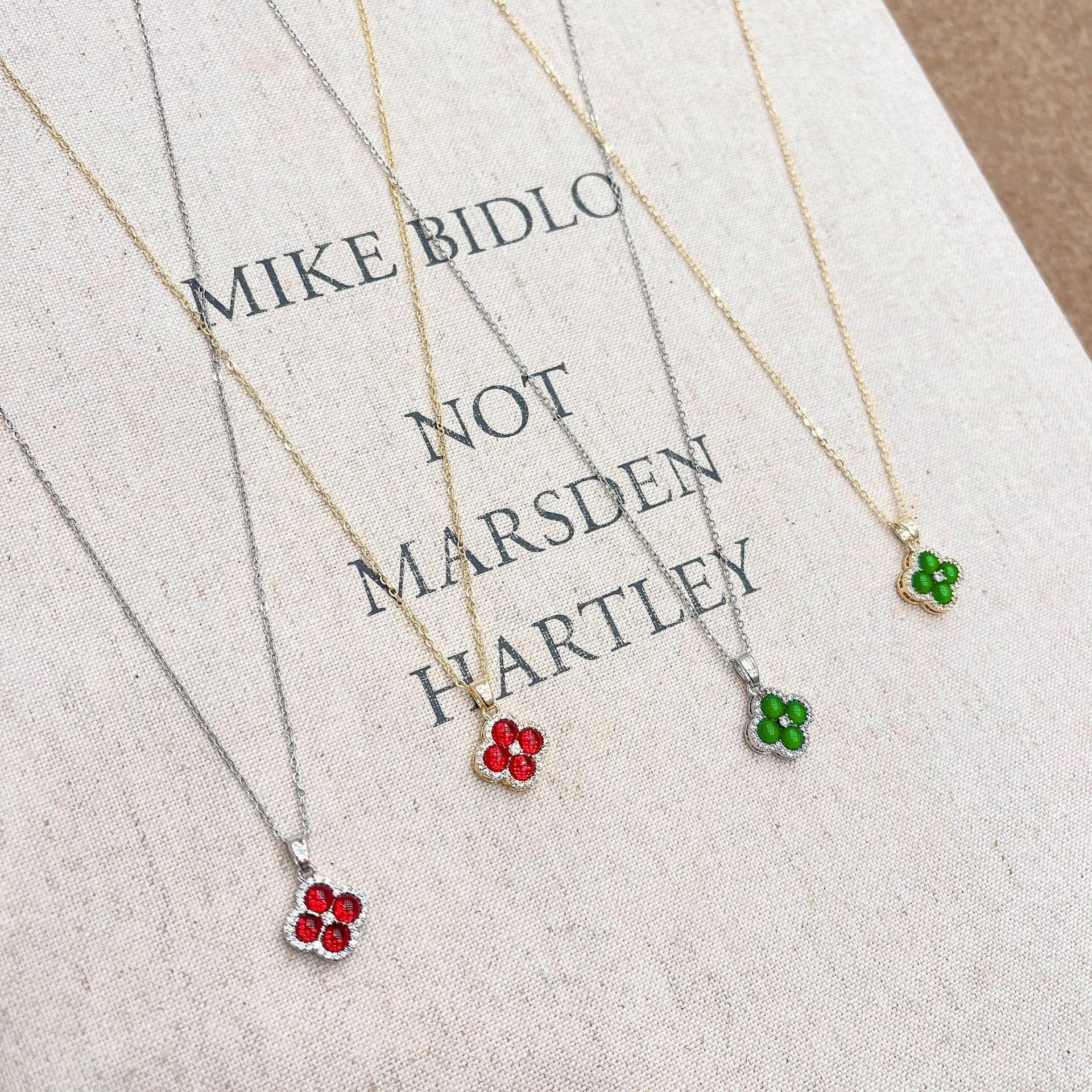 N1412 gold green bead four-leaf clover zircon necklace, N1413 gold red bead four-leaf clover zircon necklace, ...