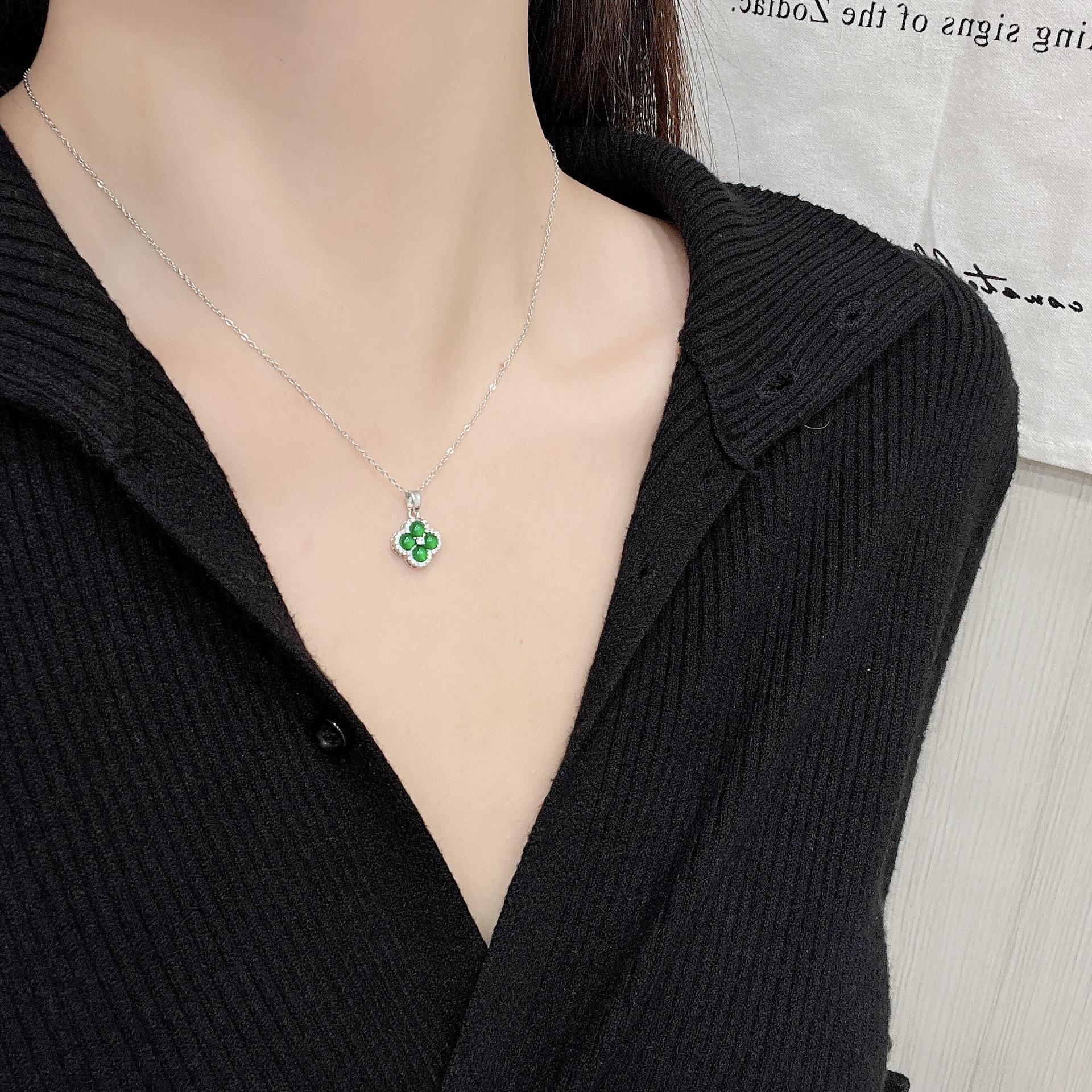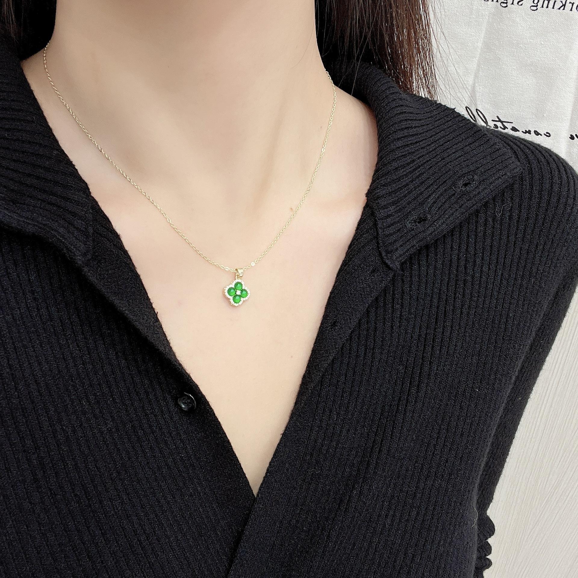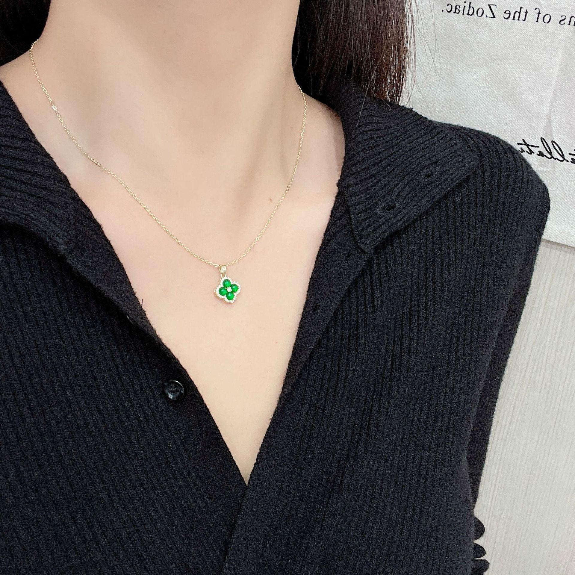 Explosiones Transfronterizas Esmeralda Collar Trébol de Cuatro Hojas de la Suerte Moda para Mujer Simple Comodín Elegante Collar de Lujo